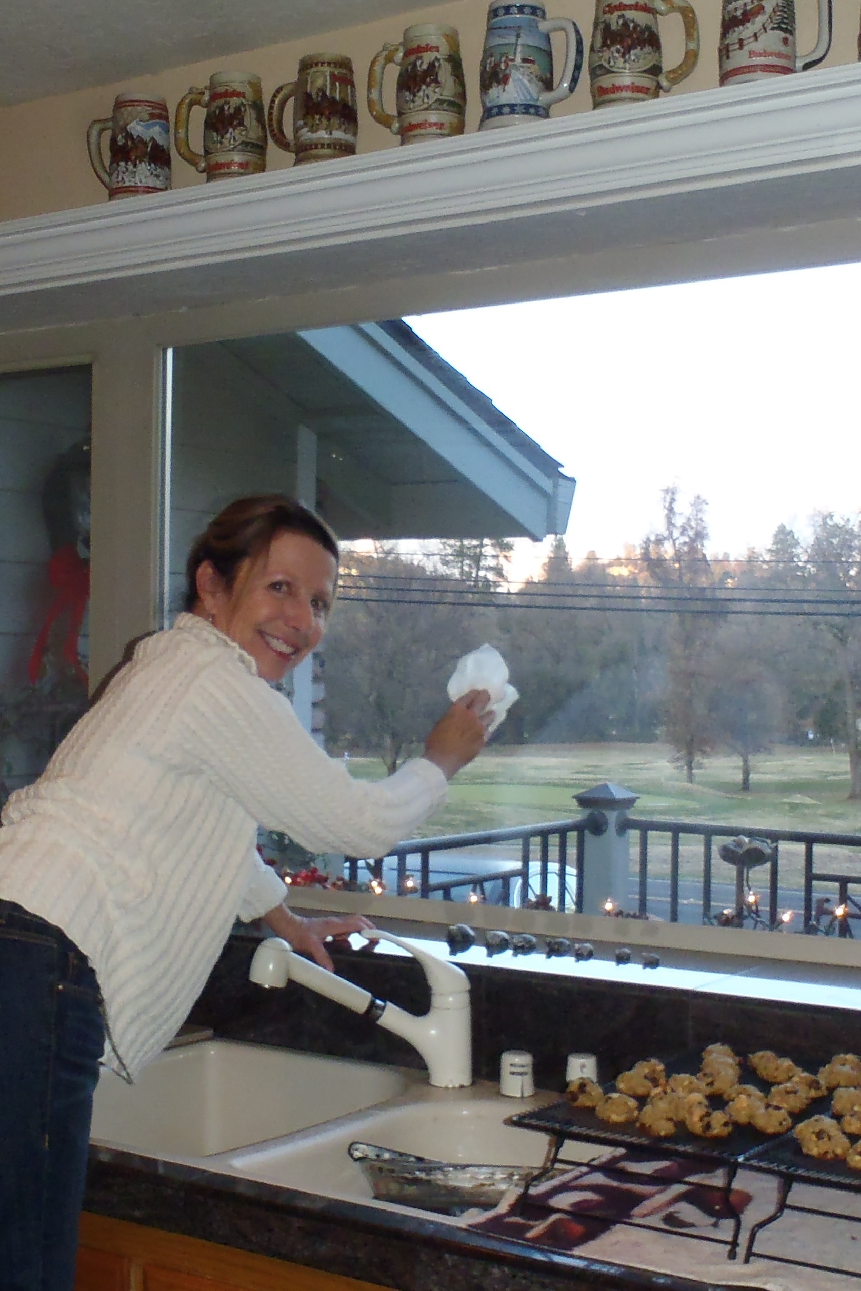 I laughed when Maria climbed a ladder to clean a few spots on her kitchen window. “This isn’t really me. It’s my mother Billie.”