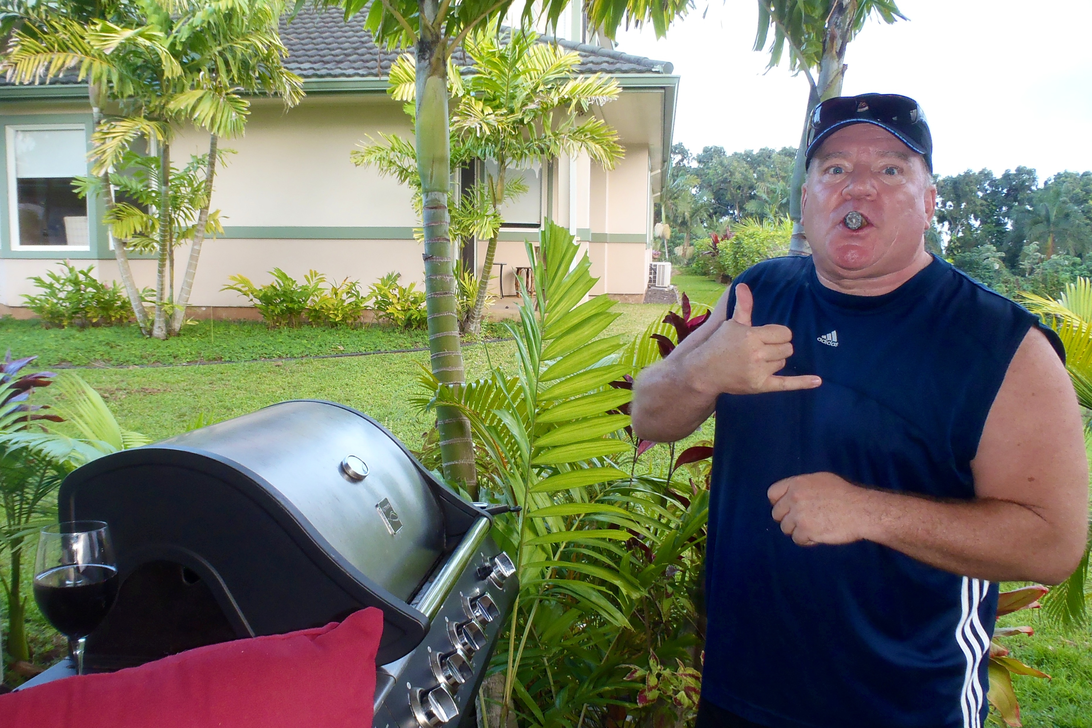January 1, 2014 by arletelouise - 0 comments New Year’s Day Another view from a ‘hood lanai: OMG! The best grilled ribs by Pat’s neighbor. Is that a quarter in his mouth? No, the end of a good cigar.
