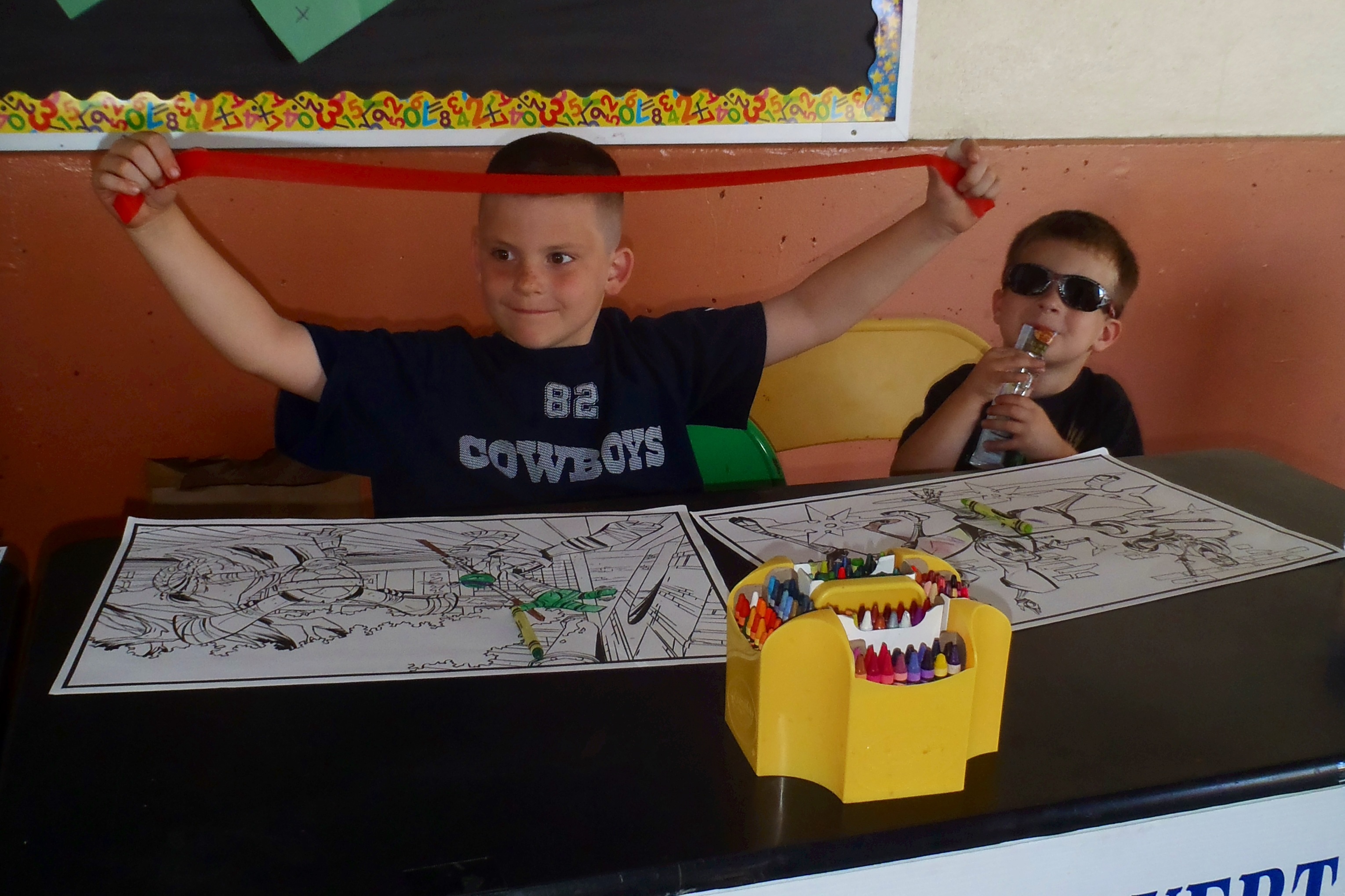 Extra helpers. What looks like a giant red rubber band is actually an unraveled fruit roll-up.