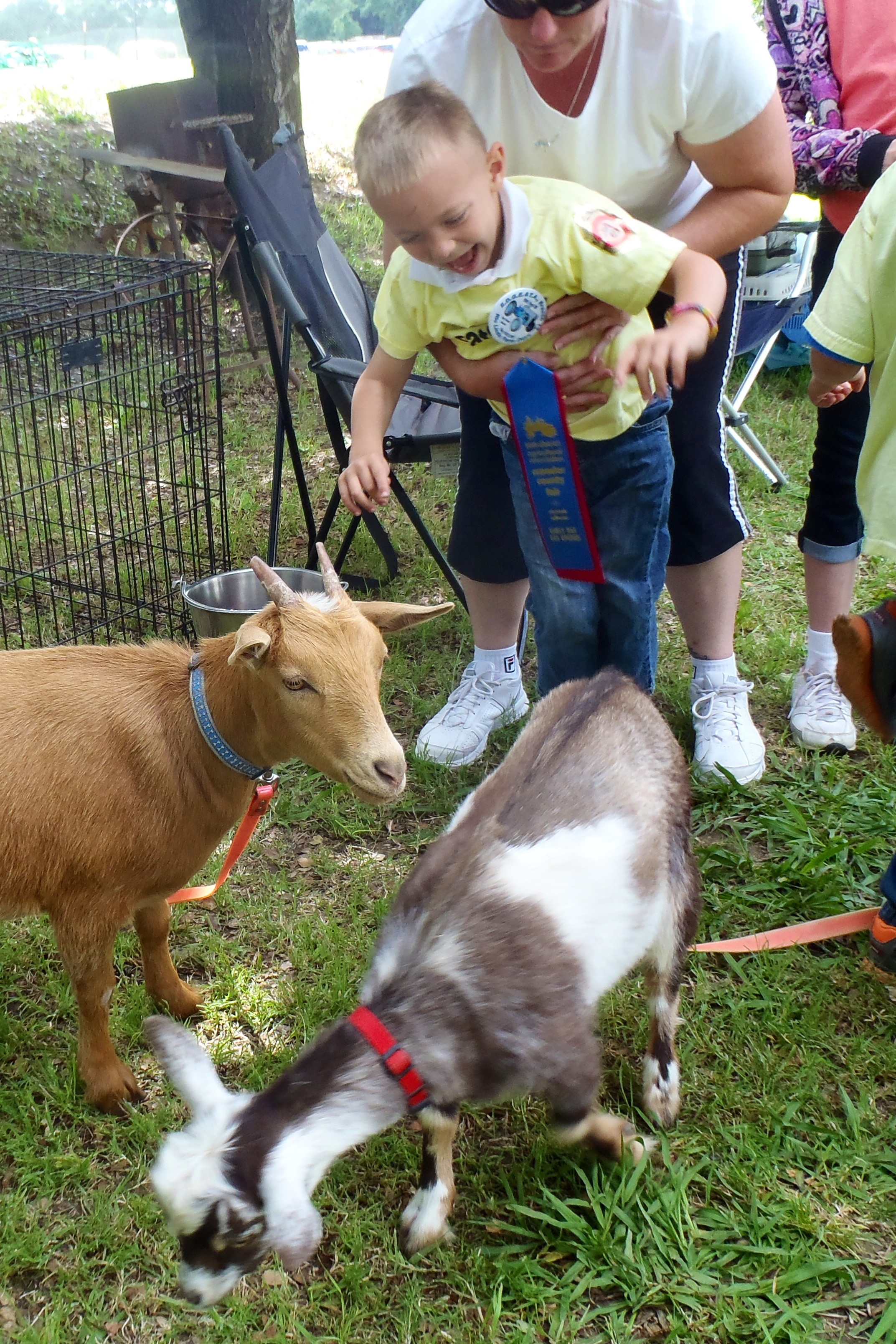 Green Acres 4-H brought animals. This boy was lifted from his wheelchair so he could touch the animals.