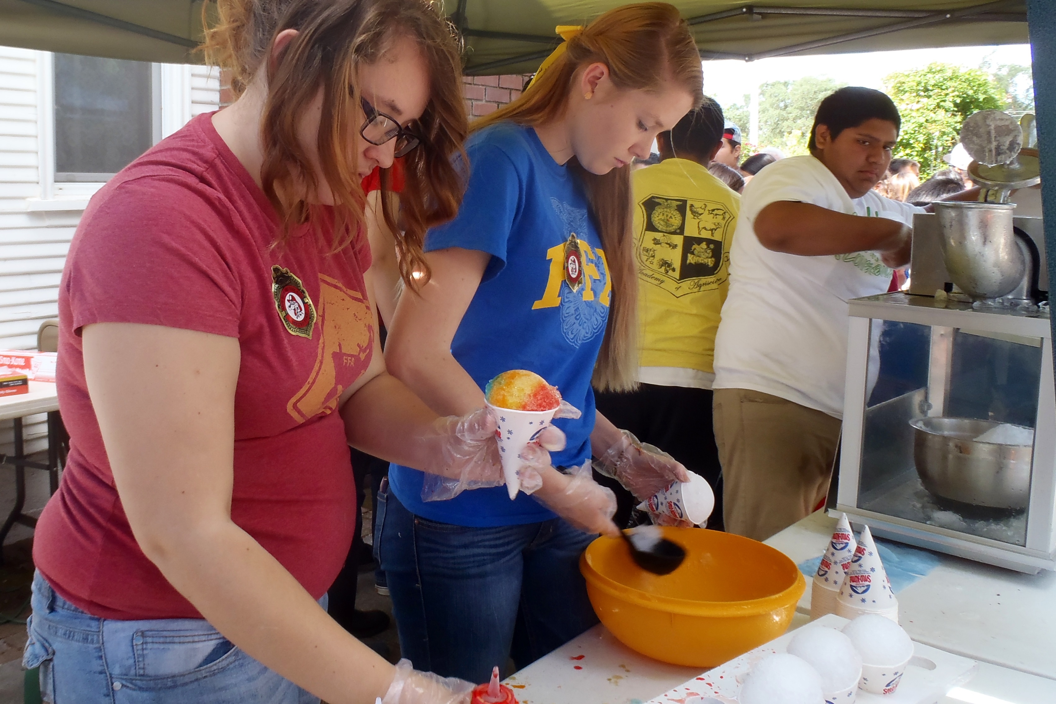 Big treat provided by RLEHS: free sno-cones for everyone. Thankfully members of Rio Linda High School FFA came to help out, not just here but all over. There were about 40 of them and they were all put to good use.
