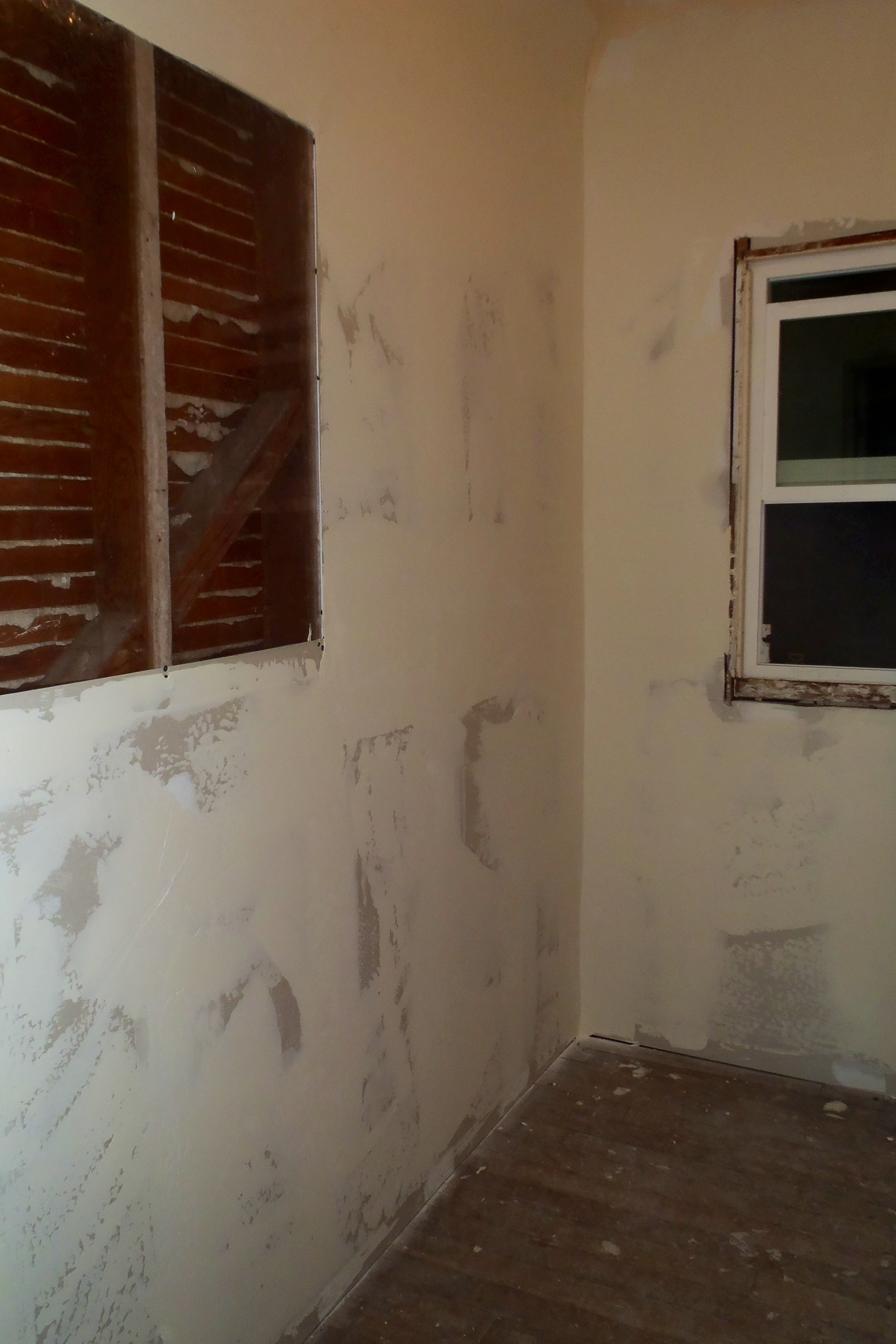 Upstairs, we saw the almost re-finished large closet. The exposed lath-and-plaster will be covered with a clear cover.