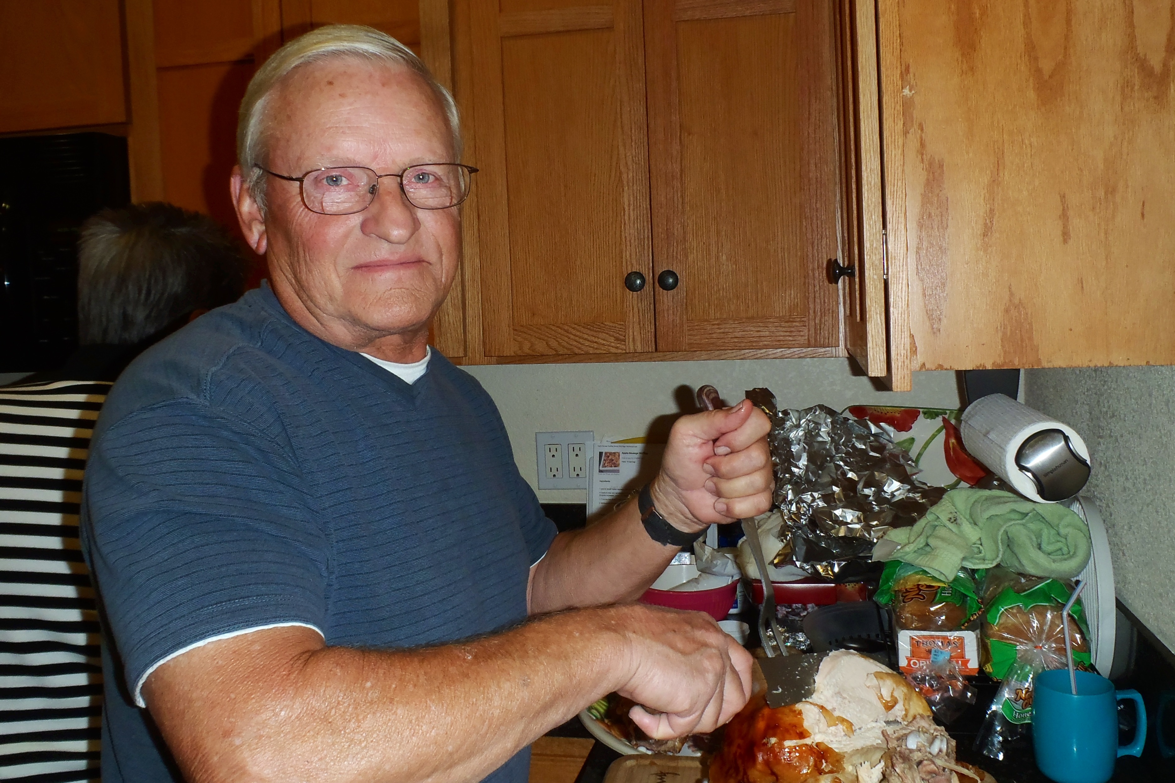The women’s group at the church did an amazing job providing food for the reception afterwards. As we all know, funerals are also a great time for catching up with family and friends. Most of the people in this picture I considered my cousins as I grew up. L-R Back row: Chuck, Phyl, Carol (siblings), me, John, Jim.