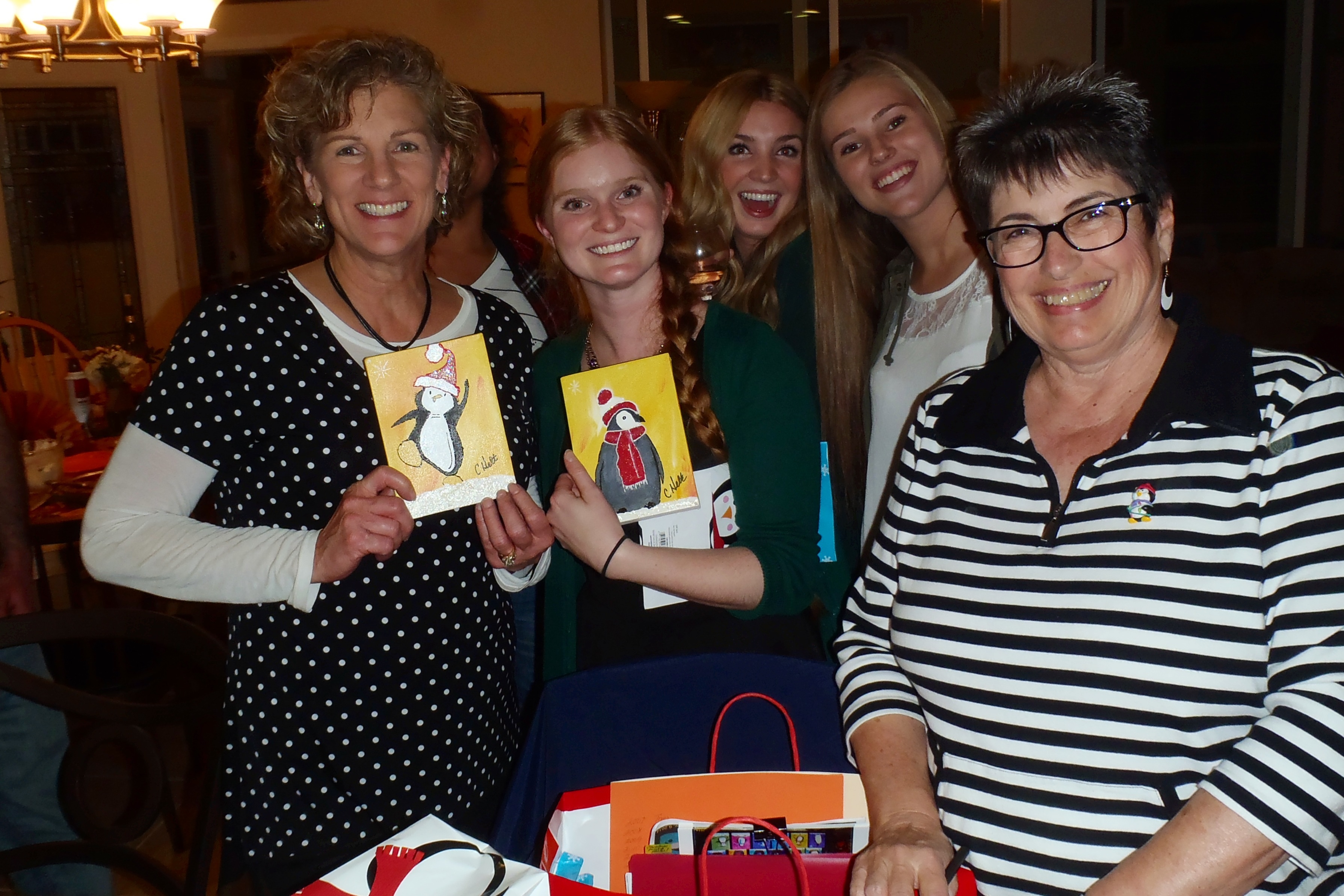 Each year, Carol gives to family about 30 different paintings as Christmas gifts. Each one is different and wrapped. Everyone was excited to see which penguin they got. Carol searches for ideas all year and begins painting during the summer. The images also become her Christmas cards.