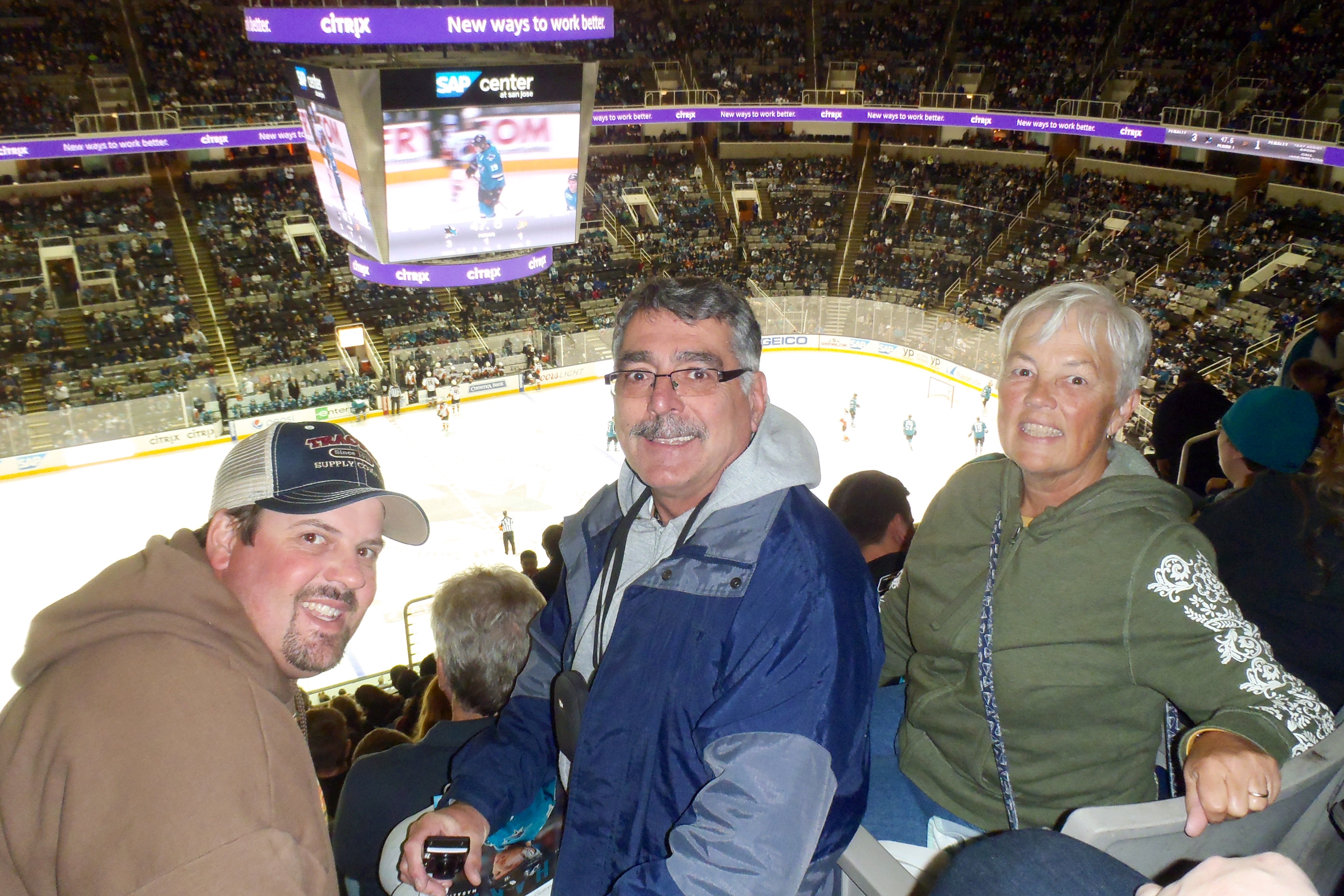 At first Glenn said no we shouldn’t go to an NHL game, it was a bit of an expense. After all, back in Regina he could easily go to a pro hockey game and would only have to drive about 500 miles. It was easy to talk him out of that logic. It’s just 150 miles from E Nicolaus to San Jose. And we had total fun!