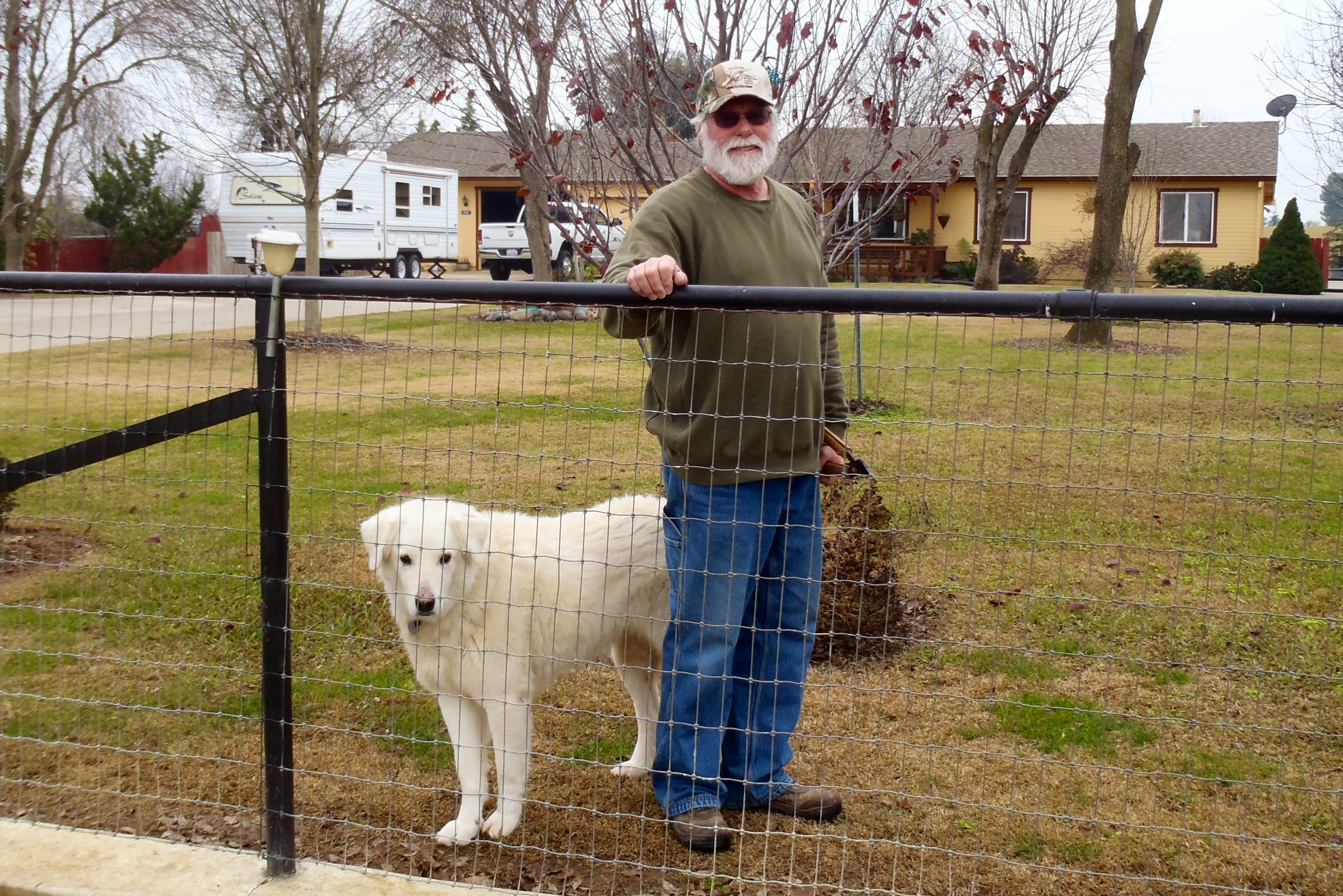 When I walk around the block, at one house a dog always comes along the fence and barks for the entire length. We chat. Today it went something like this,