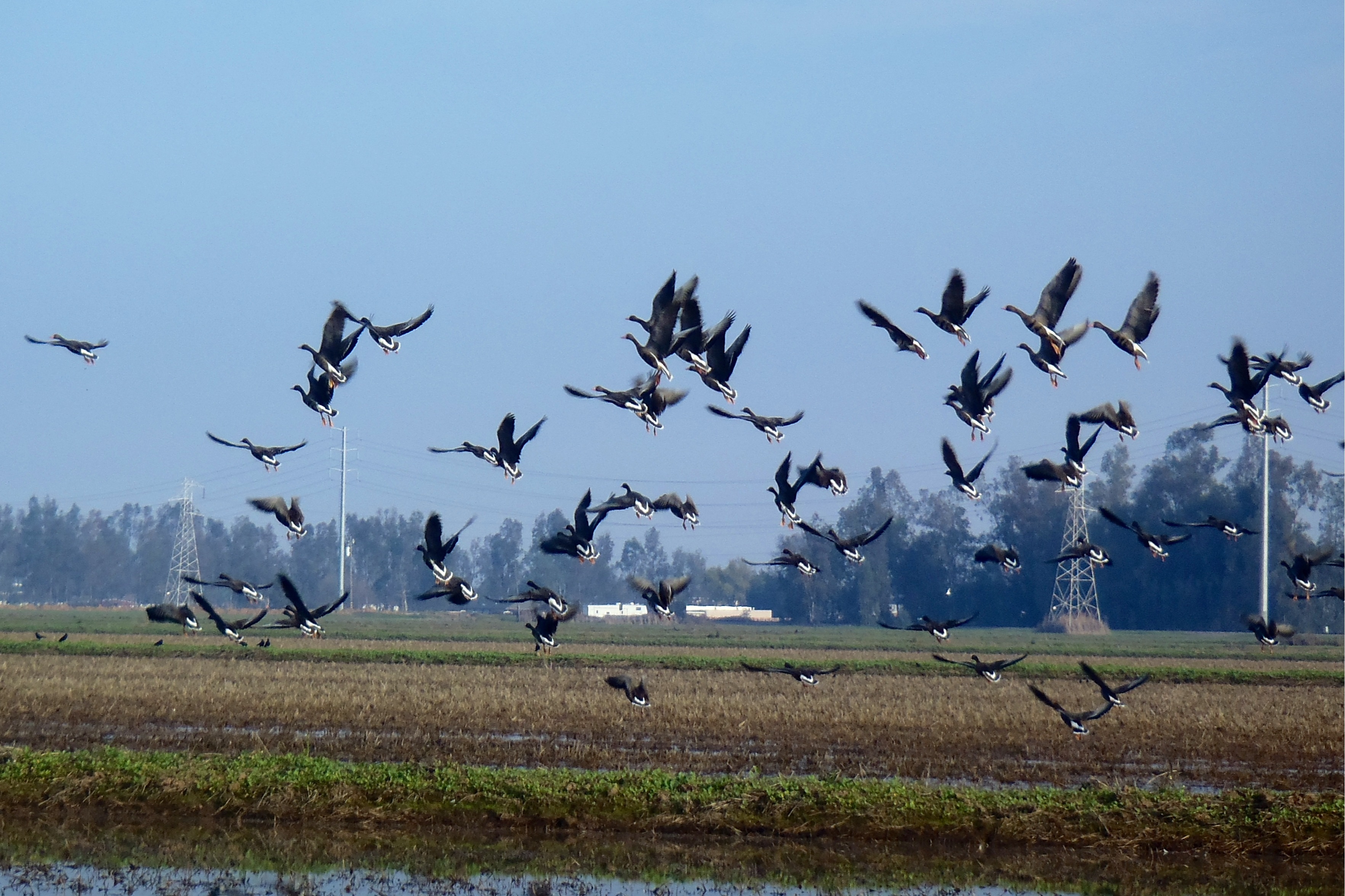 Most of the time, flocks of birds will take off when I walk by, but these birds just walked fast. Hundreds of feet swooshing through the water.