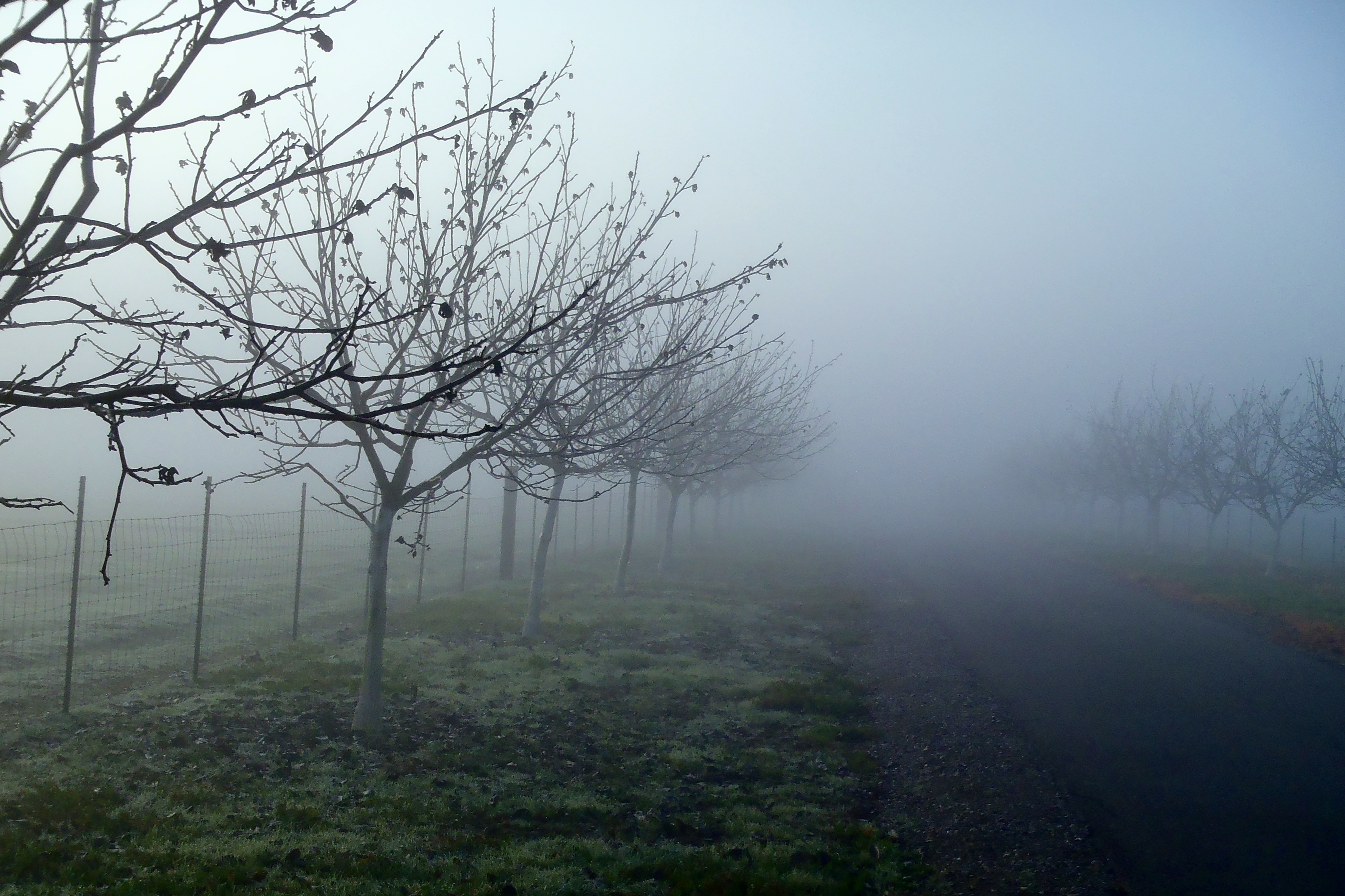 Ah-ha, behind the very tall spreading evergreen, someone was pruning crape myrtles. Hailey and John: