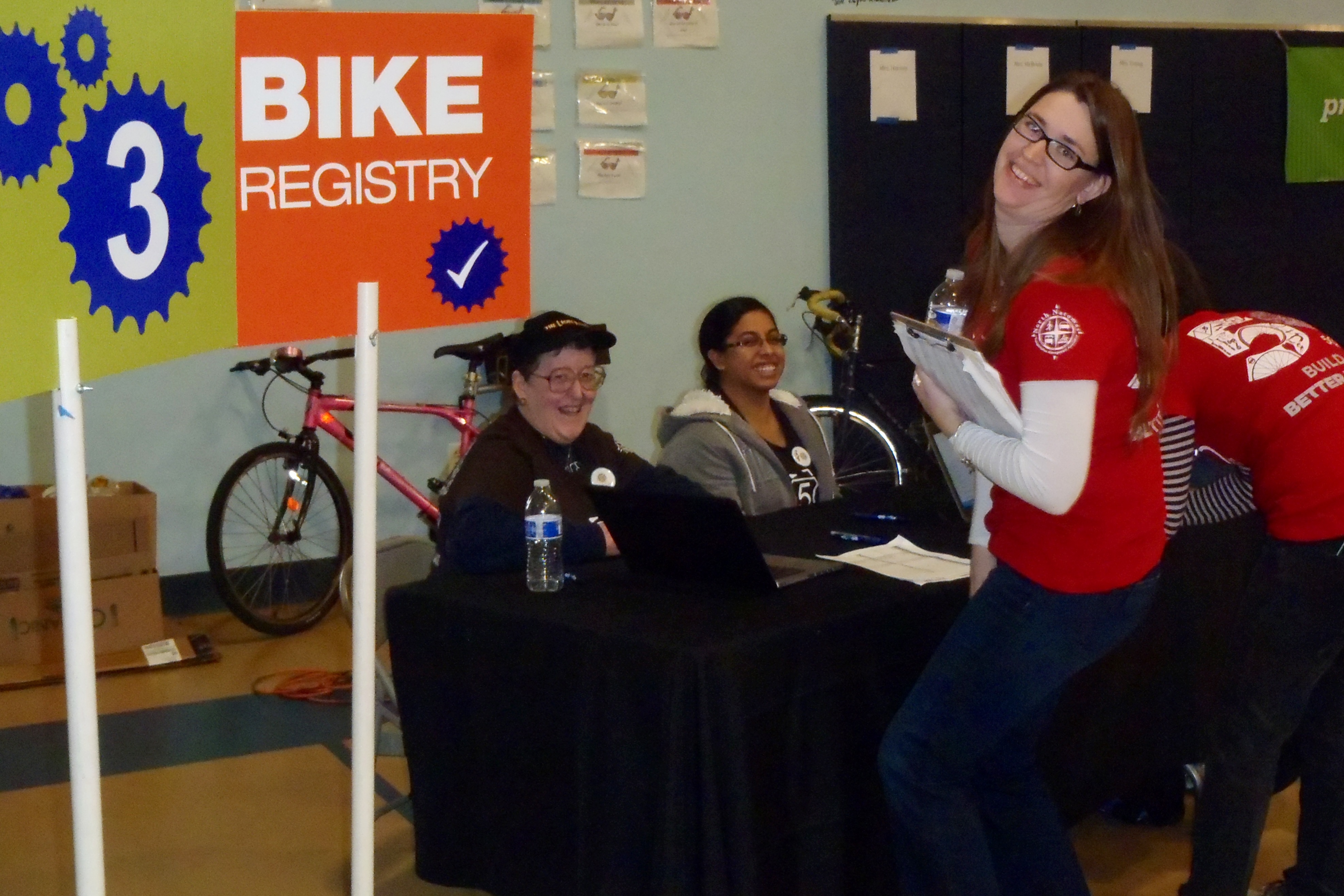 At the various stations, students received a new helmet and had it properly fit, received a U-and-cable bike lock and learned how to use it correctly, wrote a thank-you note to their sponsor, registered their bike with the police department, and had their official picture taken.