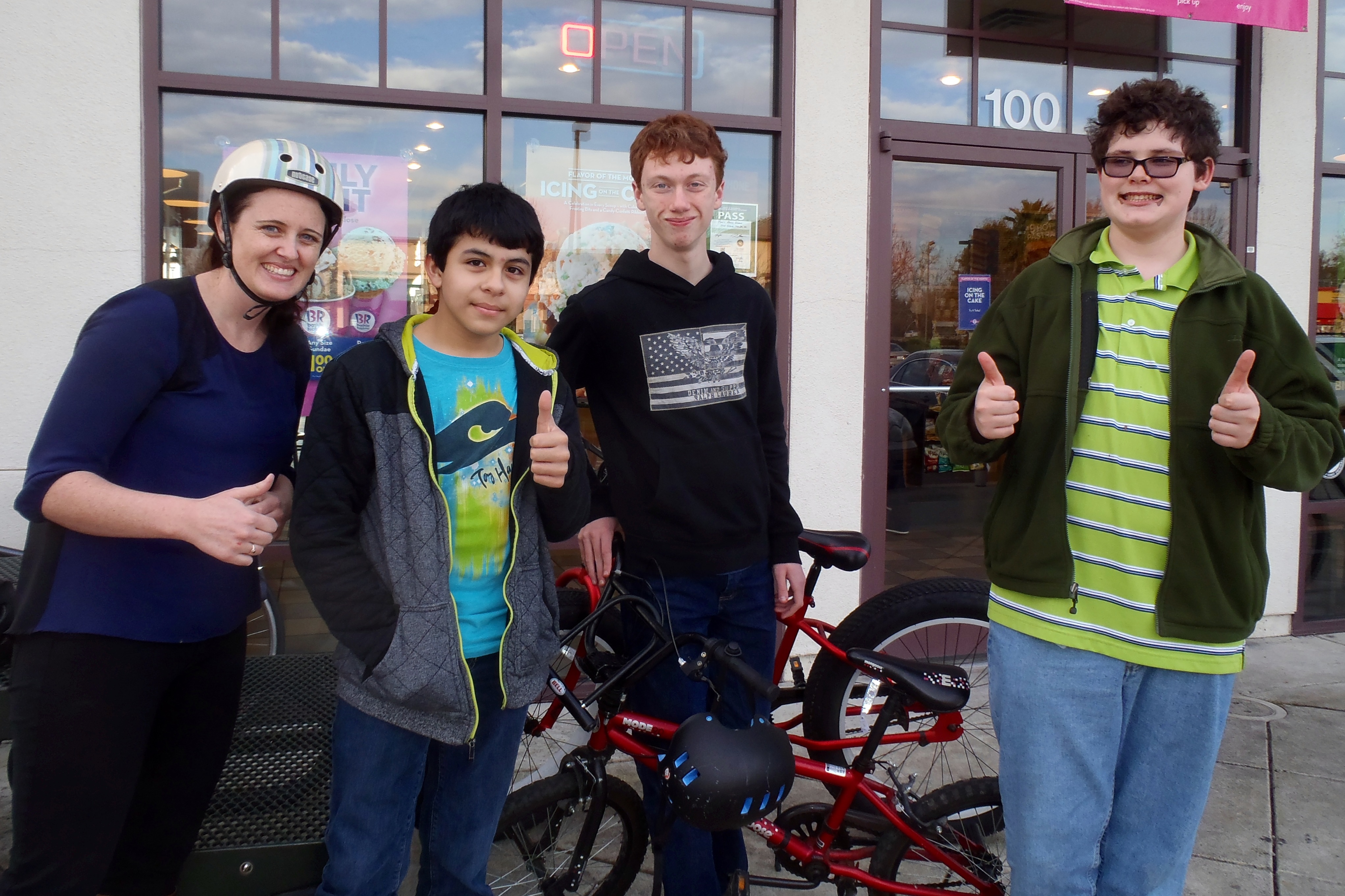 but an intrepid few stay after school and go for a quick fun bike ride. Along the way, we stopped for a bit to appreciate the recent improvement to the bike trail on the west side of I-5 just north of W El Camino Ave. L-R: Staff advisor Ms McManus, Xavier, Jack, Andrew.