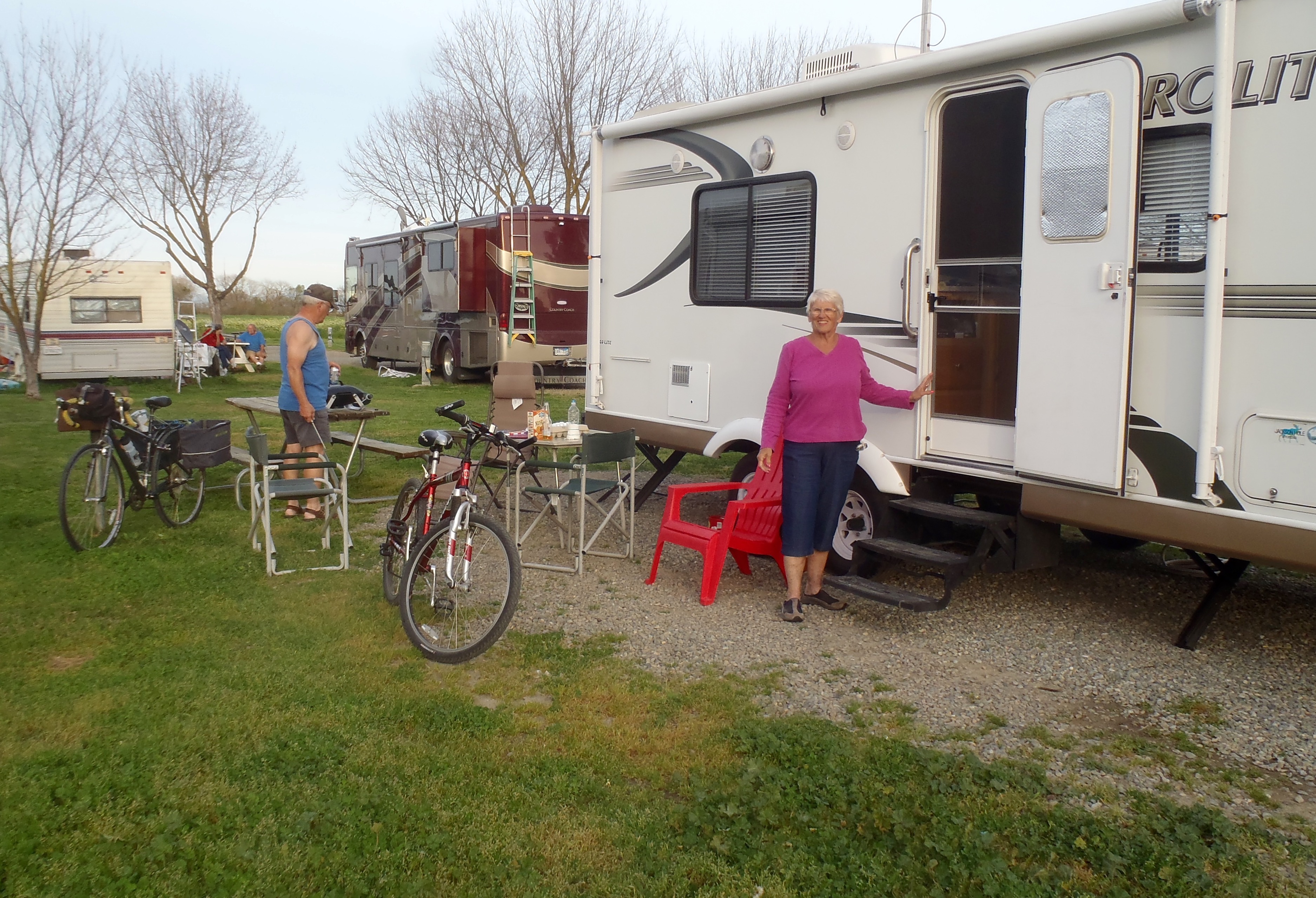 Yesterday and today, I rode a whopping 4 miles from Justin’s house to Lake Minden Resort to visit Dave and Phyl. 4 pm = cocktail hour, right? Filet mignon dinner. Oh my!