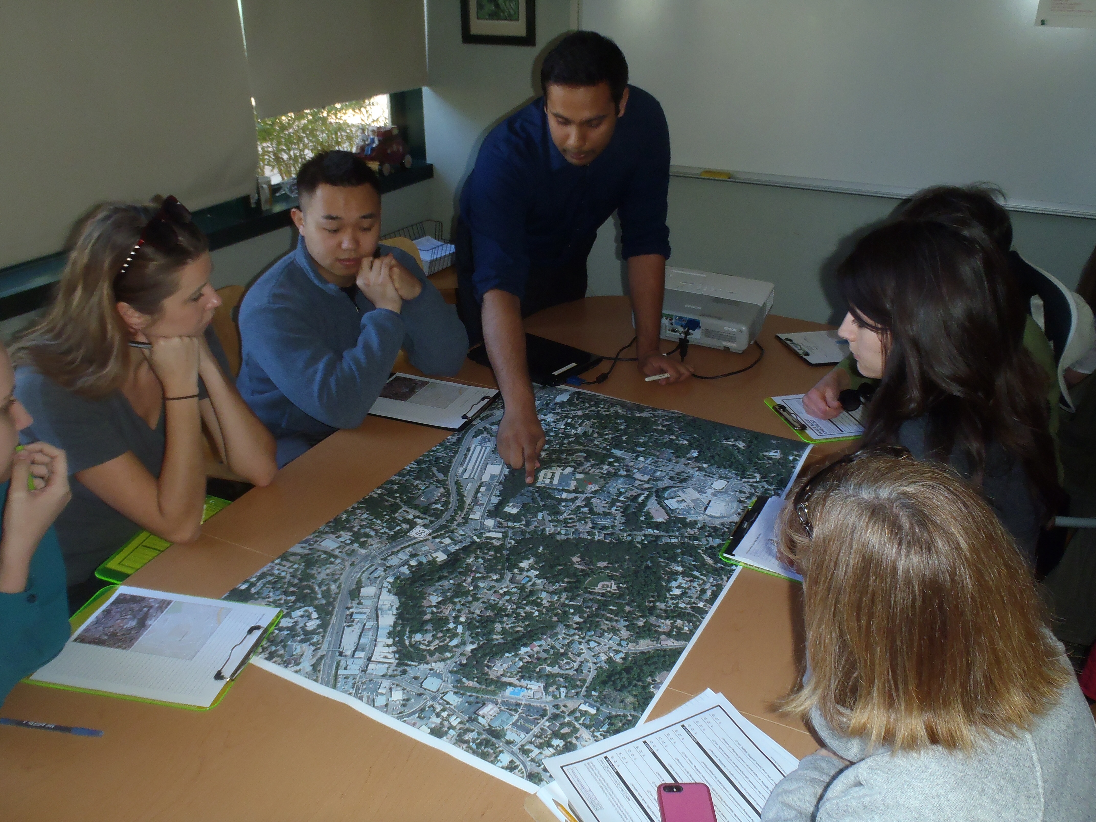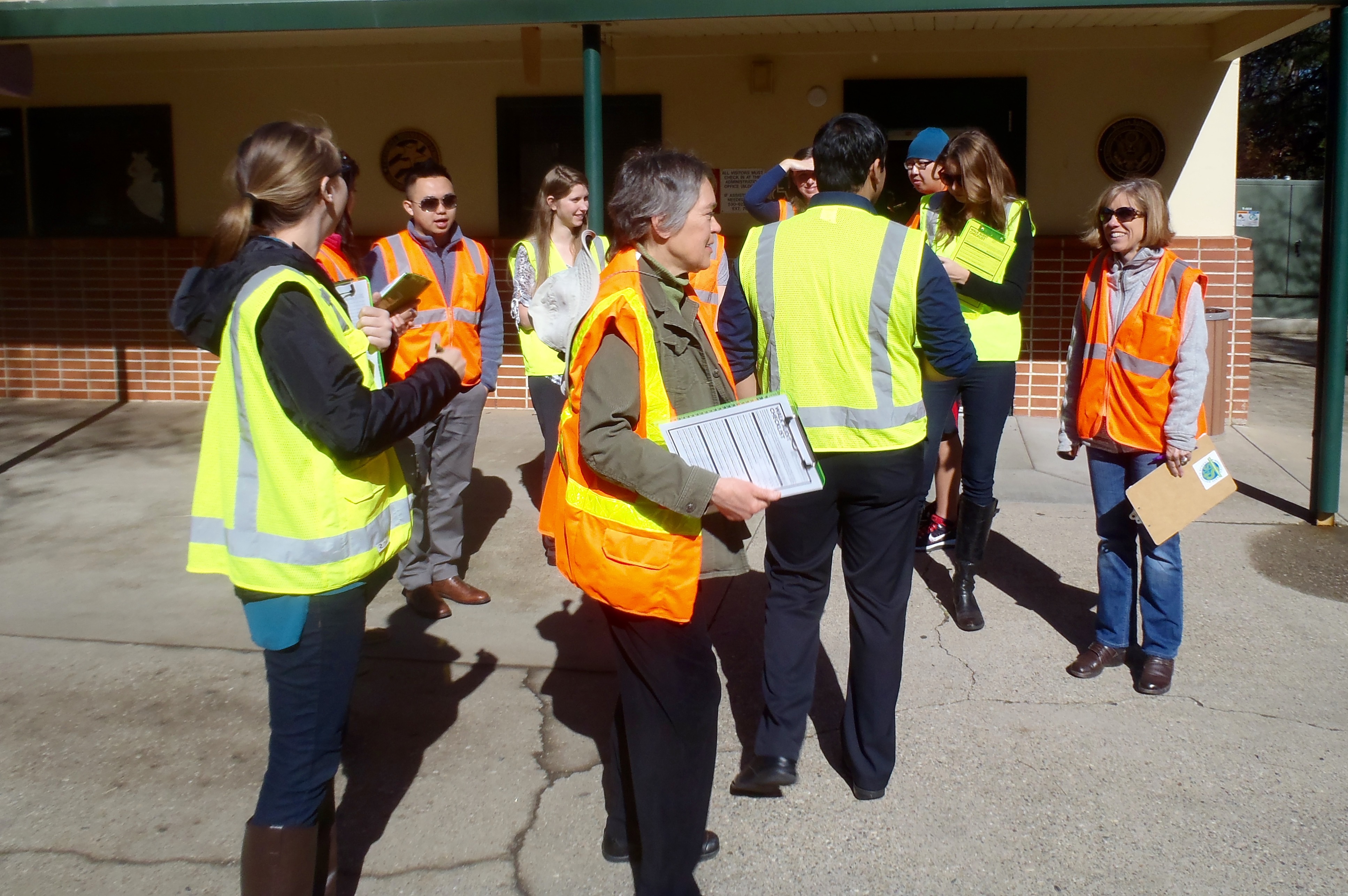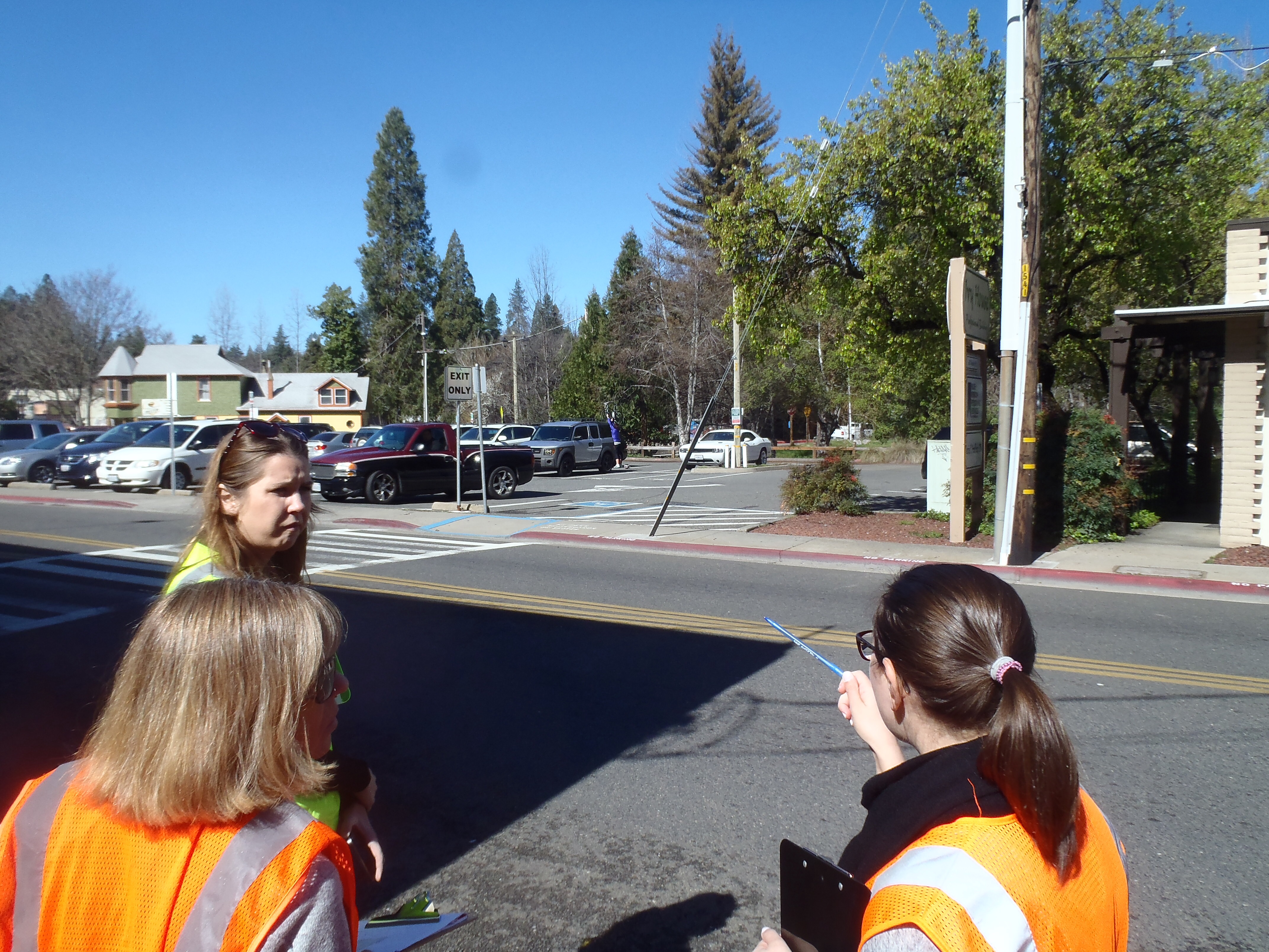 Today, however, the task was to learn how to do walk auduts. This is the very first step a school or community takes in order to remove the barriers to walking and bicycling to/from school. Also participating today were people from the California Department of Health and the Health Education Council who are preparing to conduct walk audits in Sacramento City School District and TRUSD. Satellite map of the area around Sierra Elementary: