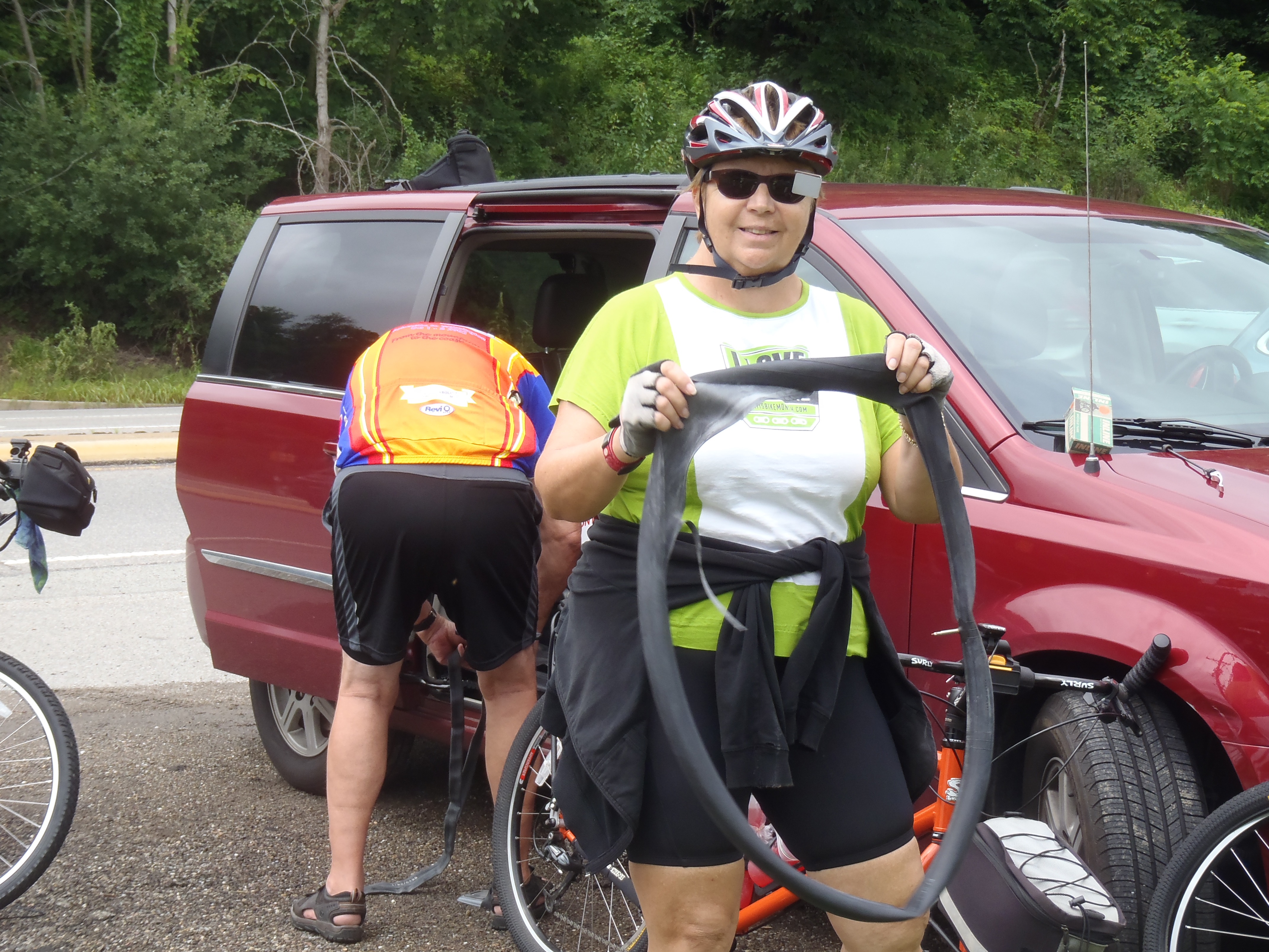 JD had some bad luck. First he discovered he had a flat and replaced the tube quickly. However, he put a bit too much air in and it blew up. So no riding for him, instead he had to drive to the bike shop to buy new tubes. Needless to say, he was not happy.
