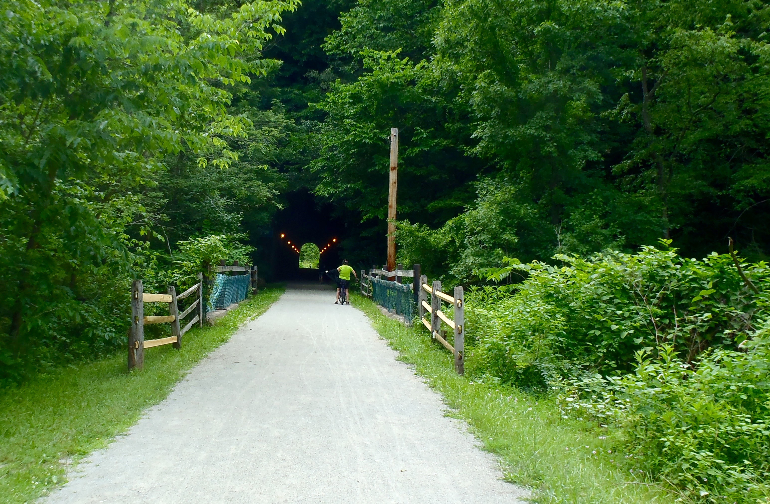 A tunnel with lights – this is a first! Sometimes it’s so dark, you have to walk your bike and use a headlight or flashlight.