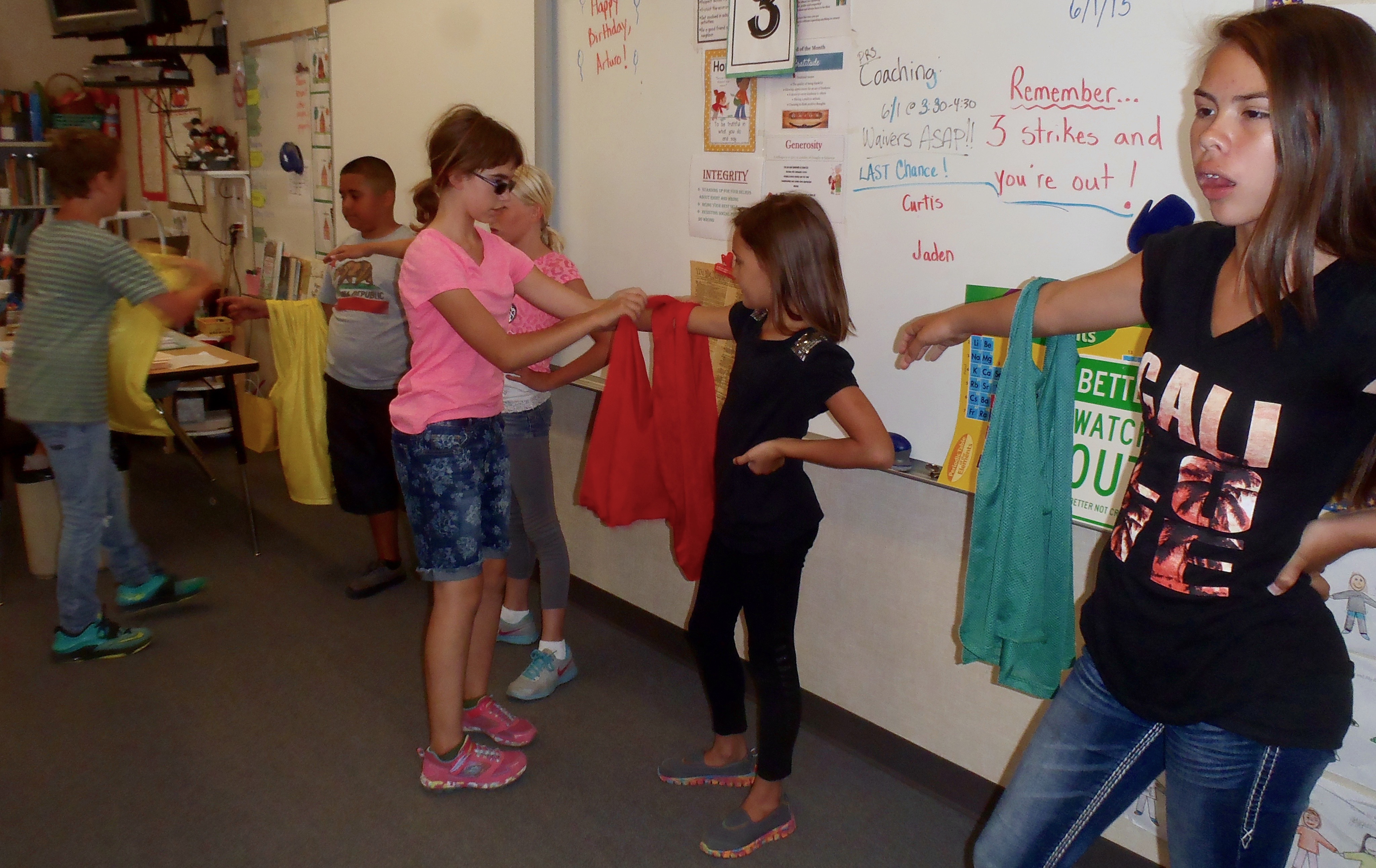 Collecting jerseys efficiently to be ready for the next class.