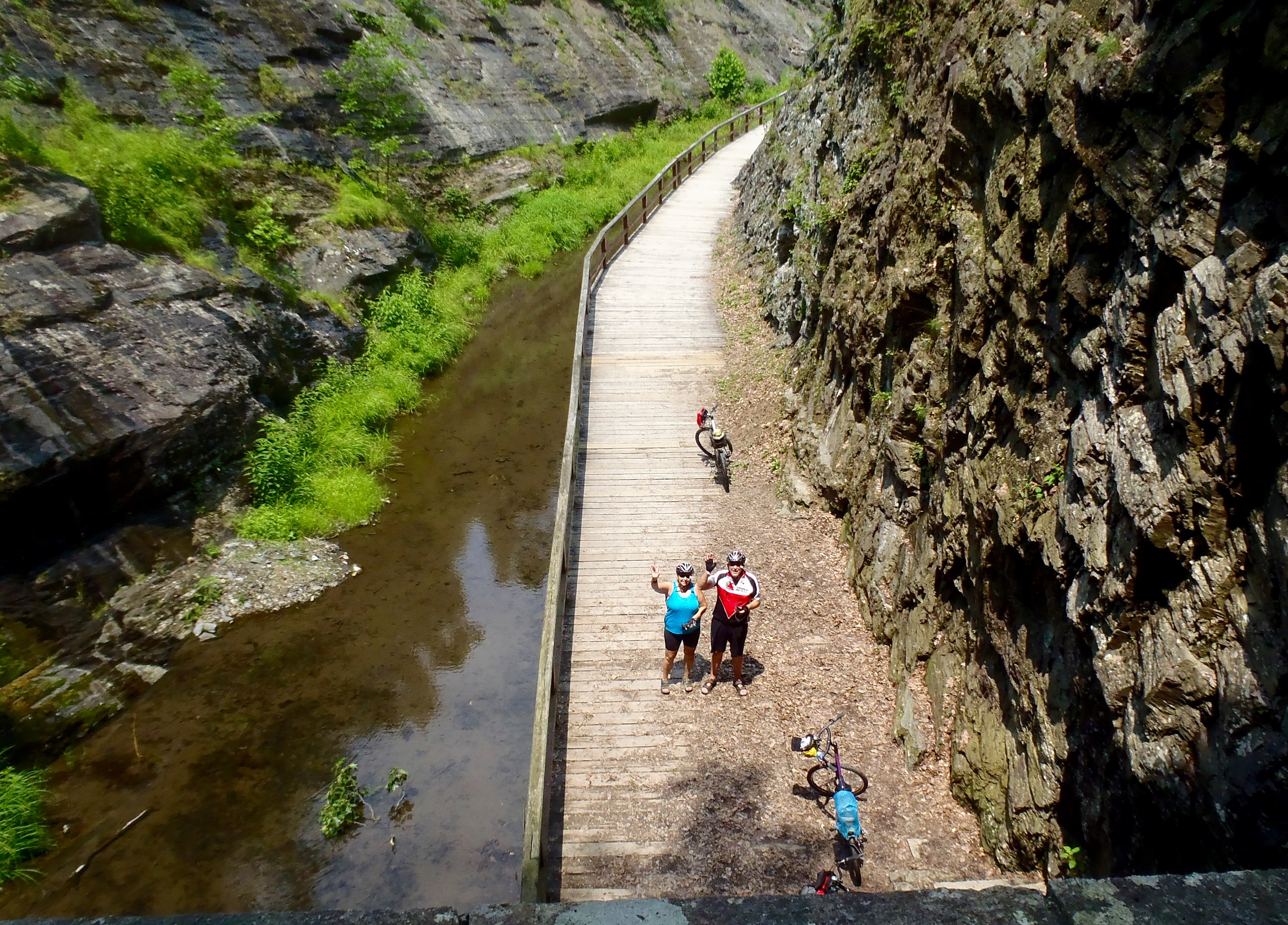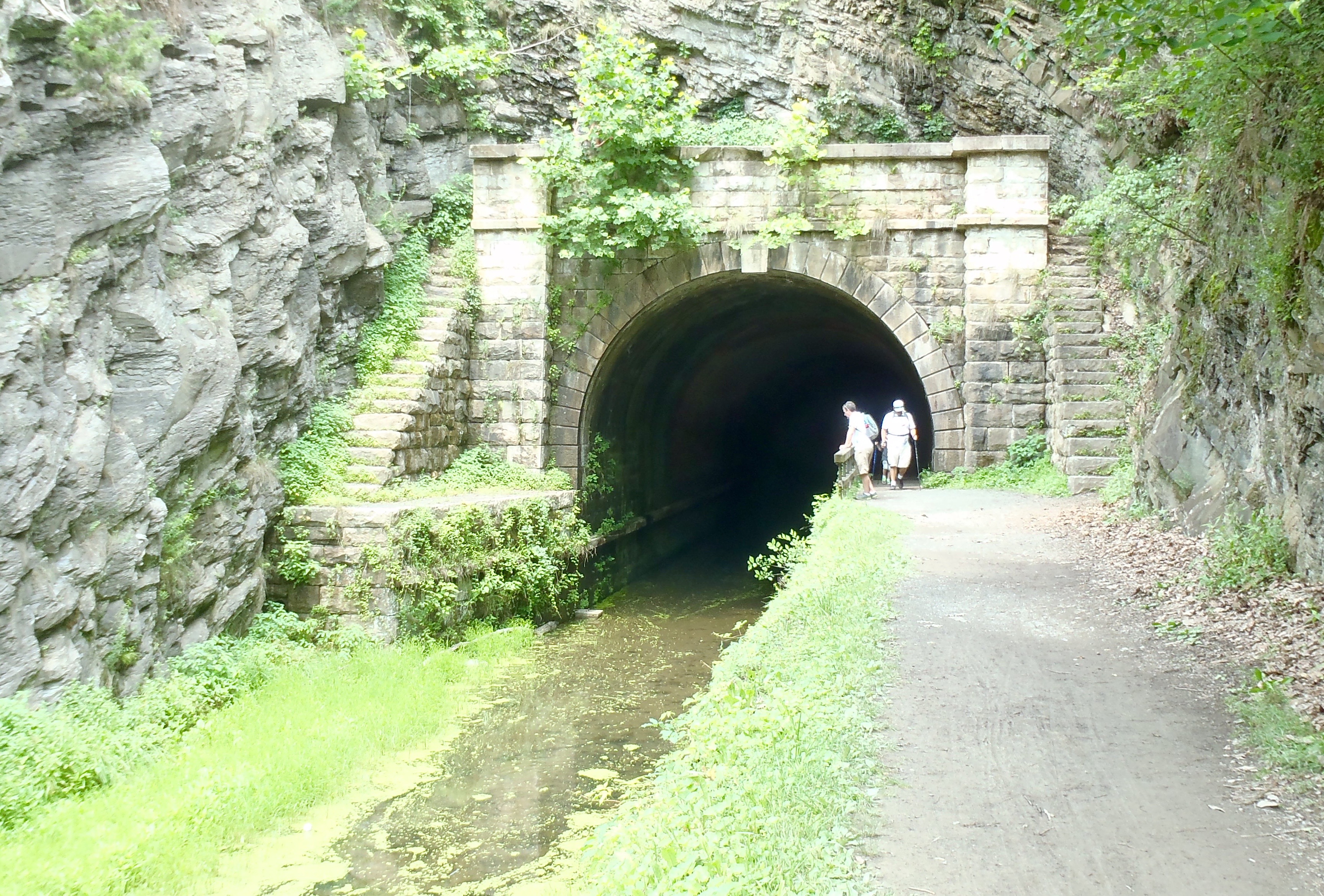 The totally dark Paw Paw Tunnel, 3118 feet long. We used flashlights and walked slowly attempting to avoid the puddles.