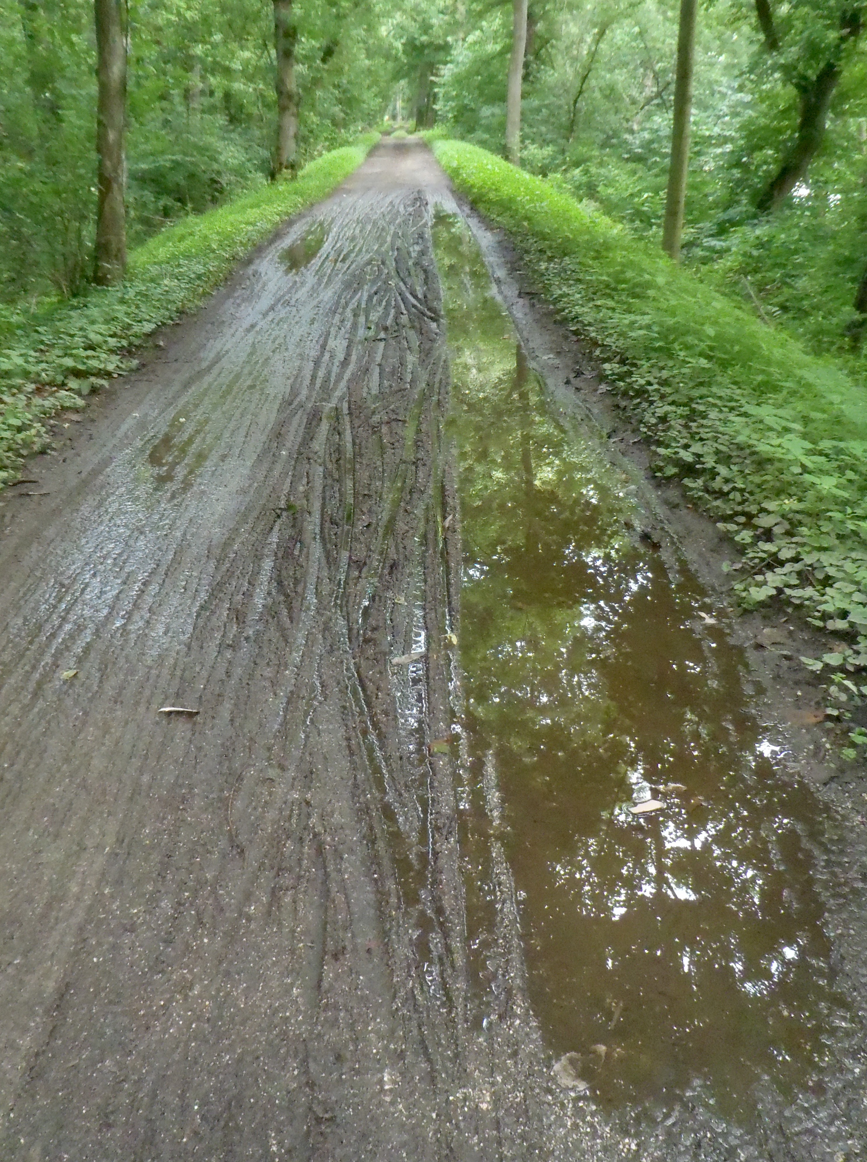 This path was more challenging: less-well maintained, hard-packed dirt and so many muddy sections.