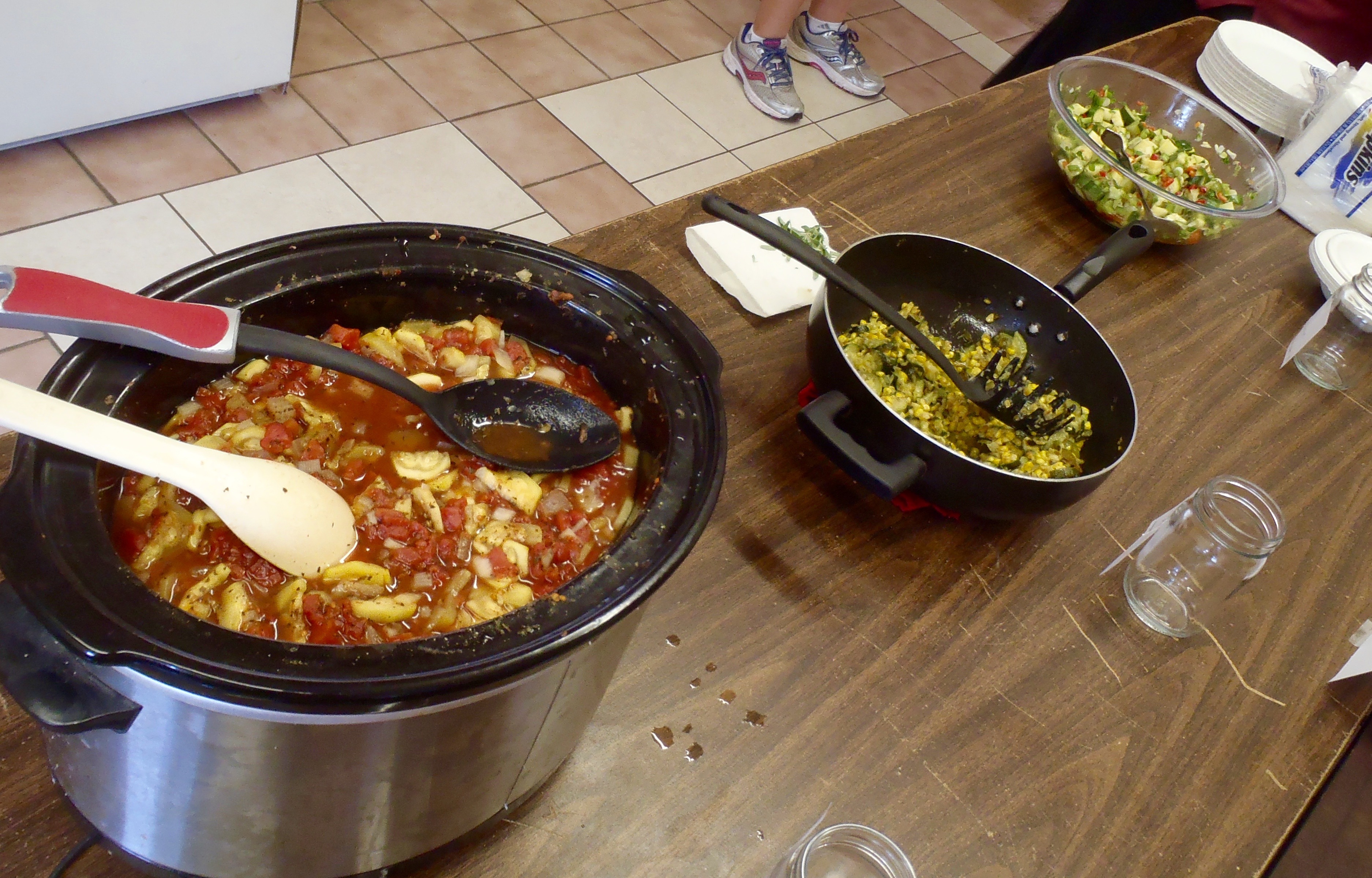 Zucchini Savory Contest entries. The middle dish – Carmelized Zucchini and Corn – won.