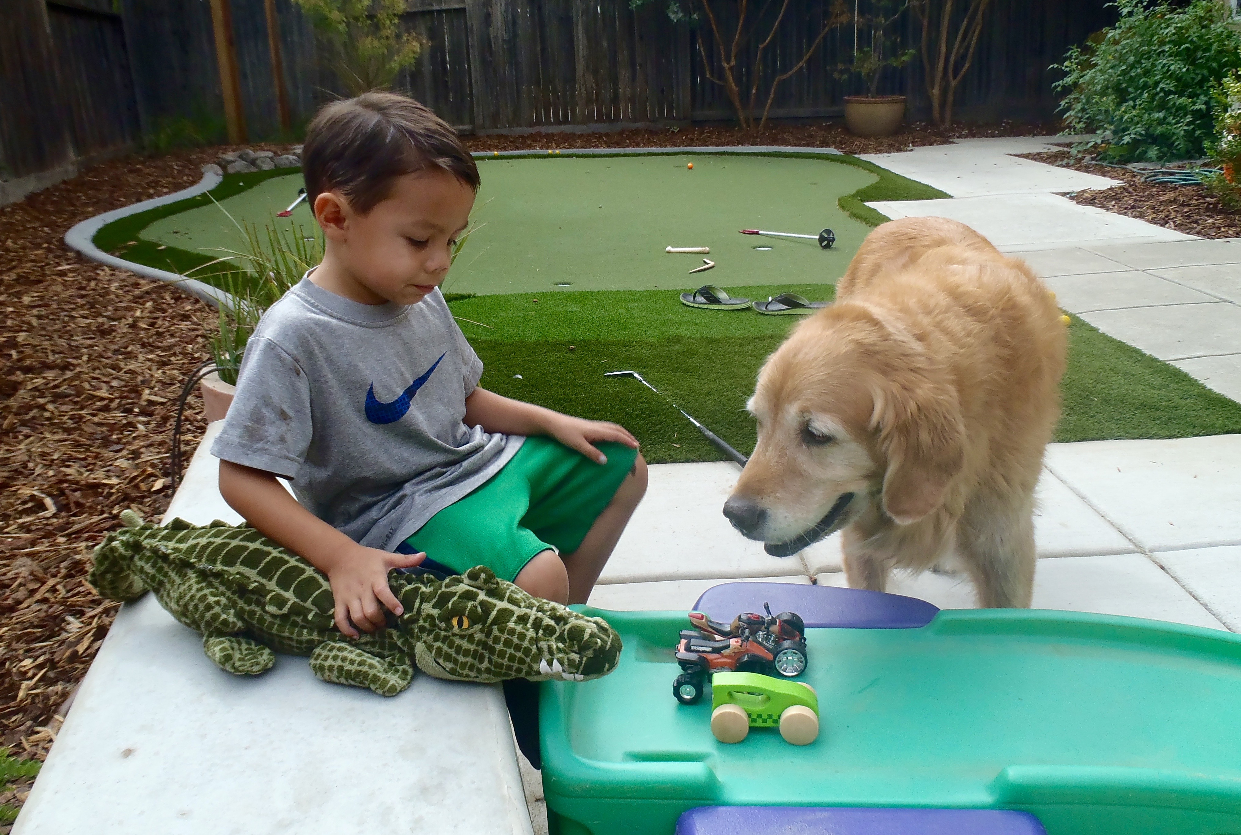 Avery tried tail-first and head-first, but the alligator would not go completely into the hole.