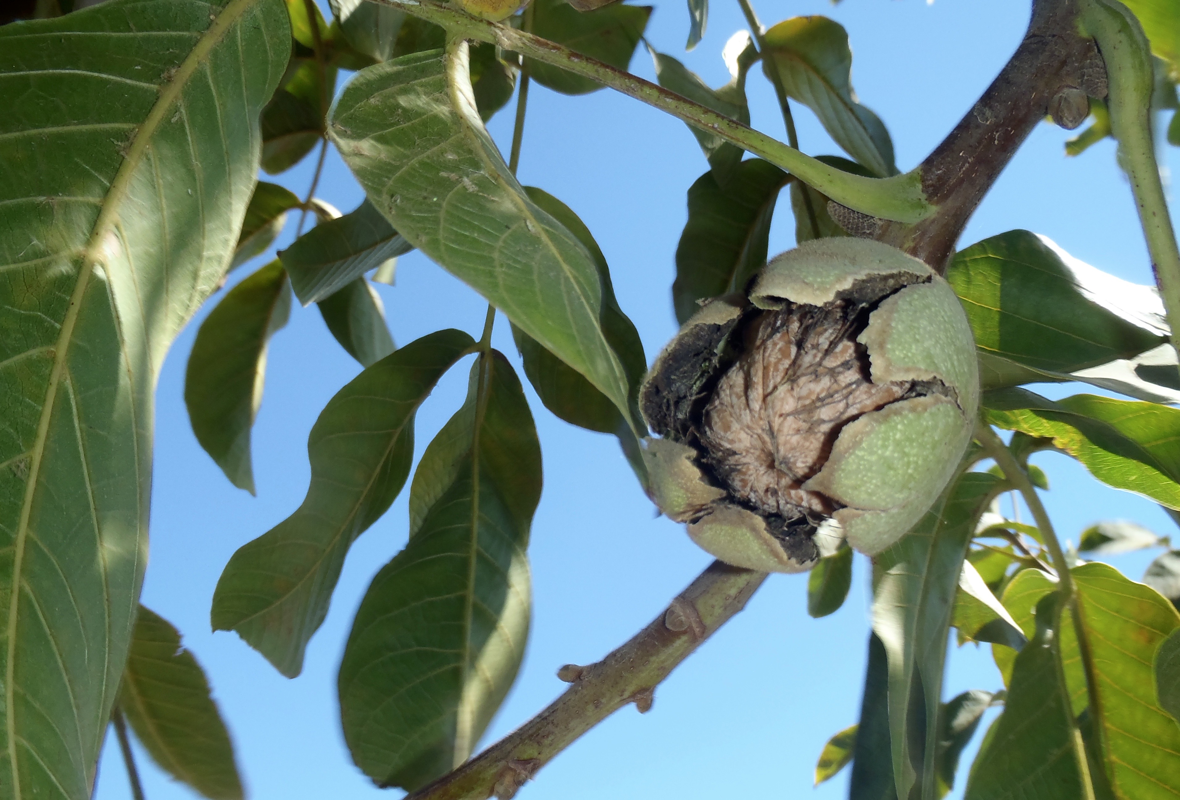 Walnut gathering. These are still the “reaching up” days looking for walnuts that look like this. Reaching up is much better than bending over and picking nuts up from the ground.