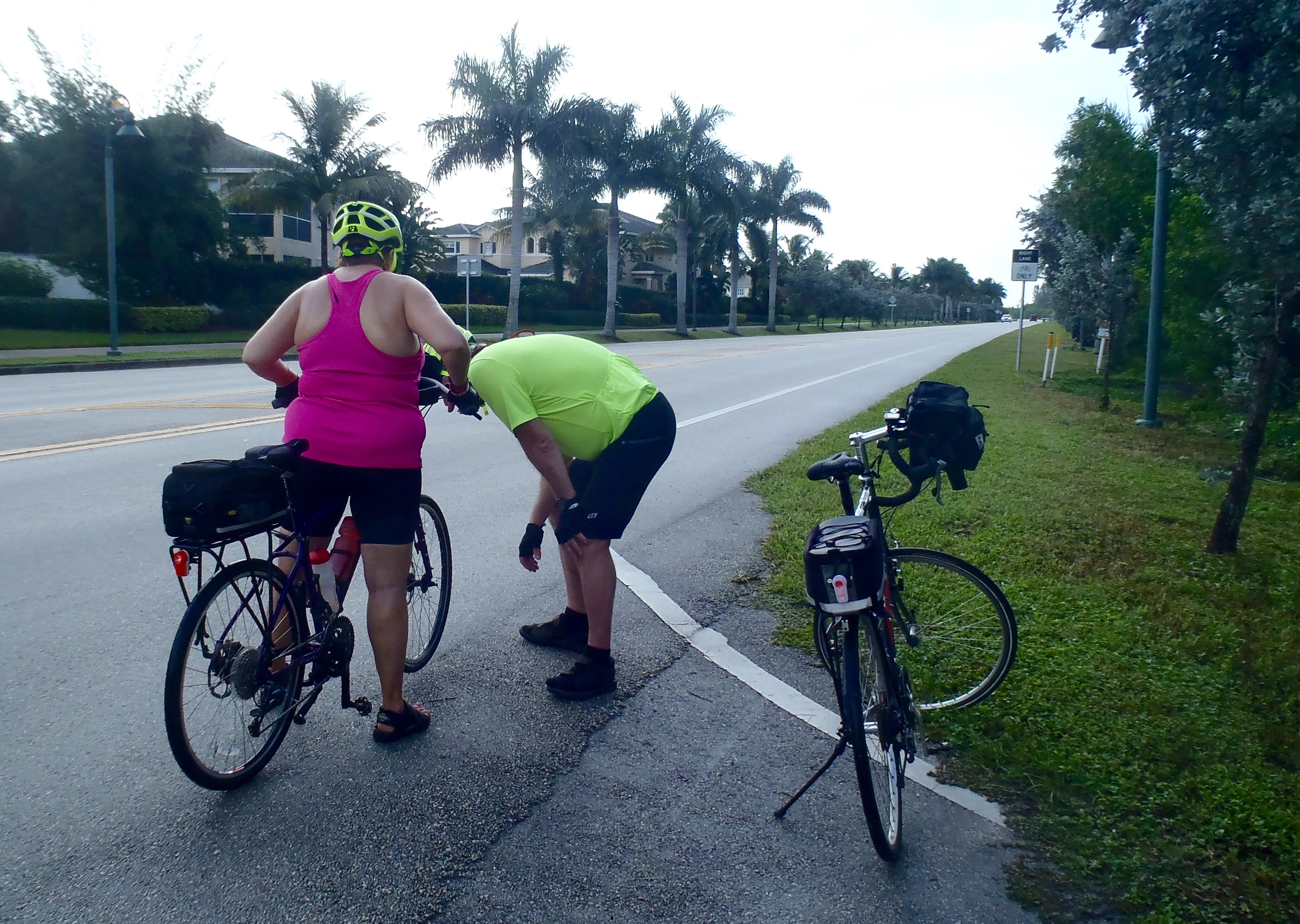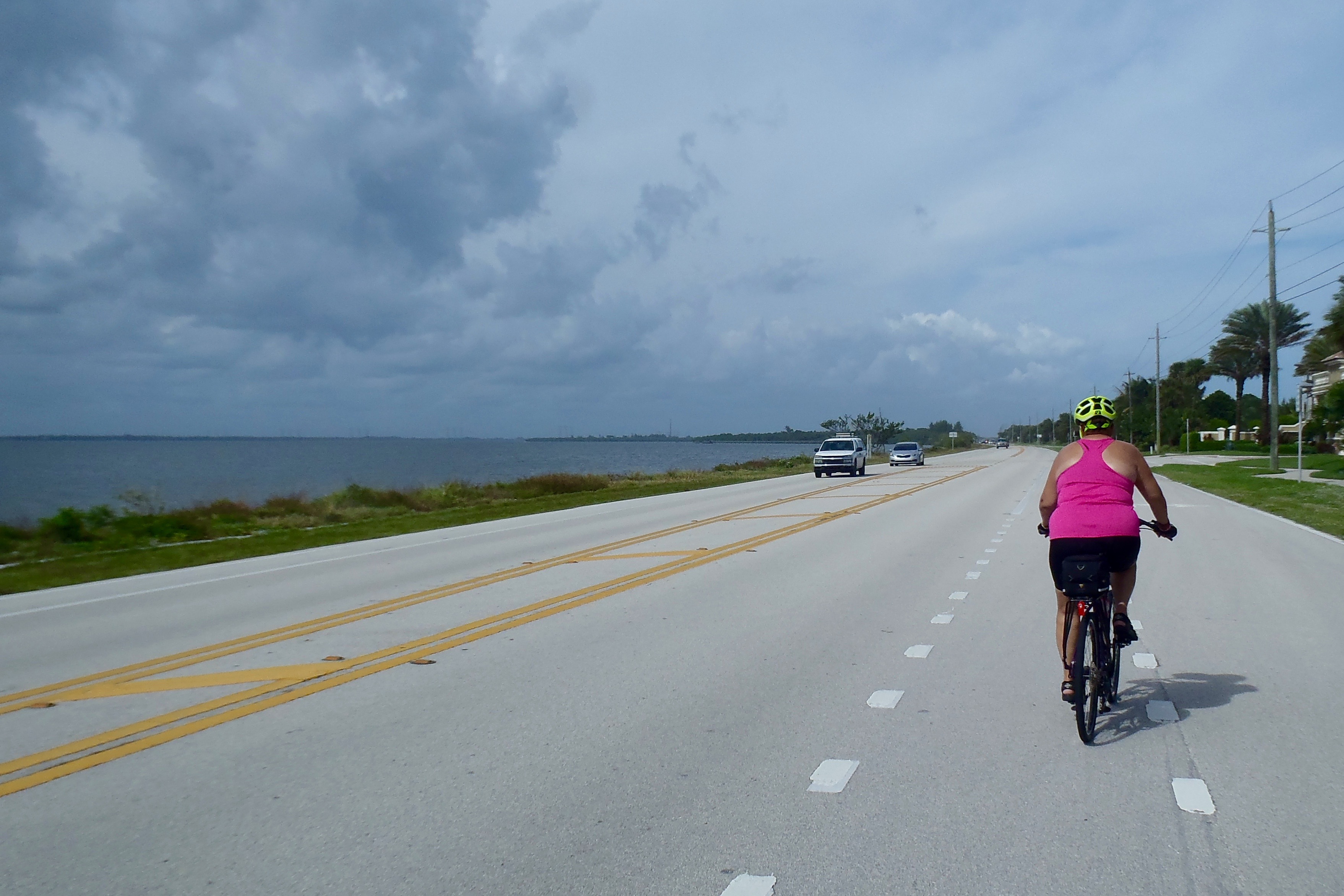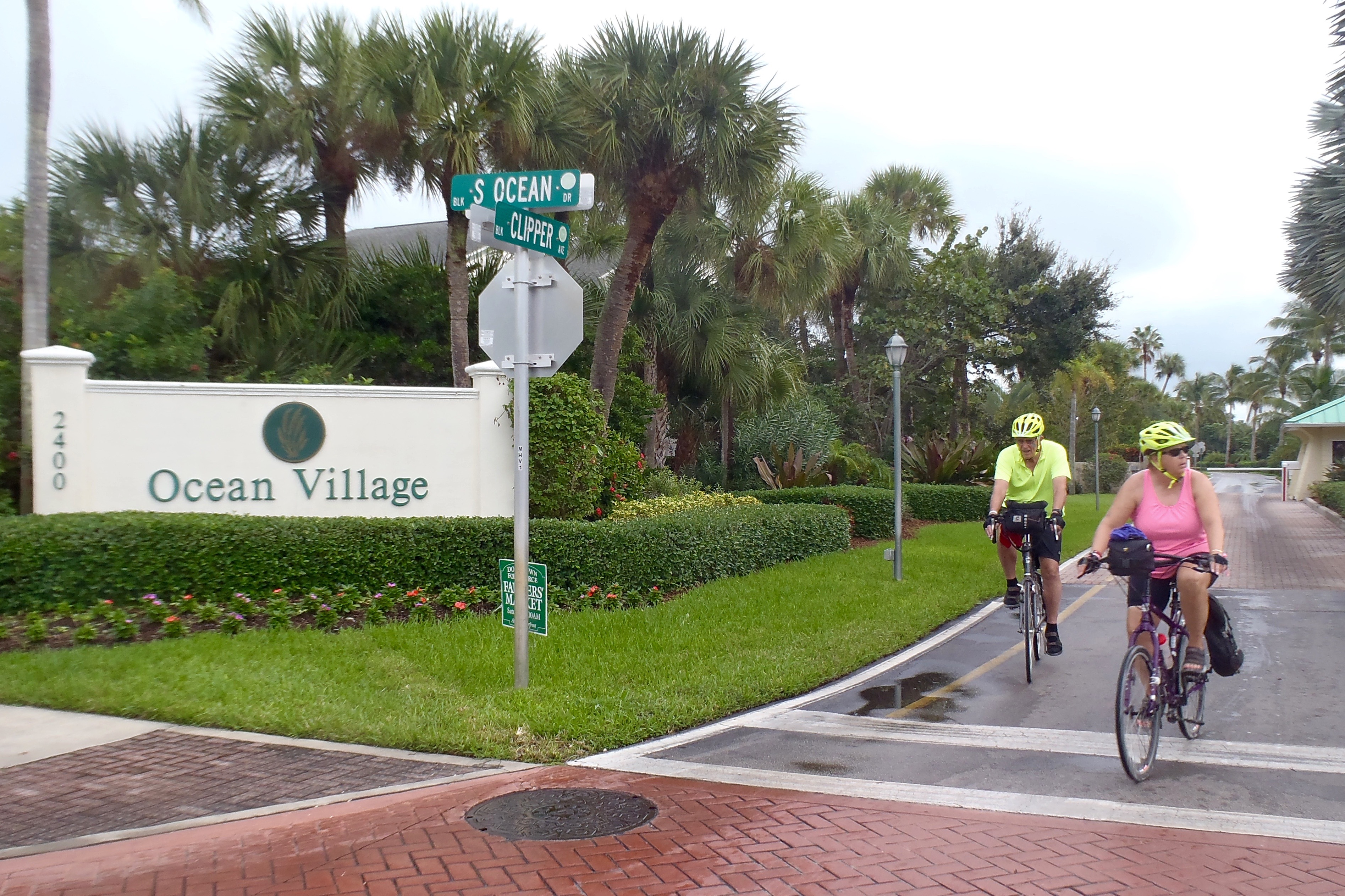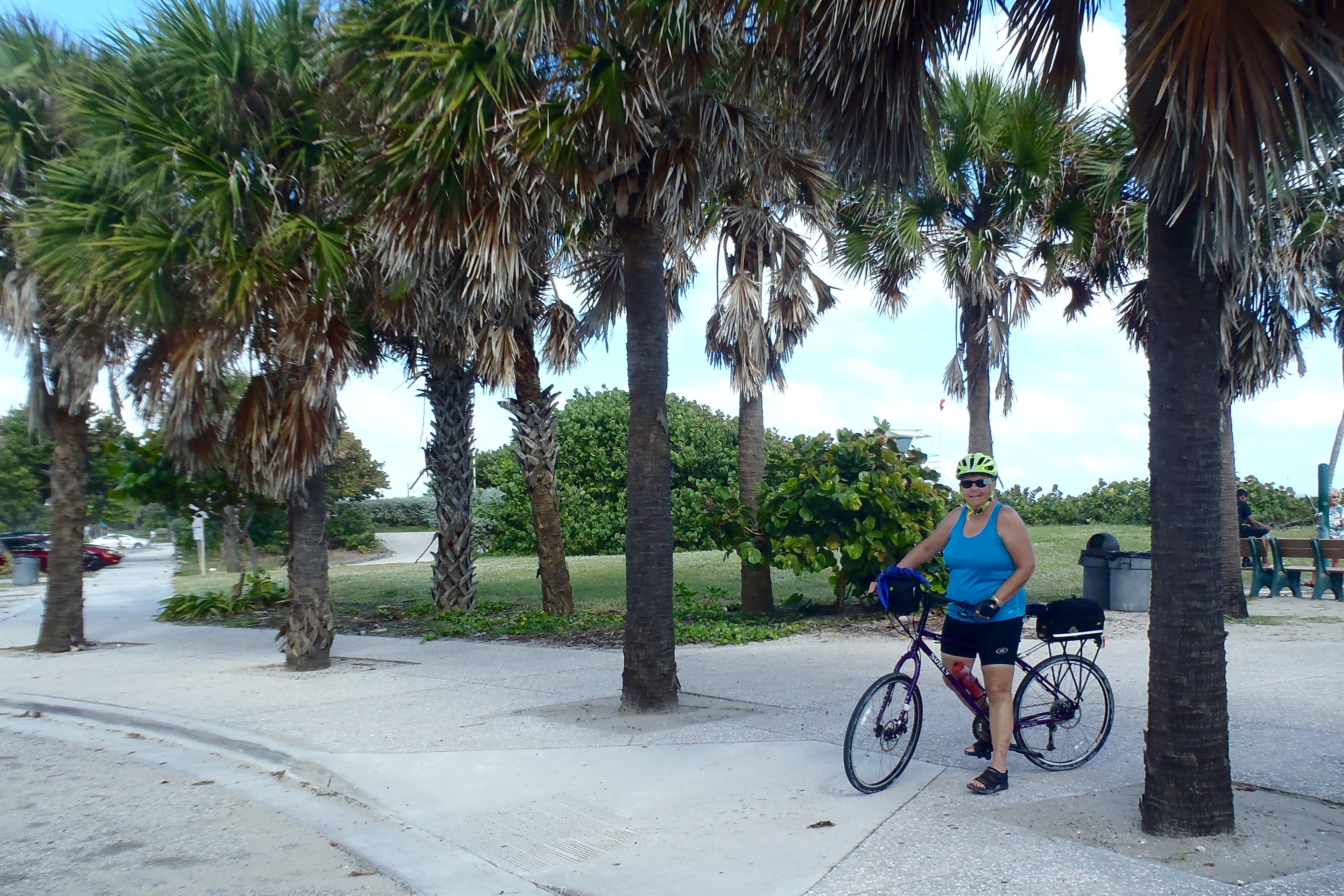 Winds at 10 mph and no rain this morning – it was time for a bike ride. At last! Final check before heading south toward Jensen Beach, from our condo in Ft Pierce.