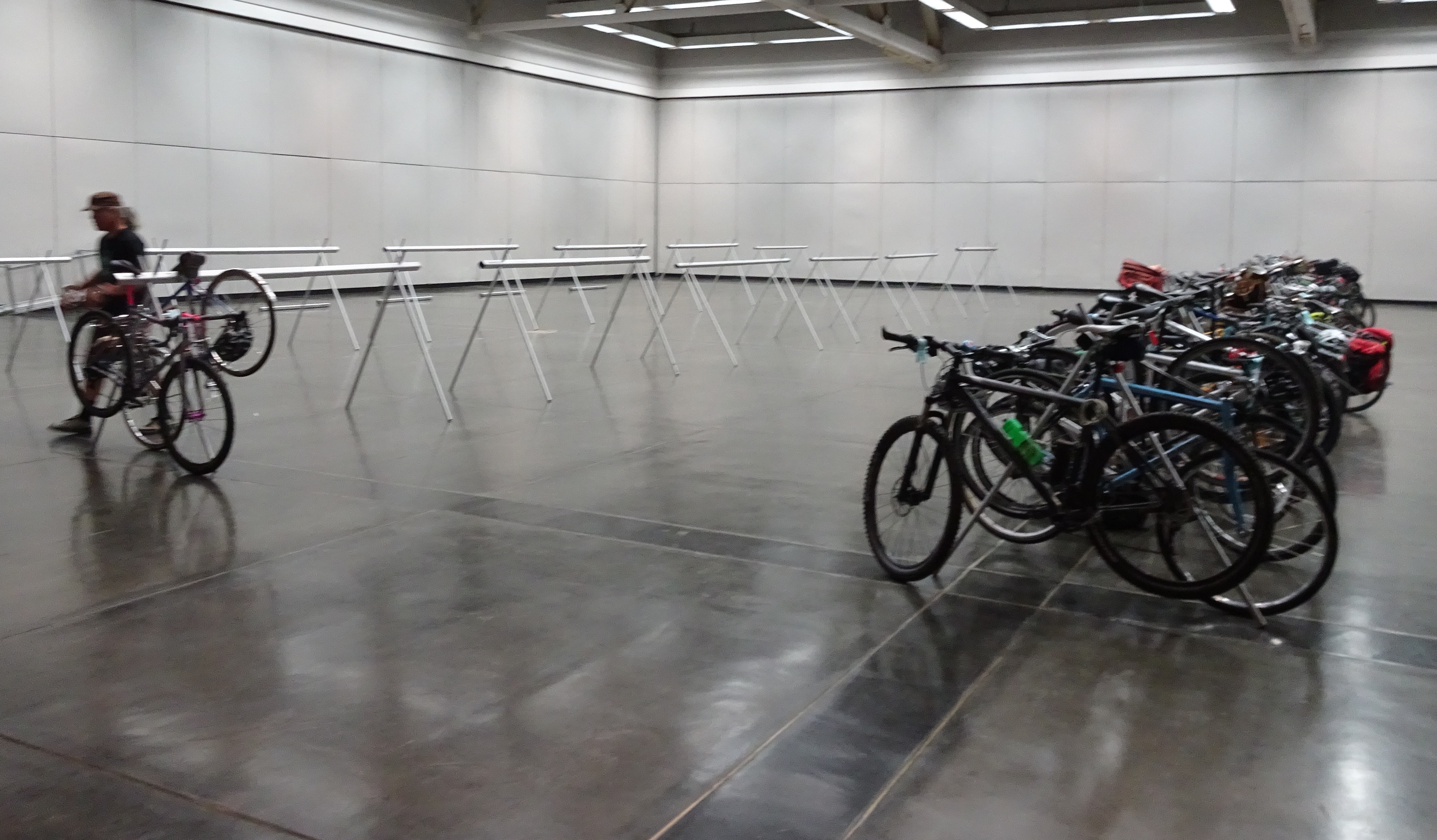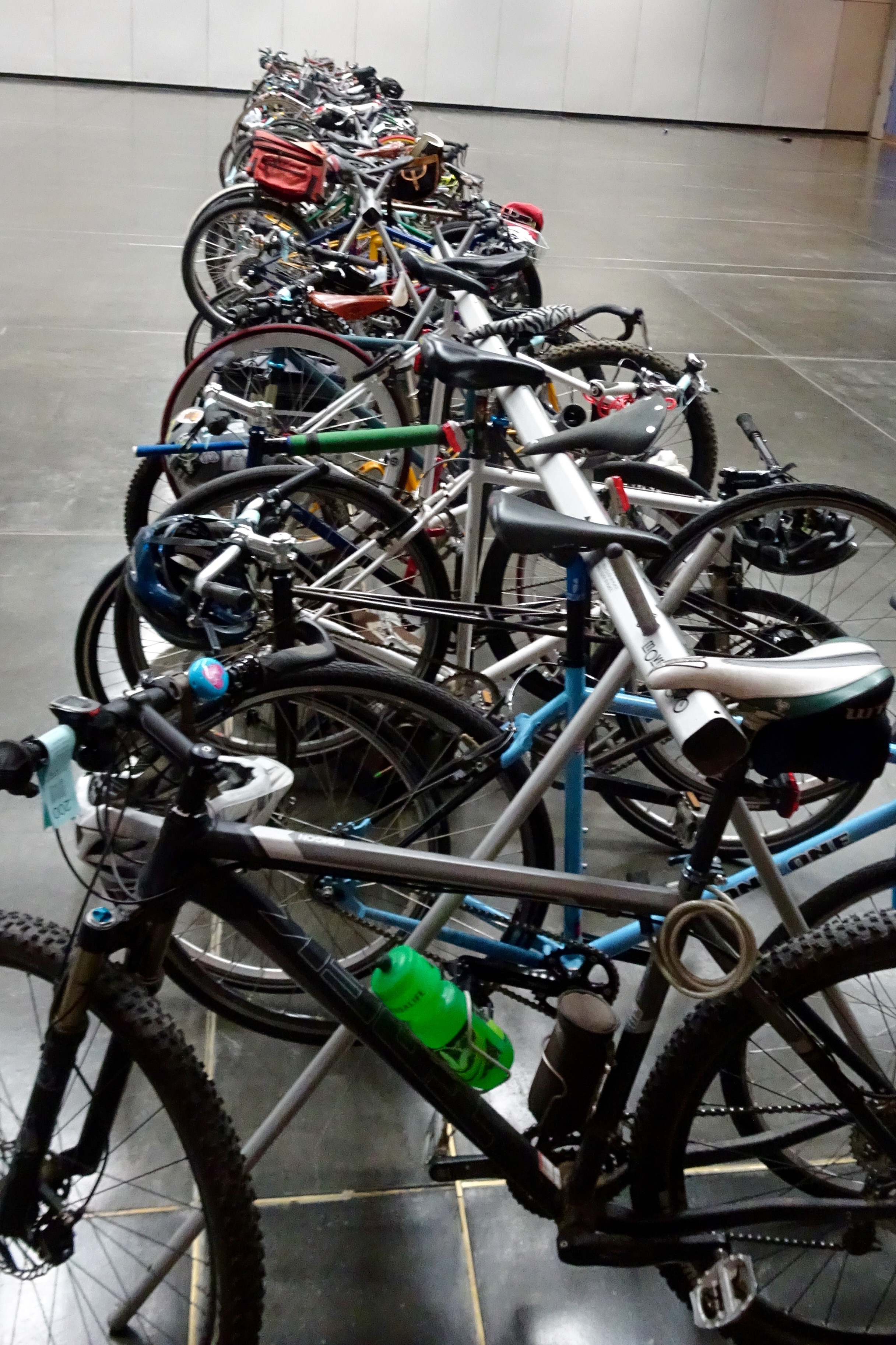 Bicycles were checked in, tagged and set on racks in numerical order.