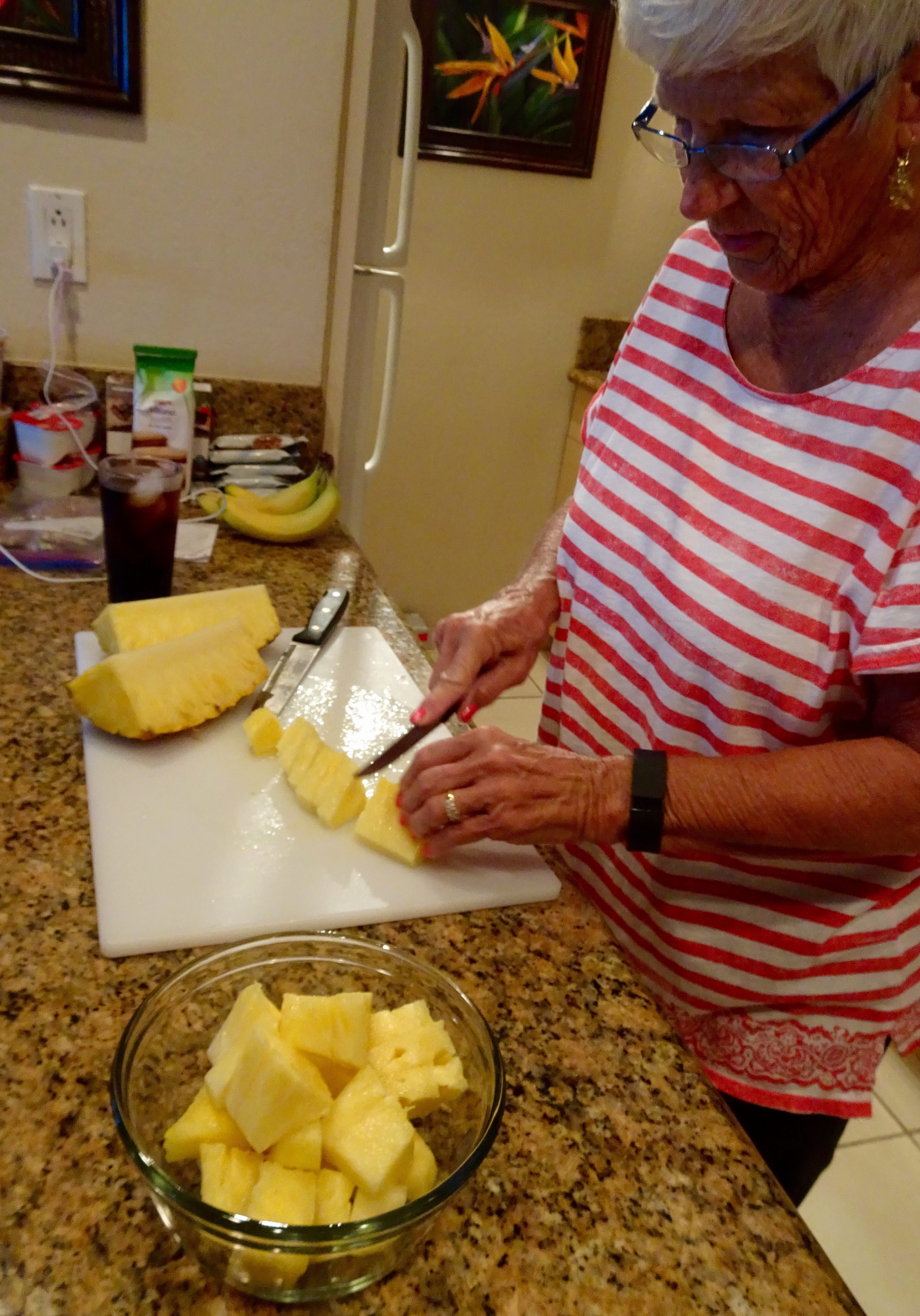 Fresh pineapple for breakfast, expertly prepared by Phyl. Maui Gold pineapples are so delicious!