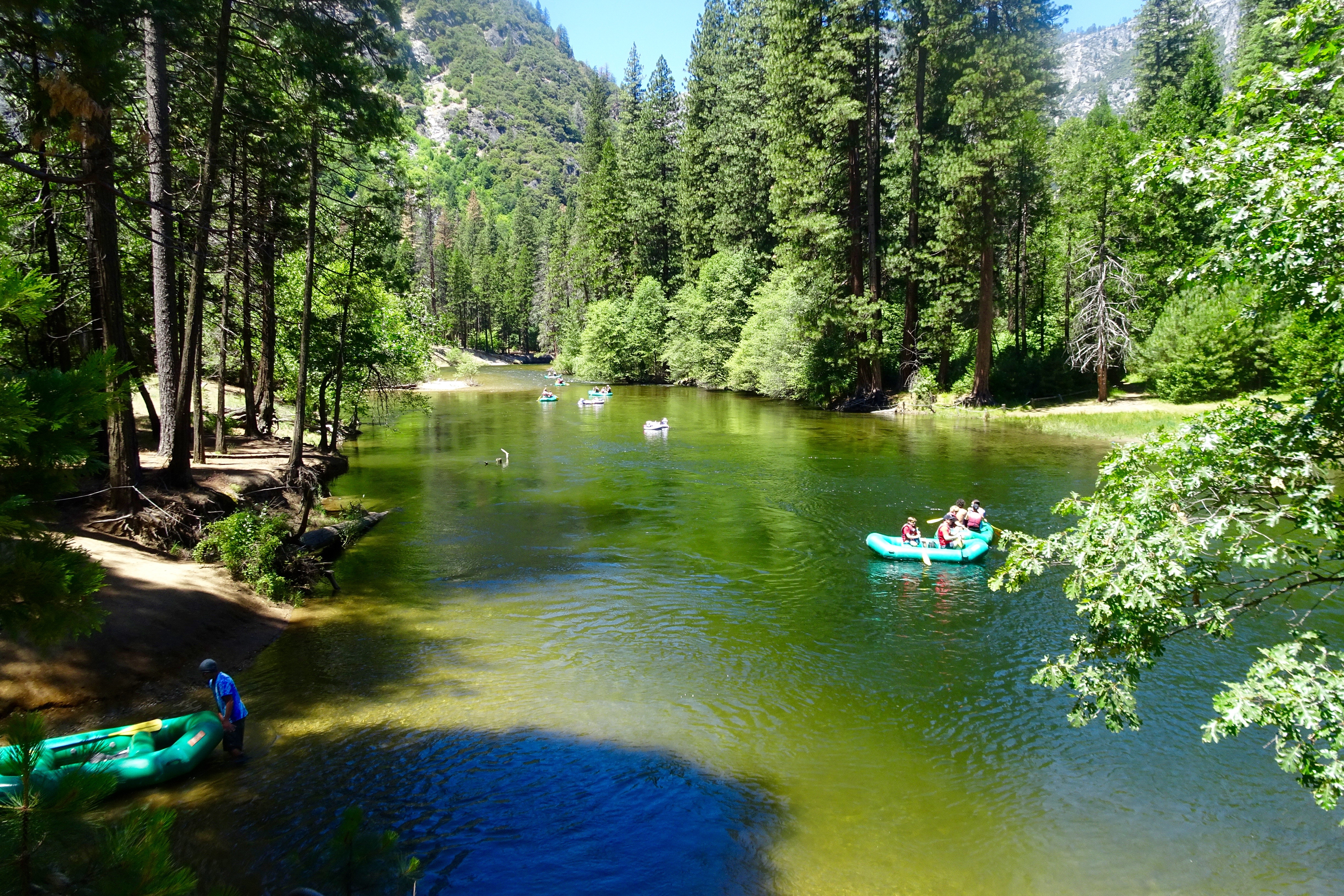 Rafters are assisted into the slow-moving river by a park employee – it was clear (and funny) that some rafters had never put an oar in water.