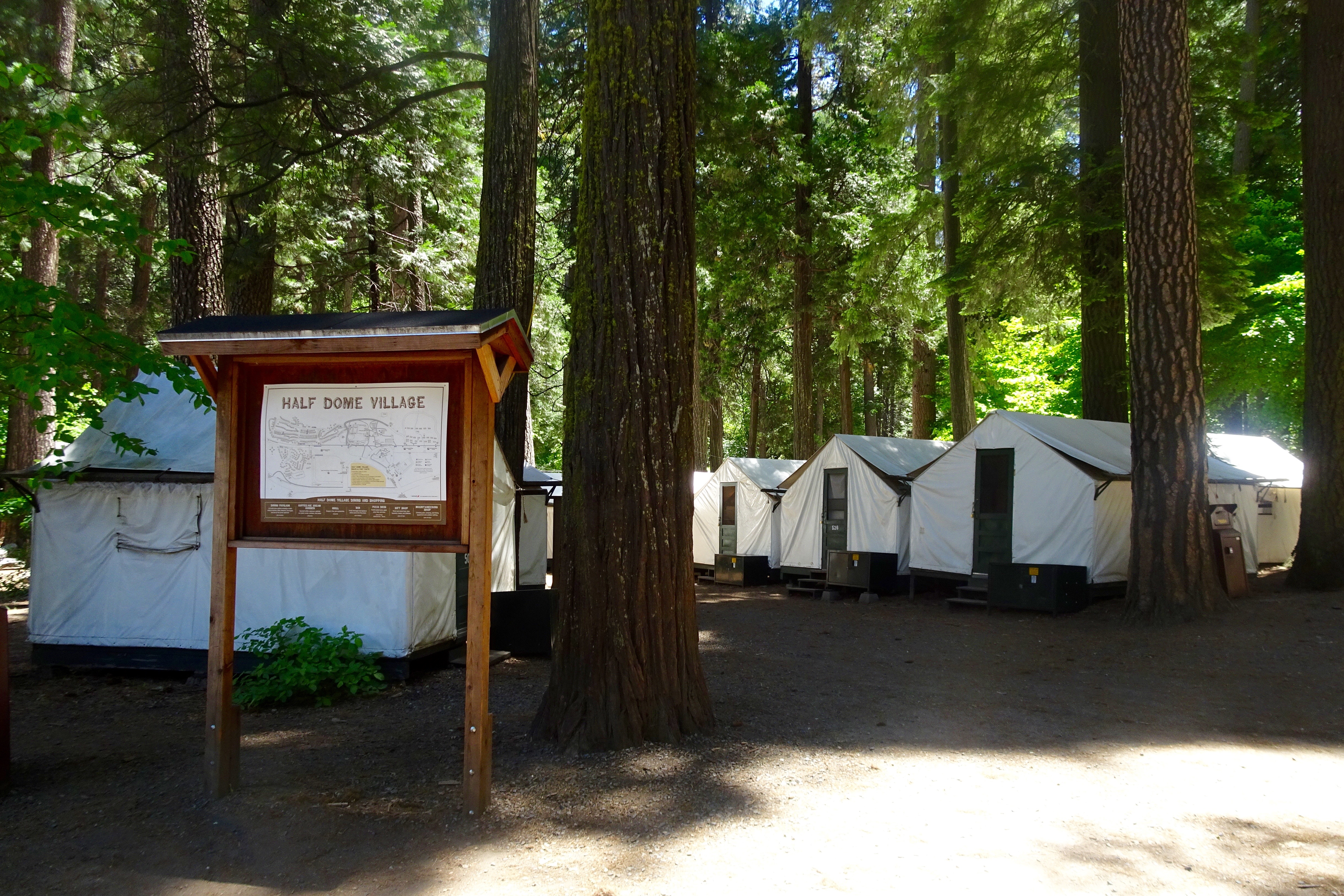 More riding, to Half Dome Village, which used to be called Curry Village. There are more than 400 tent cabins here – they look HOT to me.
