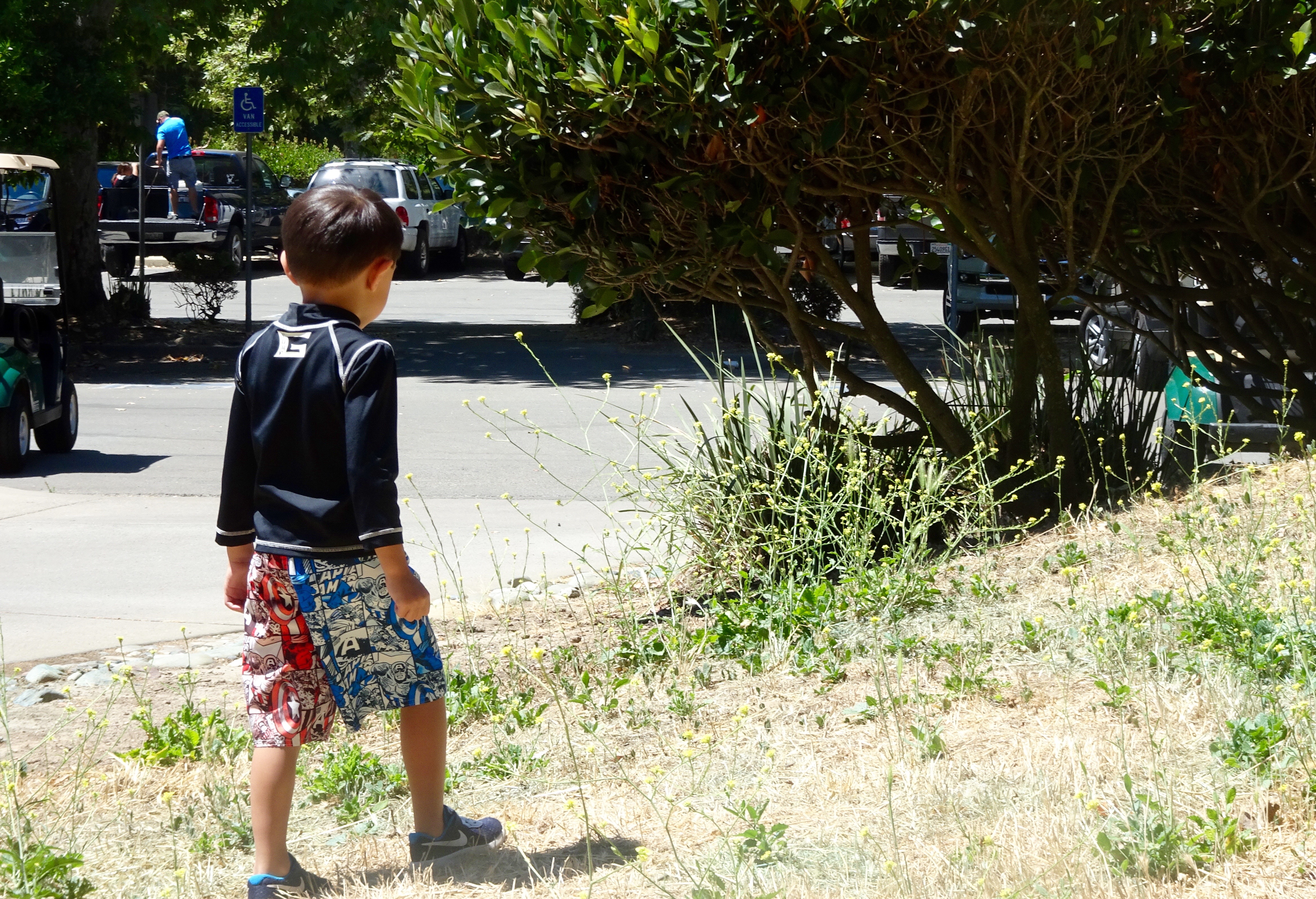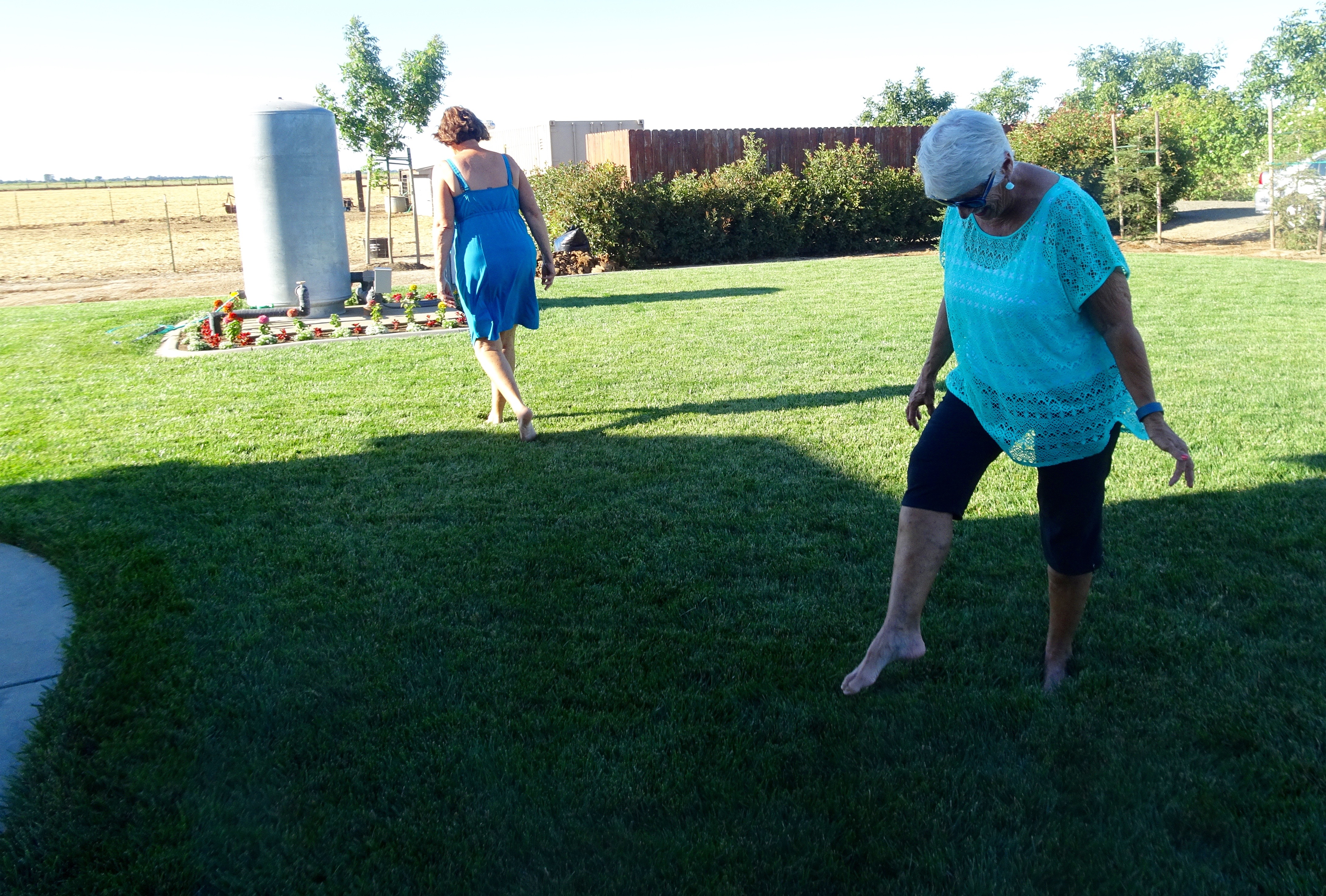 Checking out Justin’s lush and perfect lawn. Phyl, “I sink in up to my ankle!”