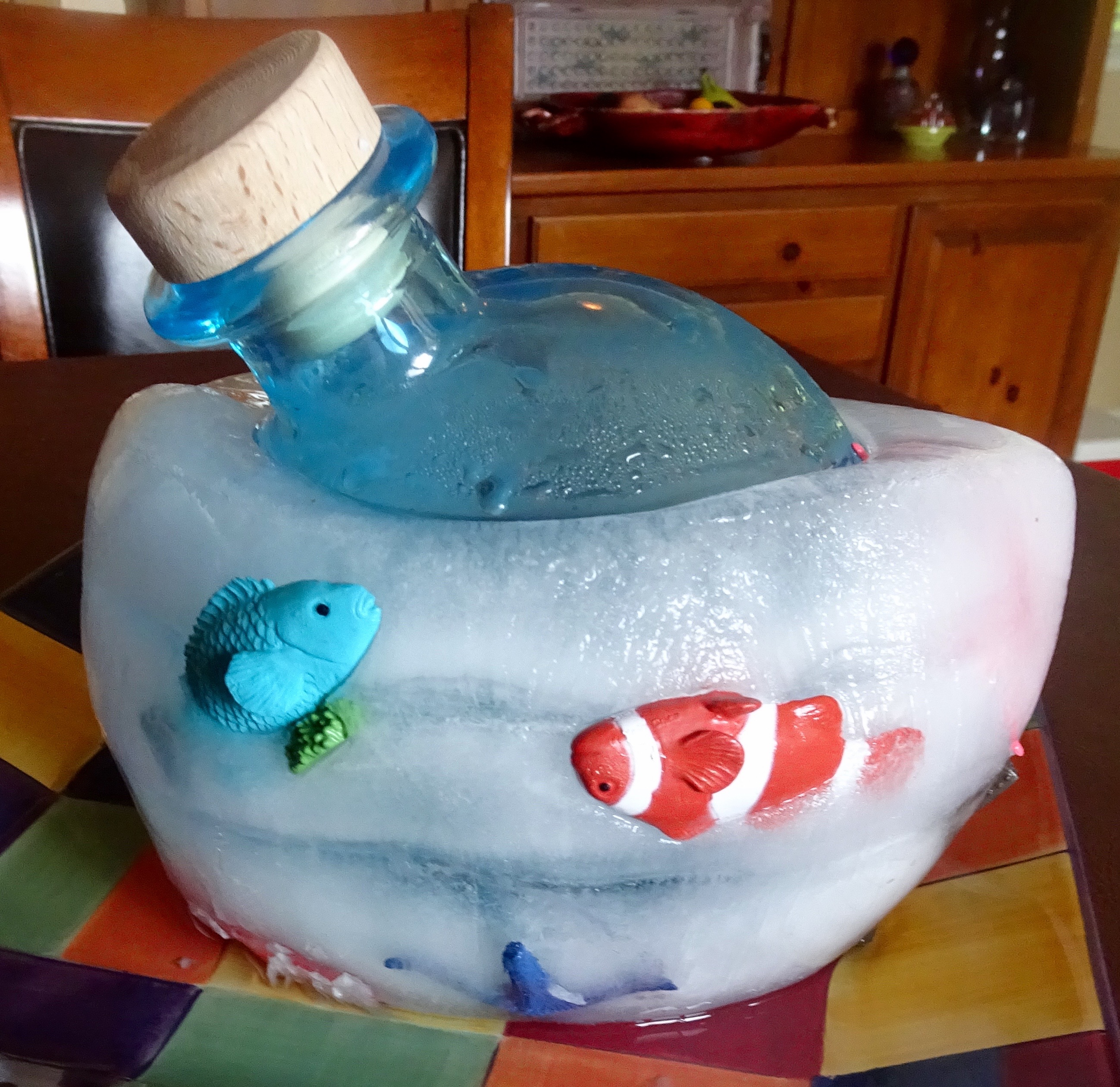 My experiment, frozen vodka using Ocean Vodka – organic and made in Kula Maui. Next time, I’ll make sure all the fish are right-side up!