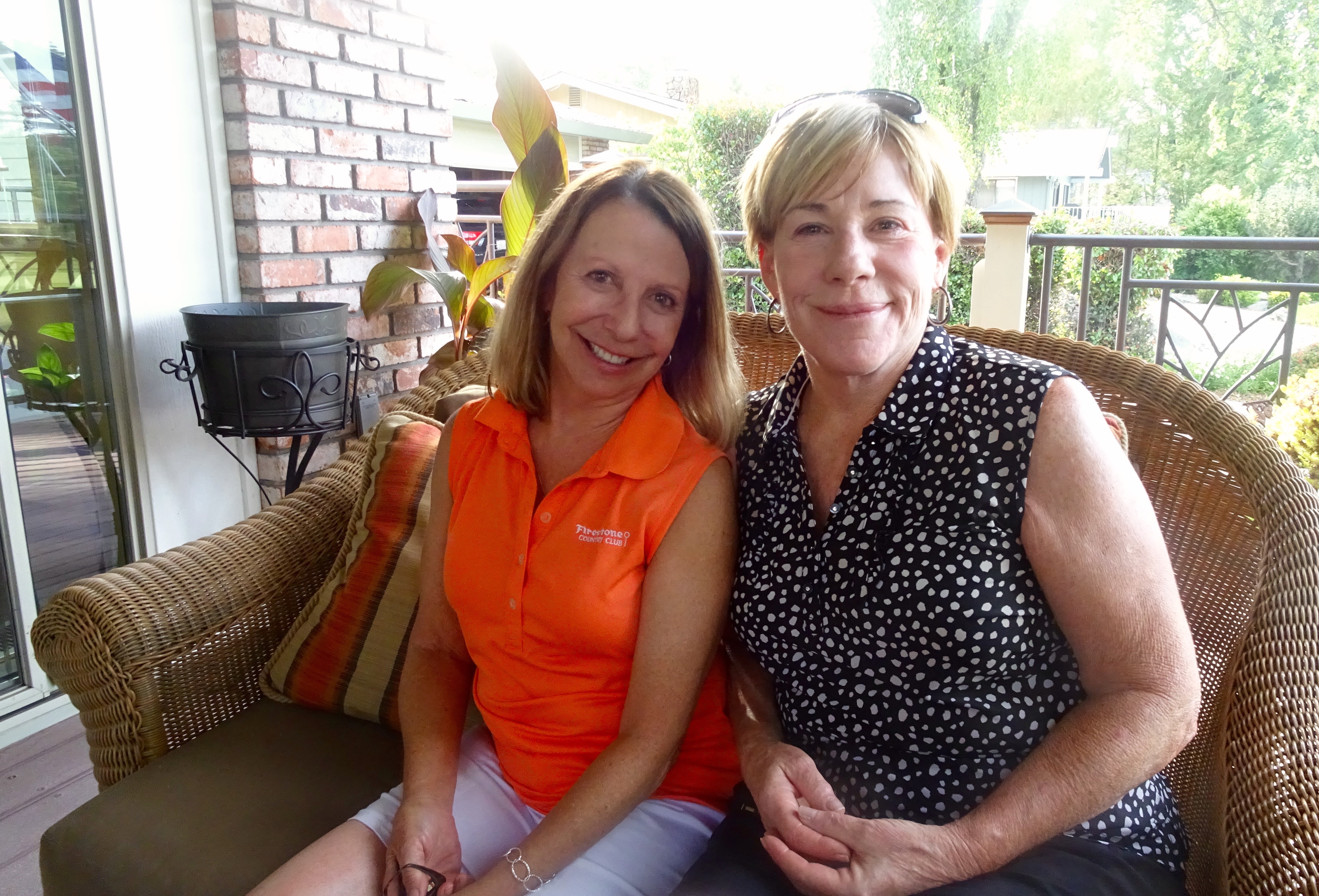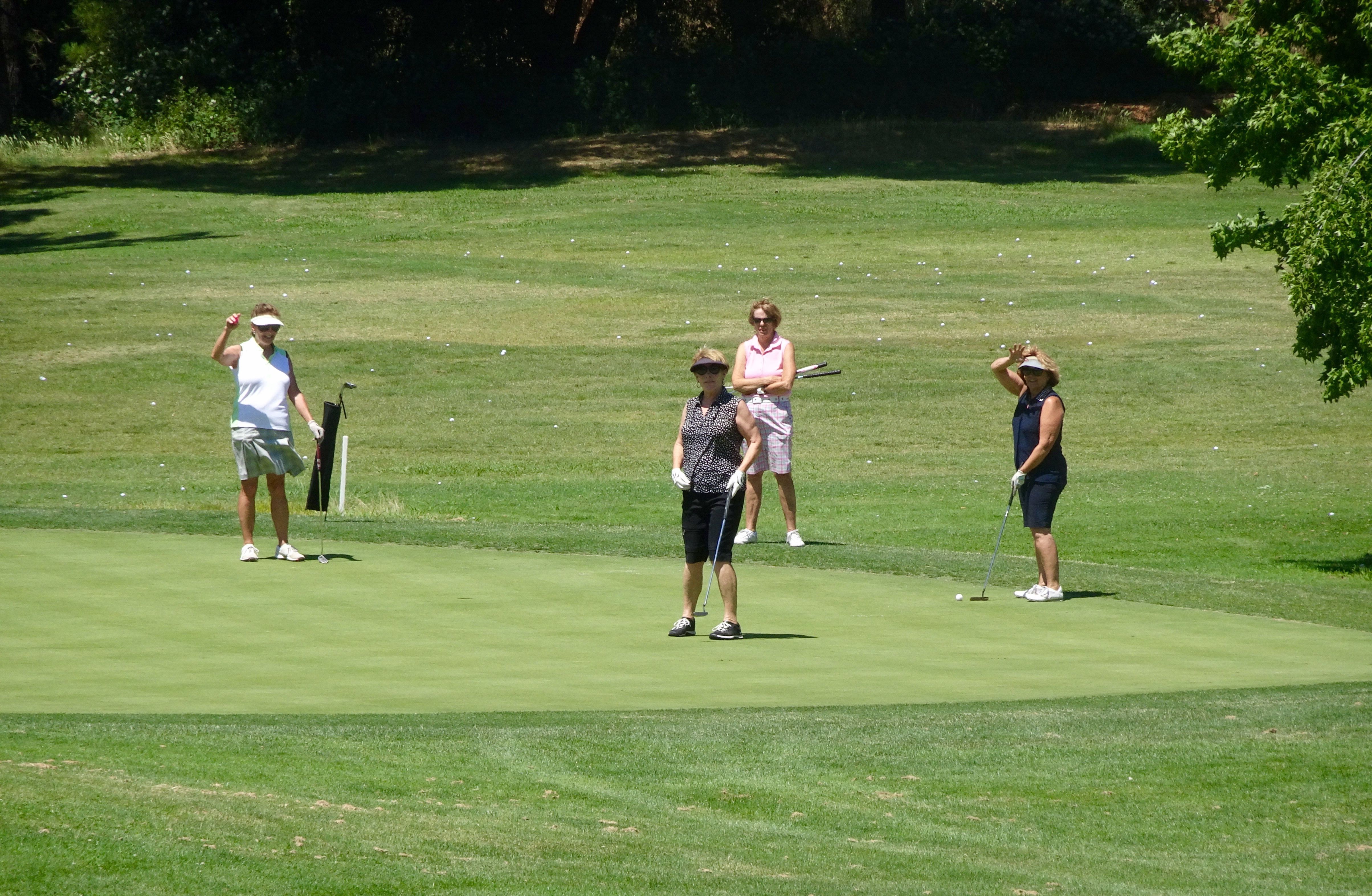 Hole #1 for the Lake Wildwood golf course is across the street. Maria spotted Janice Pucci’s group on the green.