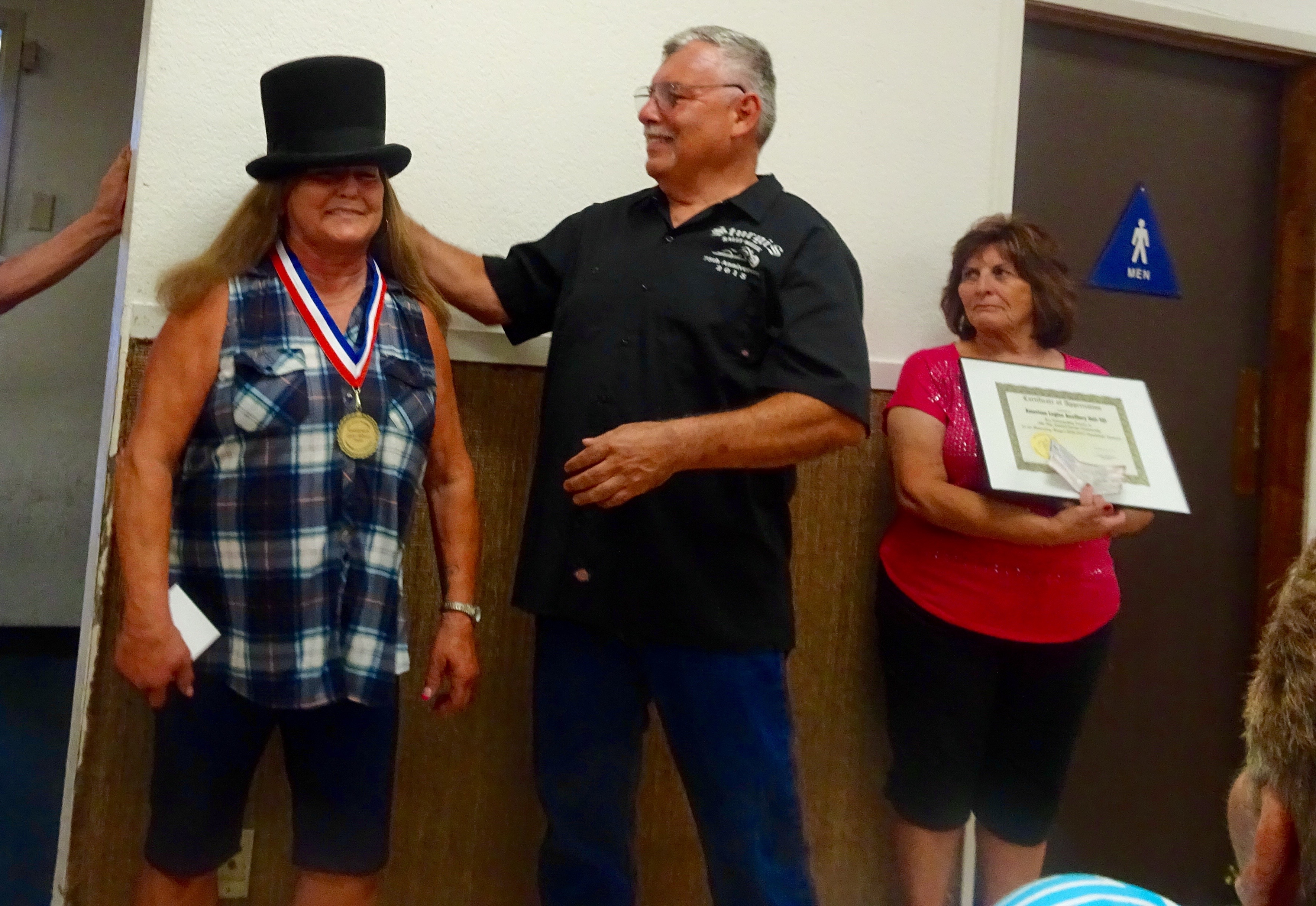 The winner just received the symbolic top hat from last year’s H-Mayor; at right is the candidate from the Moose Lodge – and I have no idea who any of them are because I don’t hang out at either the Legion or the Moose, which are essentially two of Rio Linda’s bars.