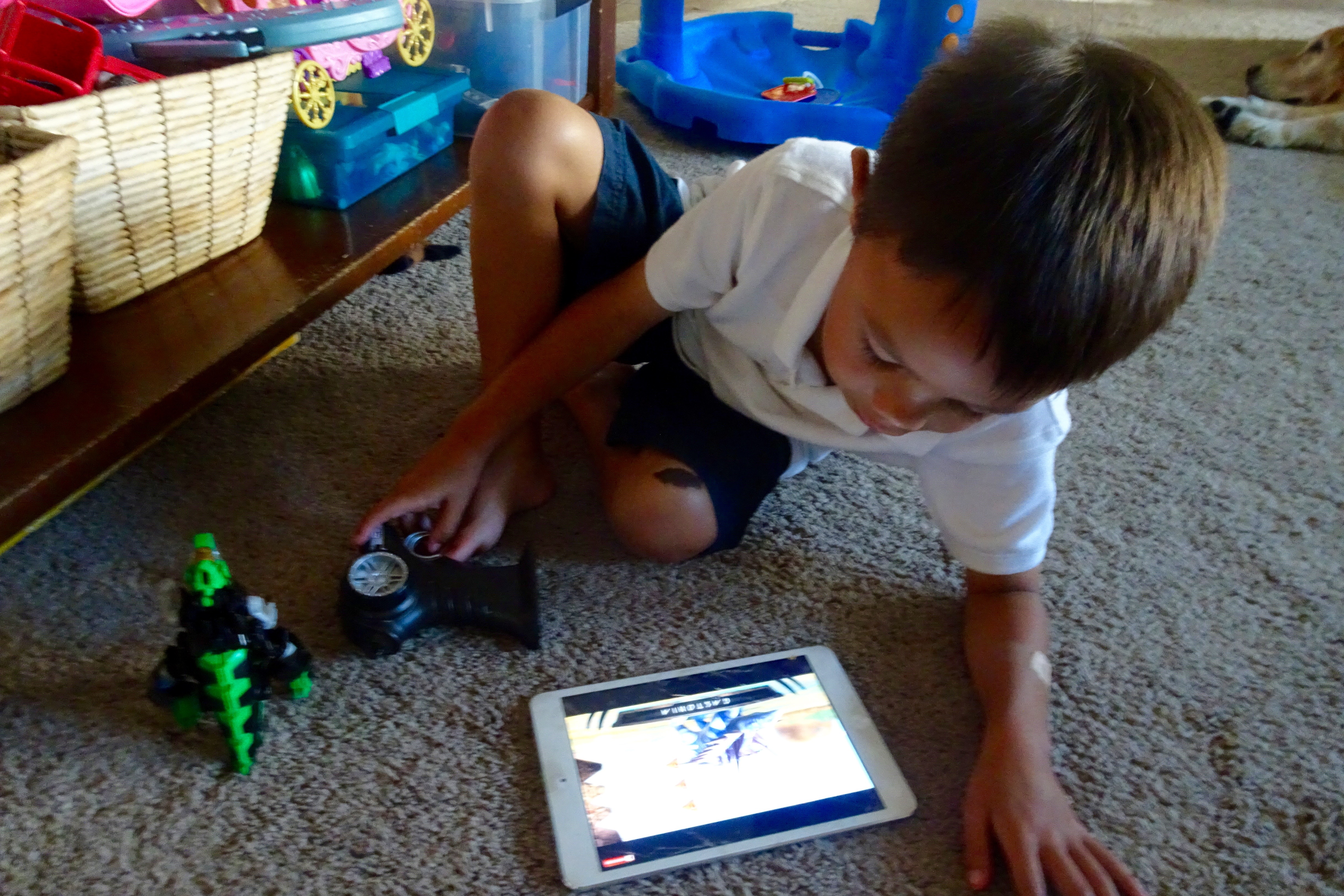 Avery is very interested in dinosaurs and watches dinosaur battles on the iPad a lot.