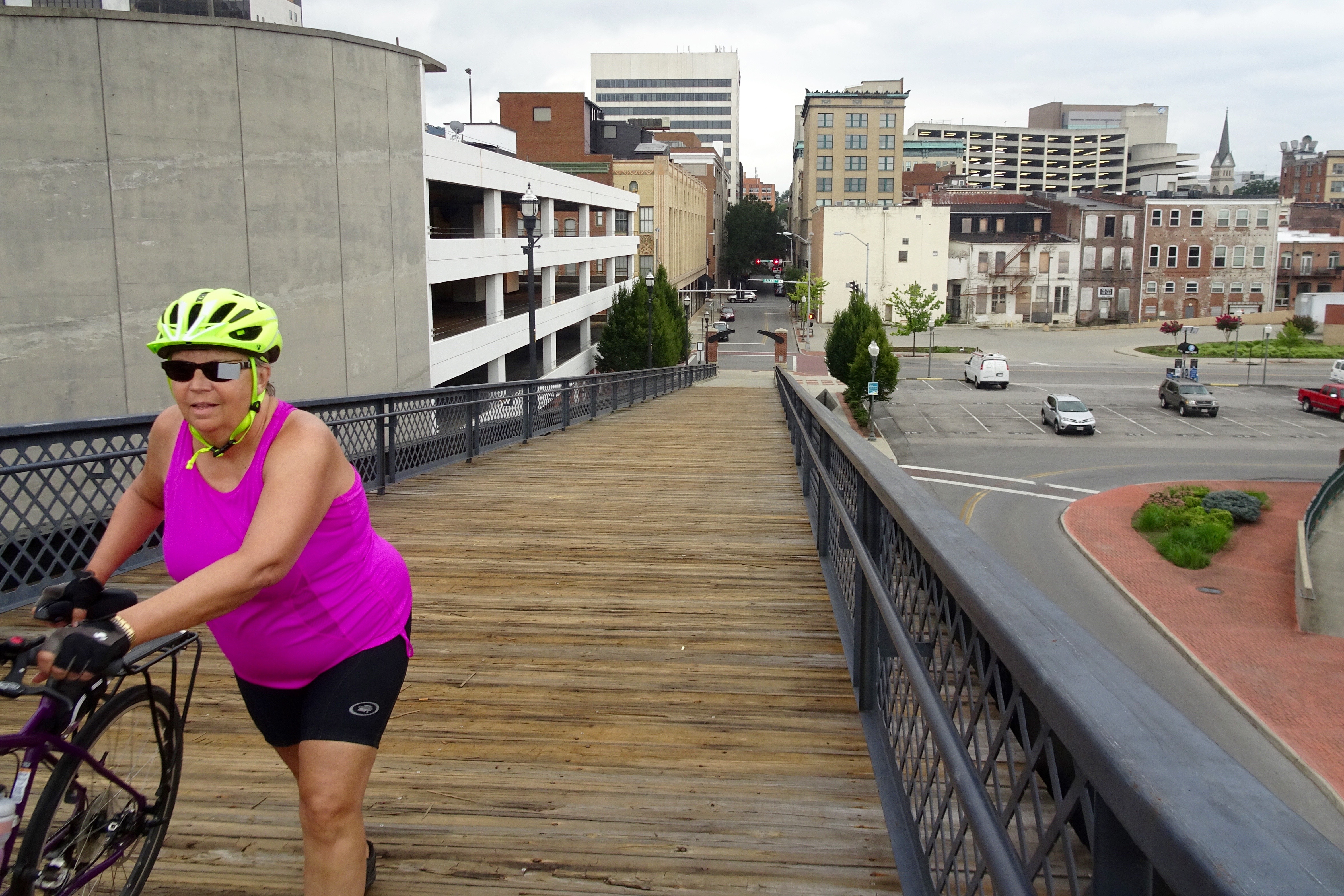 We extended the Airport Ride to include part of the Greenway bike paths. After coffee at Mill Mountain Coffee & Tea in downtown, we walked up the very steep Martin Luther King Bridge