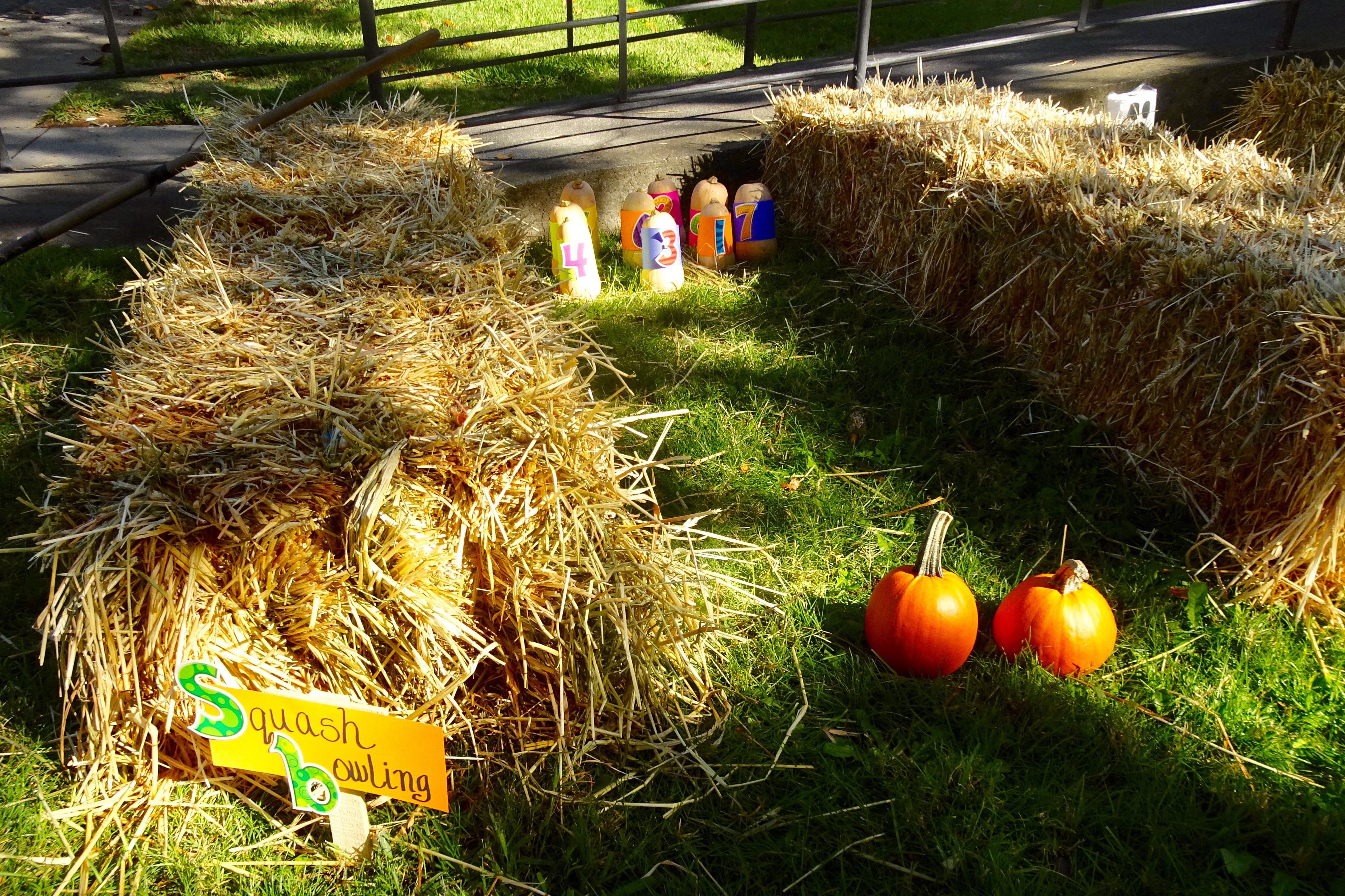 at Calvary Lutheran Church. For the past couple of weeks, in between everything else, I’ve been preparing a few outdoor activities for the Harvest Festival. Nine numbered butternut squash that did not like to stand upright and bowling pumpkins with handles instead of finger holes.