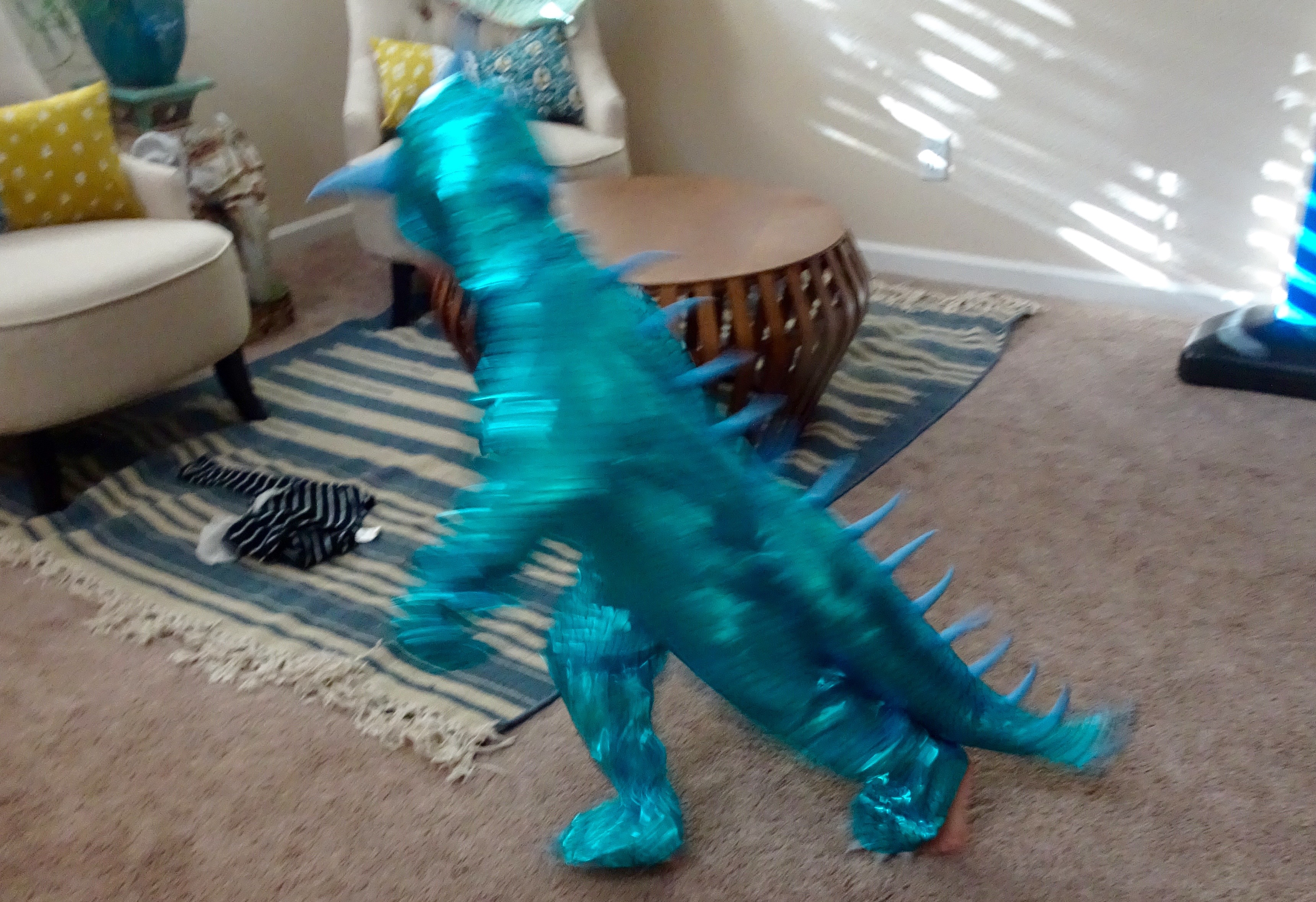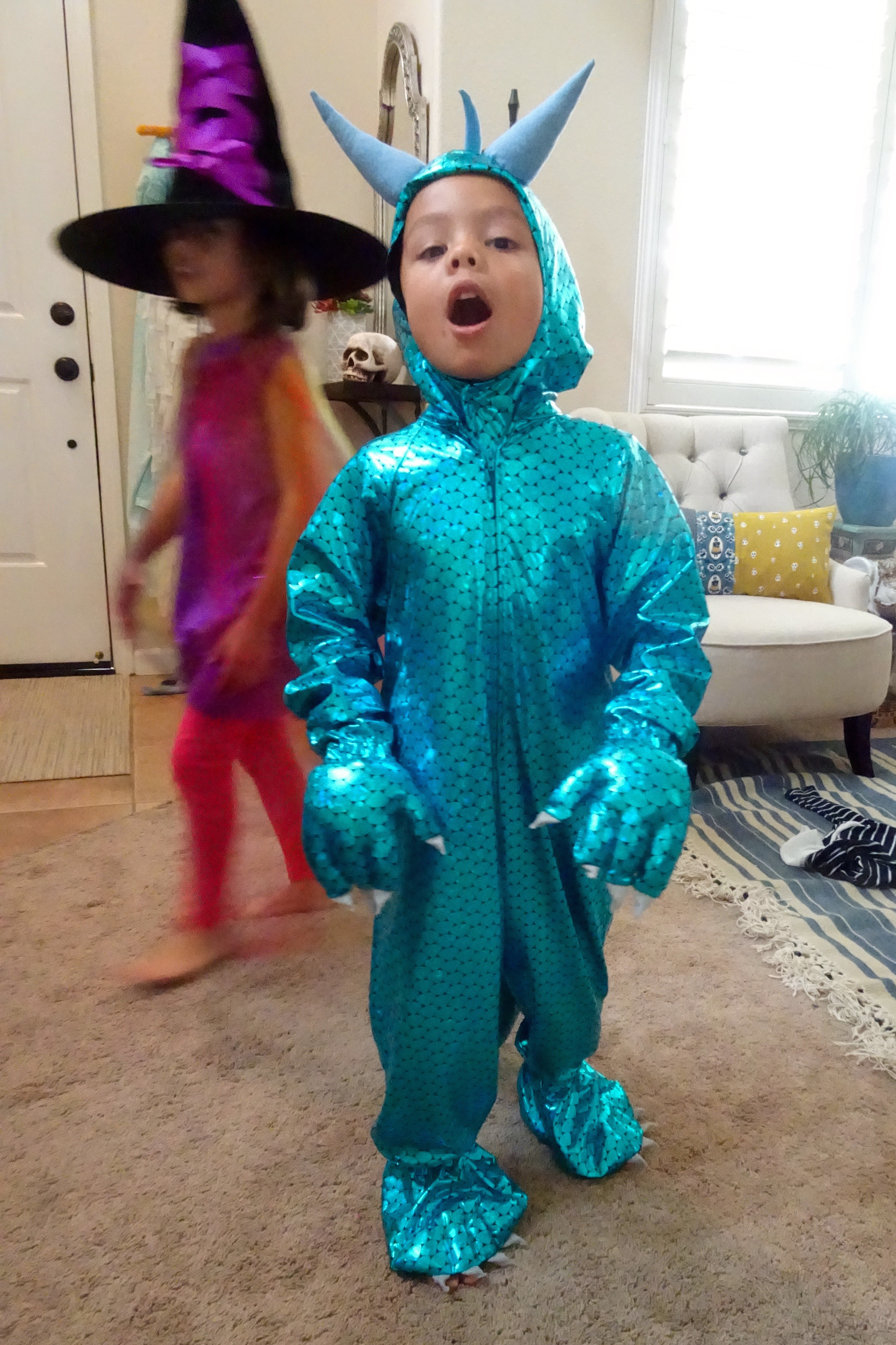 Delivered! Avery wanted to be a specific dinosaur – a carnotaurus.