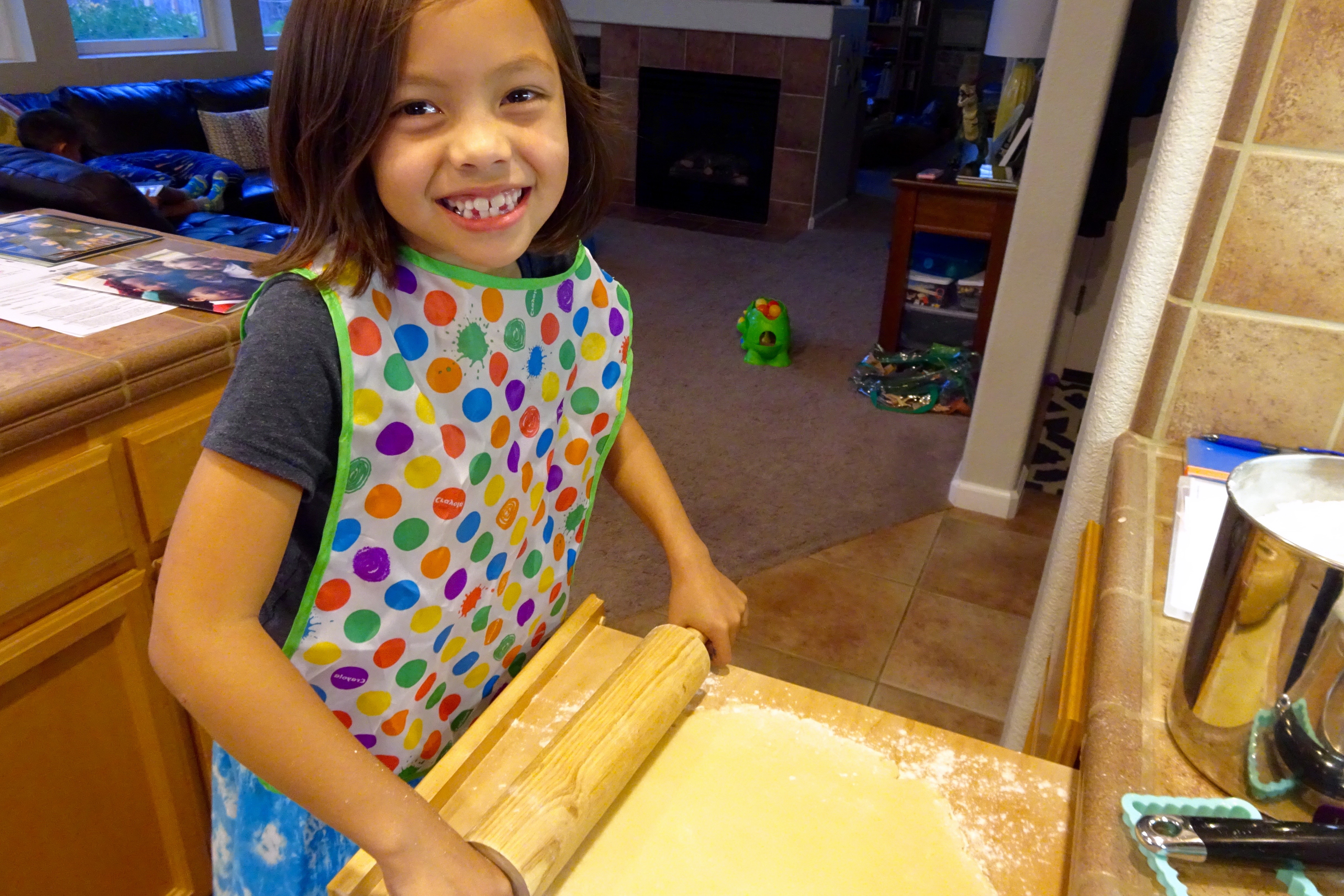 Avery had been absorbed in the iPad, but did show up when it was time to frost and decorate the cookies.