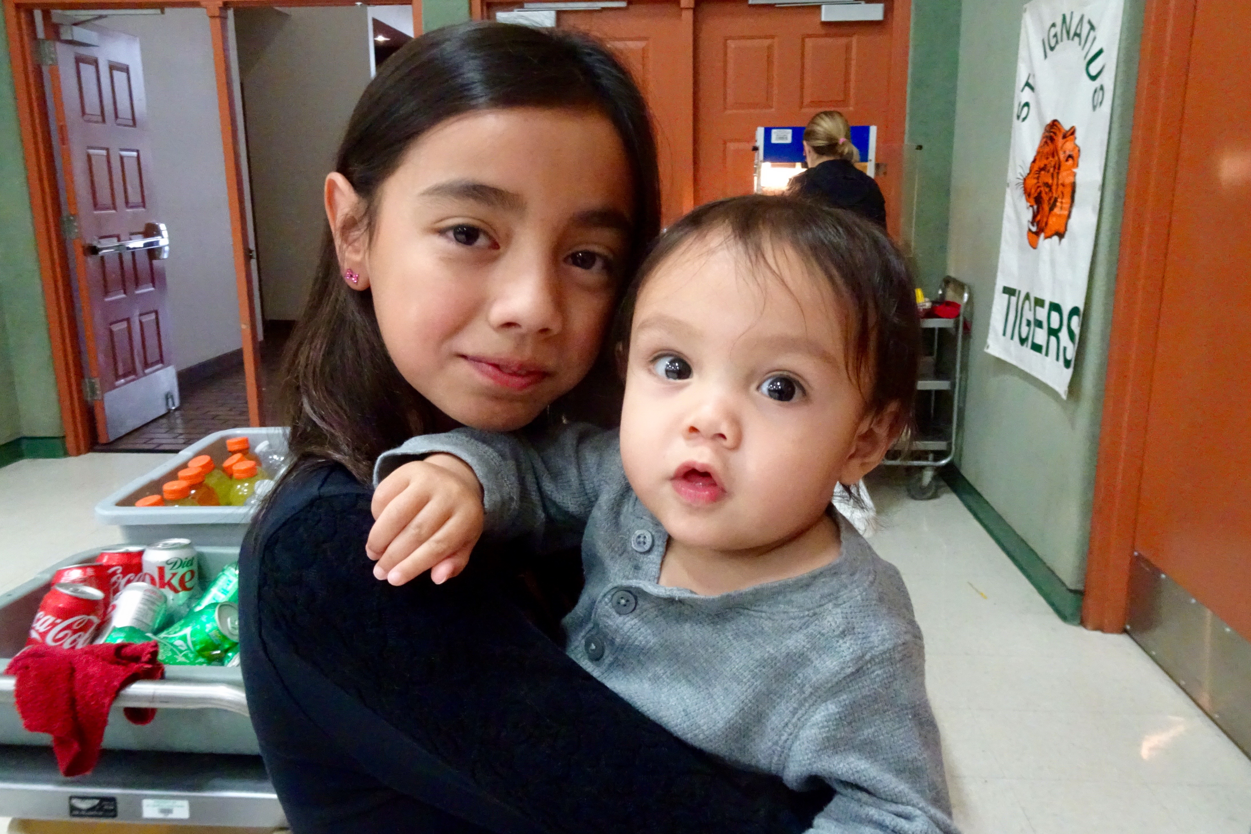 Cousin Lauren helped with Carson while Thais worked the snack bar.