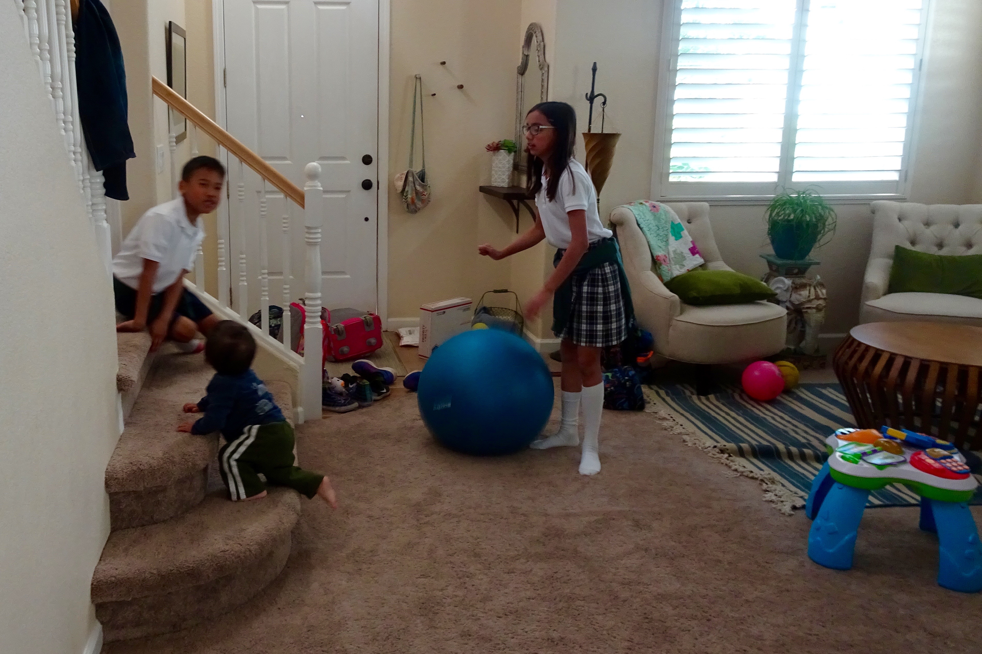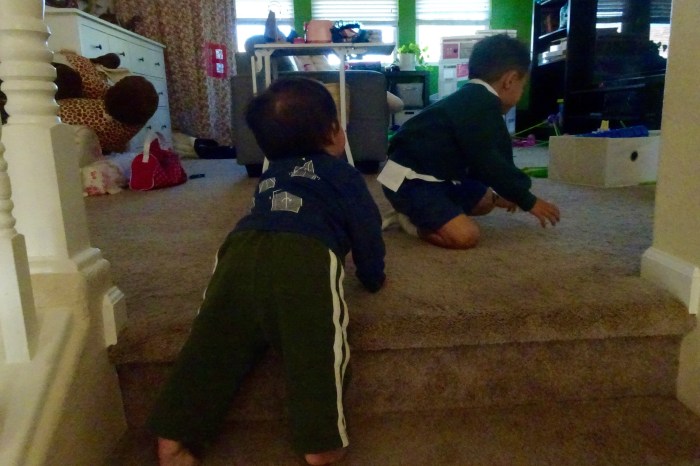 I hover when Carson goes up the stairs, Avery also helped.