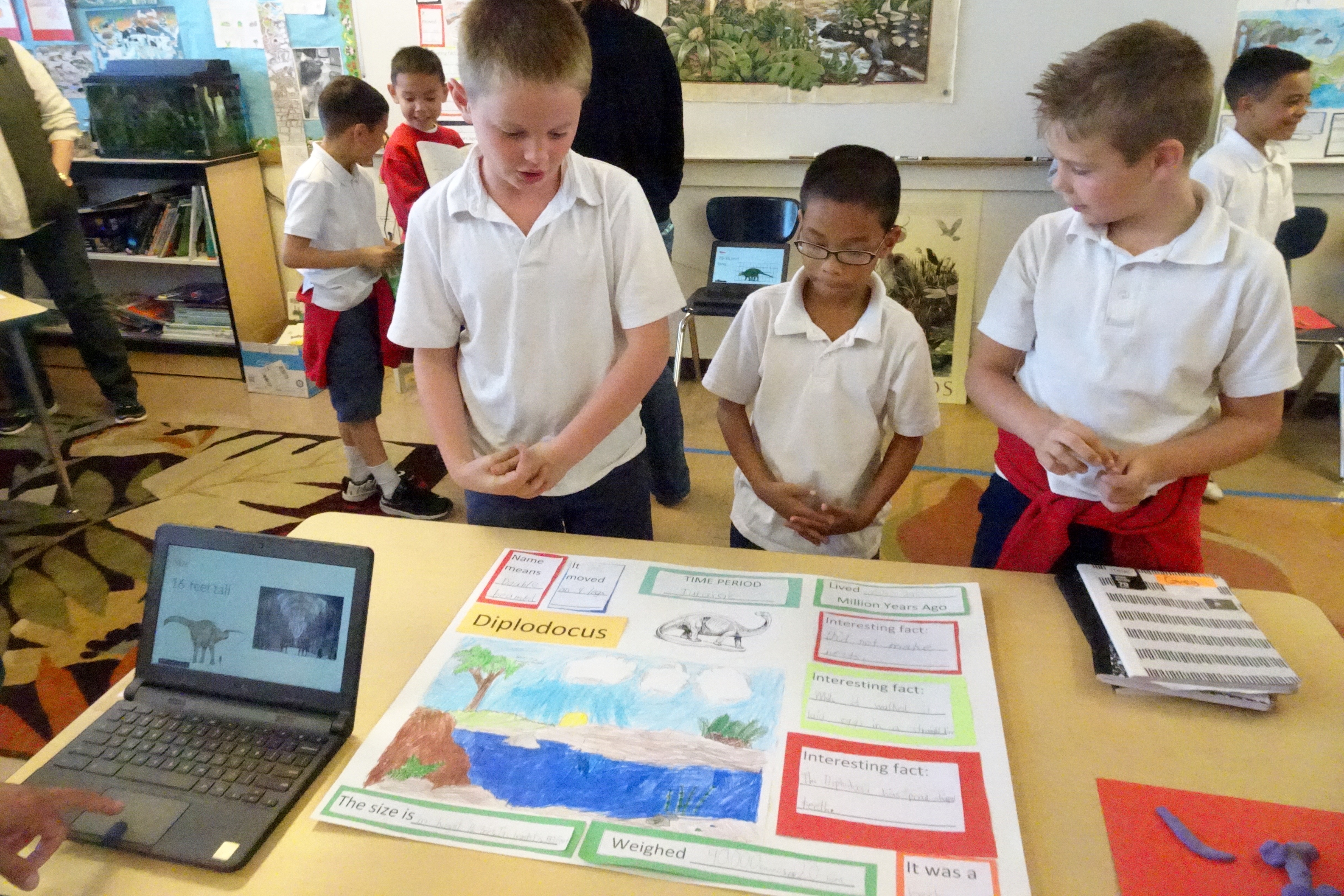 I picked up Avery from the after-school program – dinosaurs are an area of expertise for him. After we watched Sophia, Olivia, and Zada’s presentation, Avery motioned me down to his level and whispered in my ear, “Grandma, take pictures of everything.” No problem.