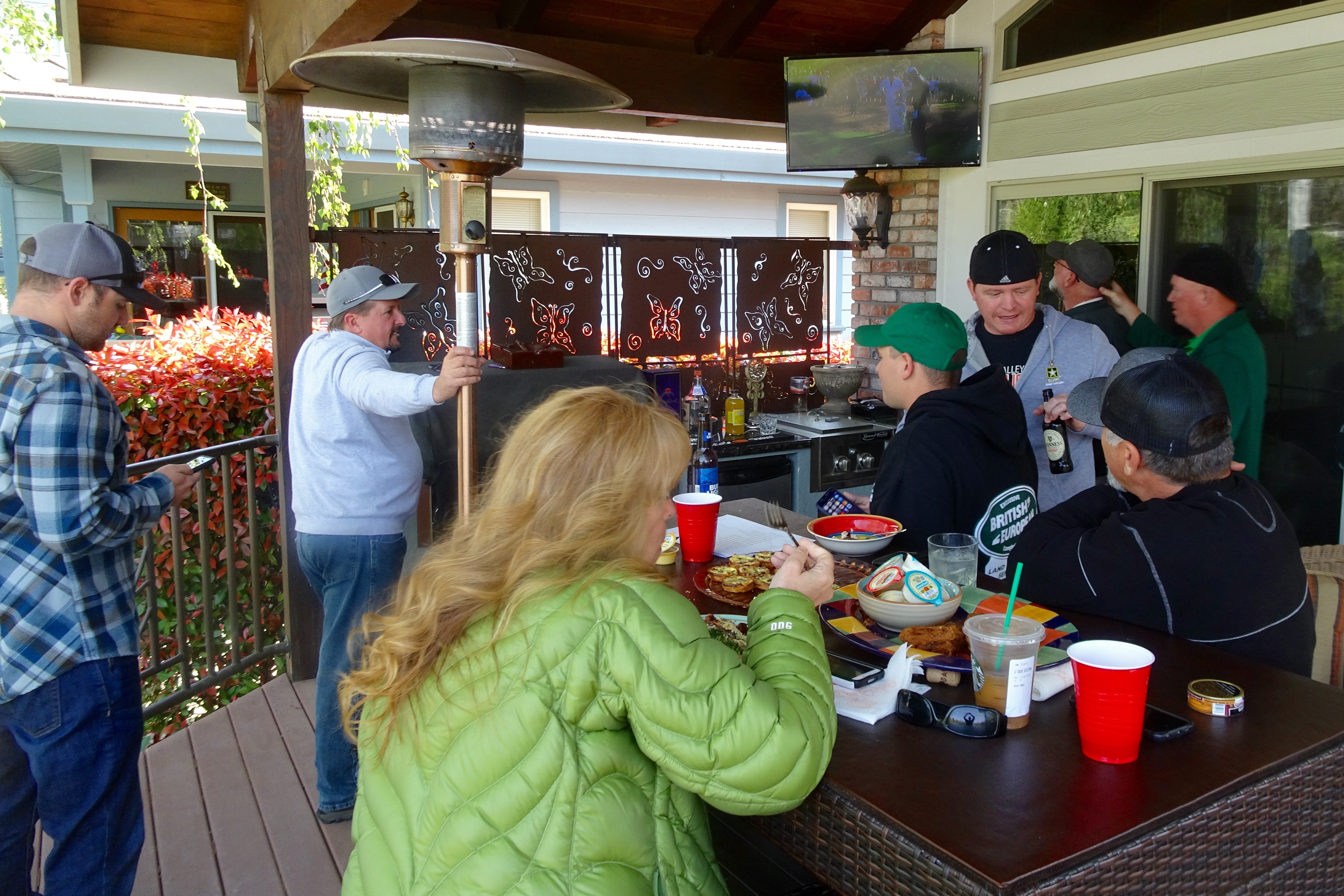 I snuck out of church early to drive up to Penn Valley to Maria and Tim’s house. Eyes generally on the final round of the golf tournament – there was $$$ on the line!