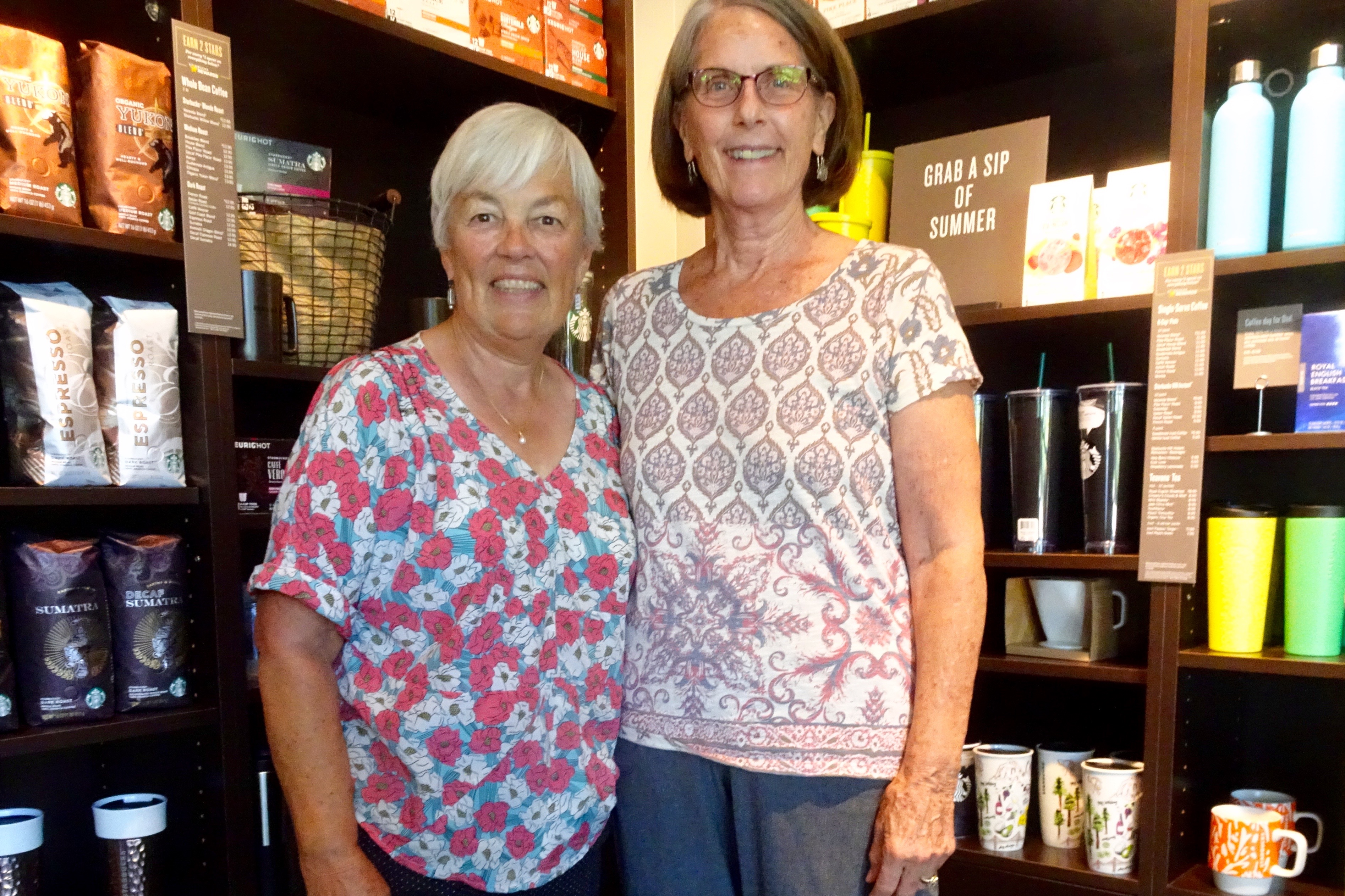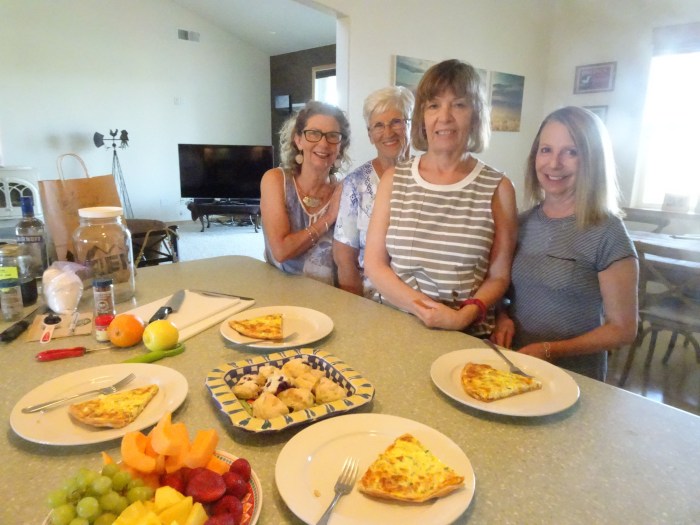 Because our usual photographer (Merrilyn’s husband Bob) wasn’t back from his errands in time, we took multiple pictures of us in pairs. I will have to show Merrilyn and Phyl which button to press to take a picture because this is the only picture that was on my camera (lol):