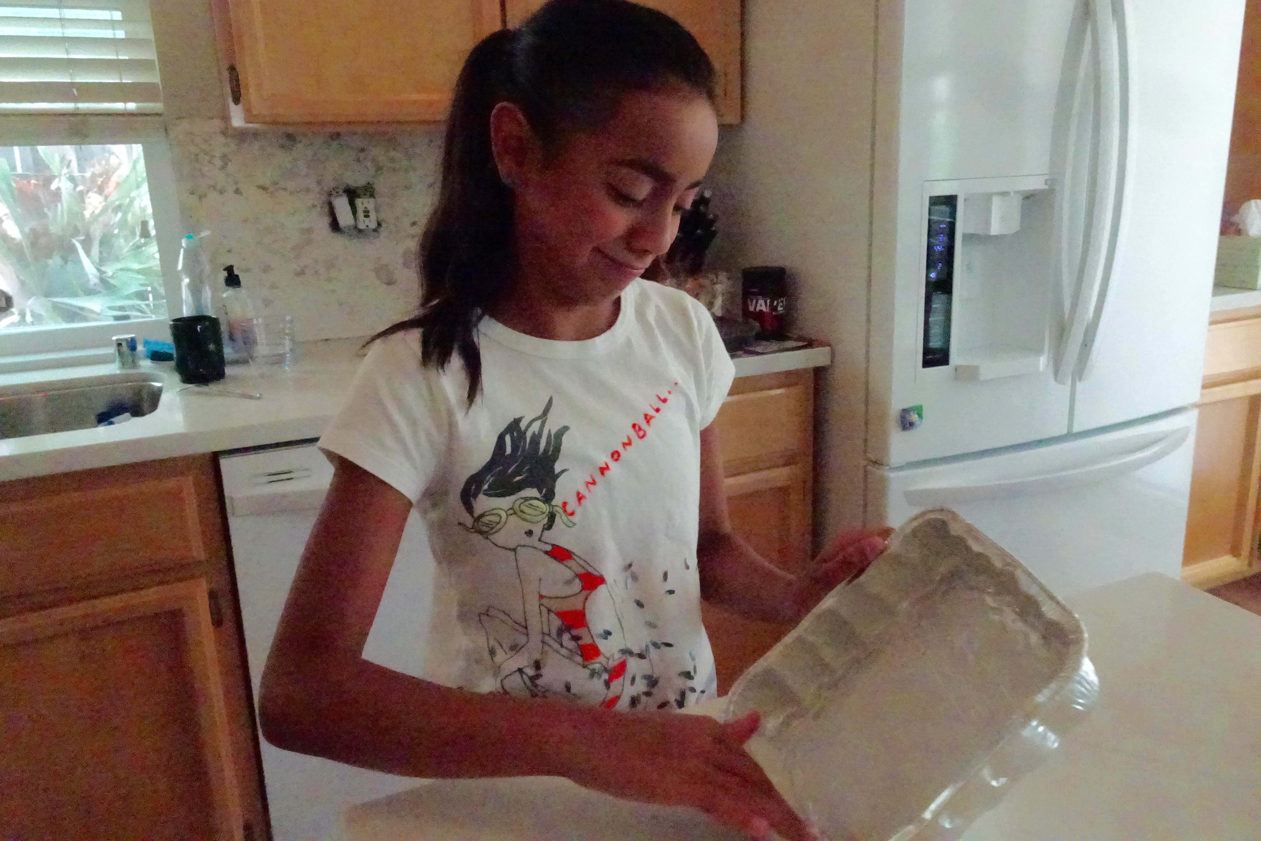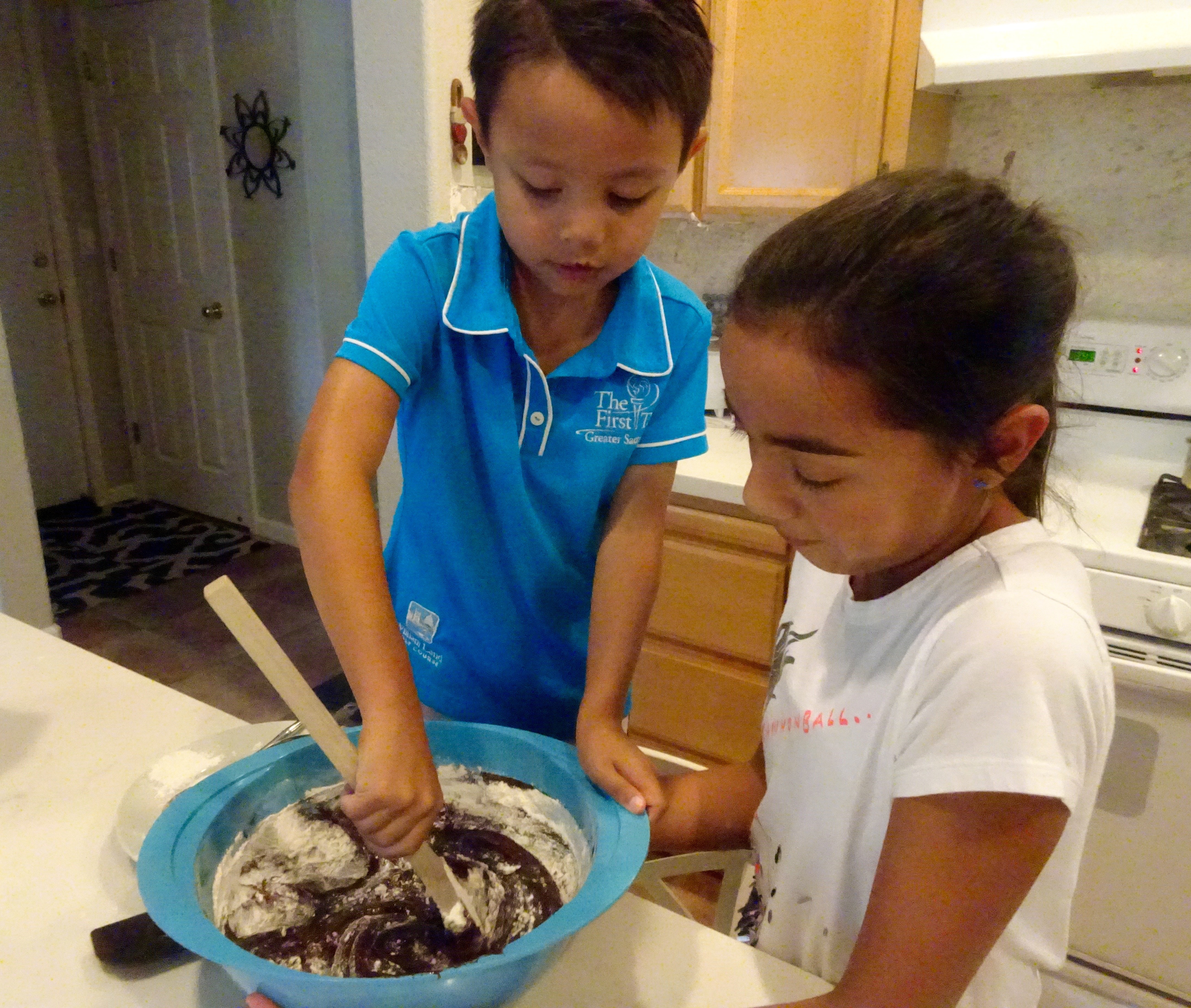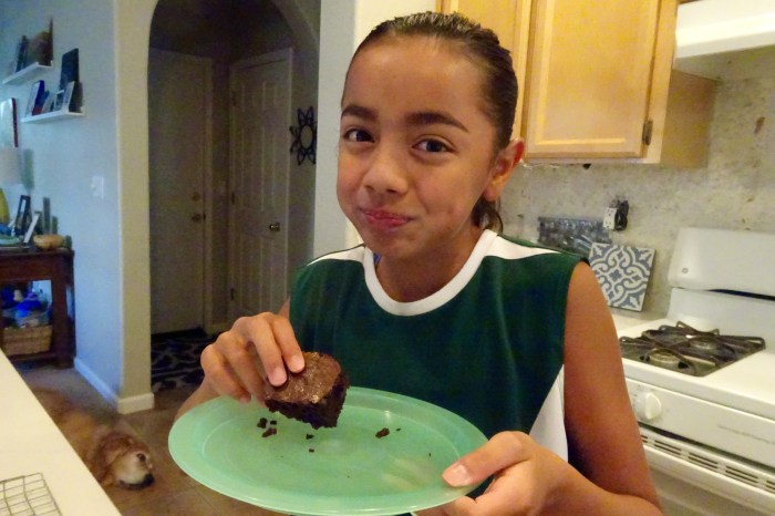 Sophia is away at camp this week. Avery chose Ultra Chocolately Brownies to make today. Lauren really didn’t want to butter the pan with her fingers, but she persevered.