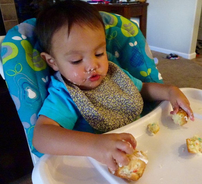 Later, Carson was limited to two cupcakes. He dove in face first for the frosting, the cake part was better for mooshing.