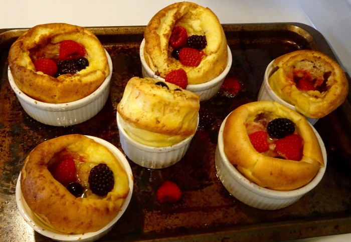 I poured the batter into hot buttered ramekins and got them into the oven.