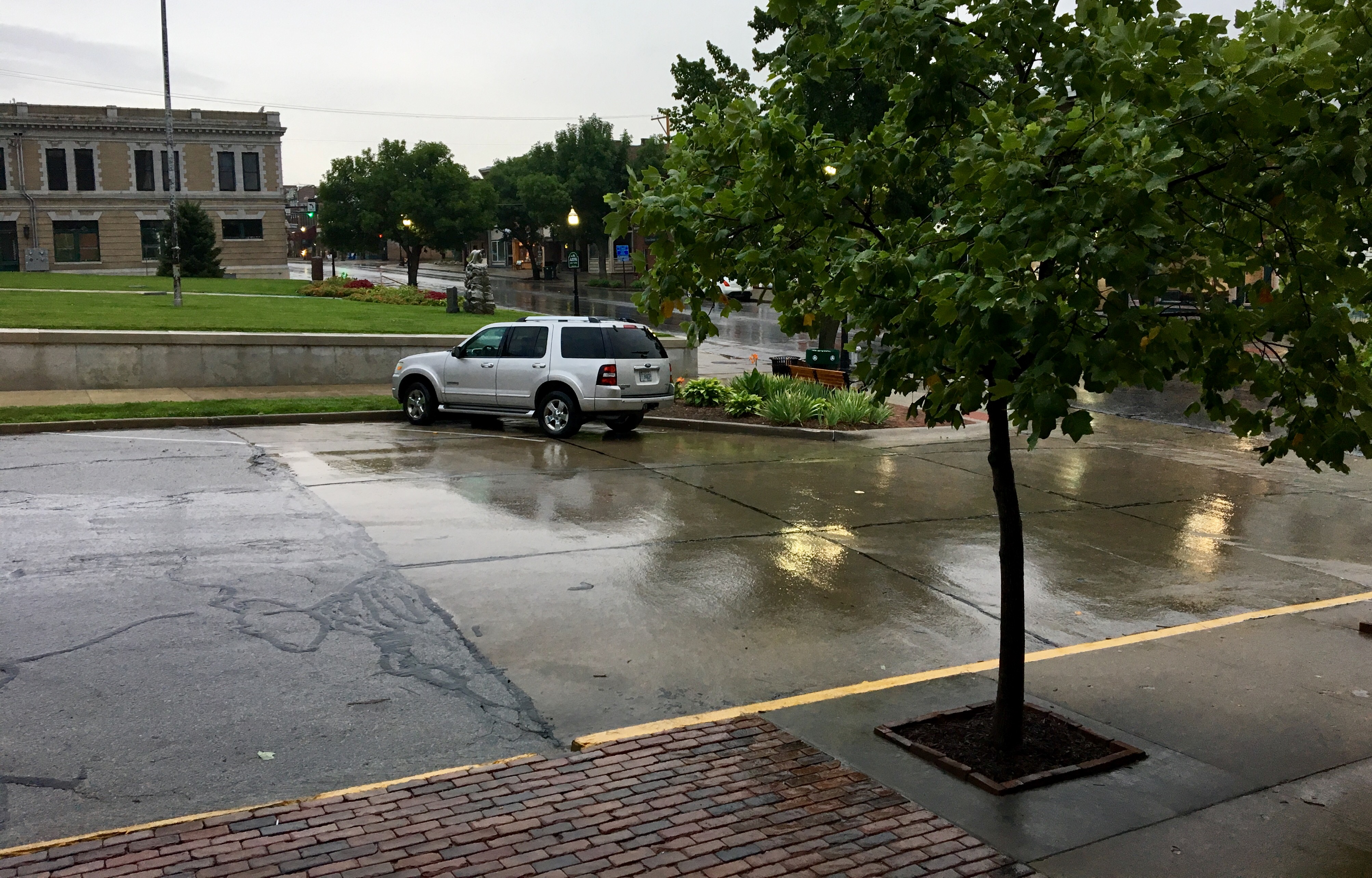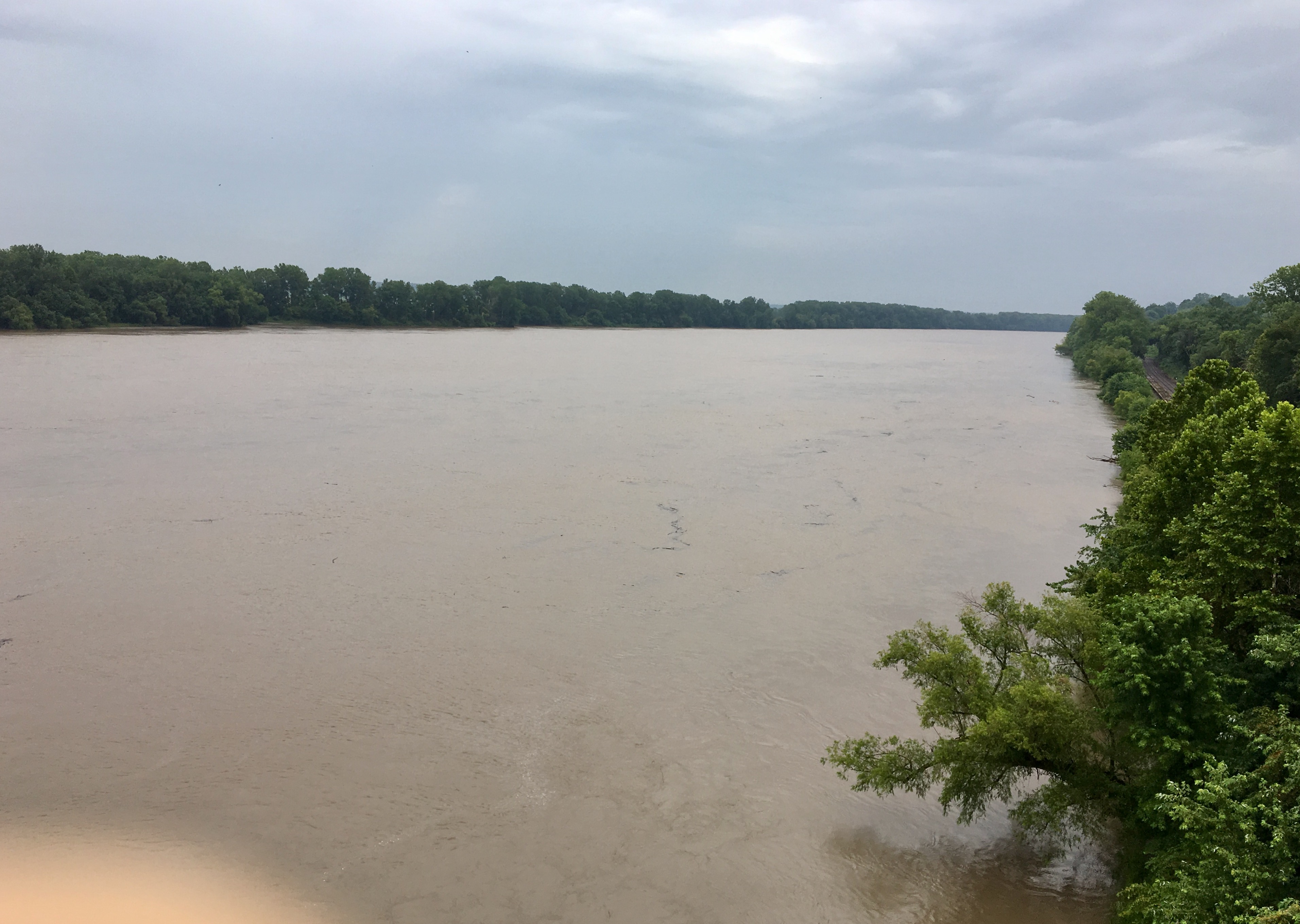 An hour later, we had to leave. At least the rain had turned to a light sprinkle. The Missouri River: