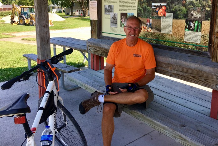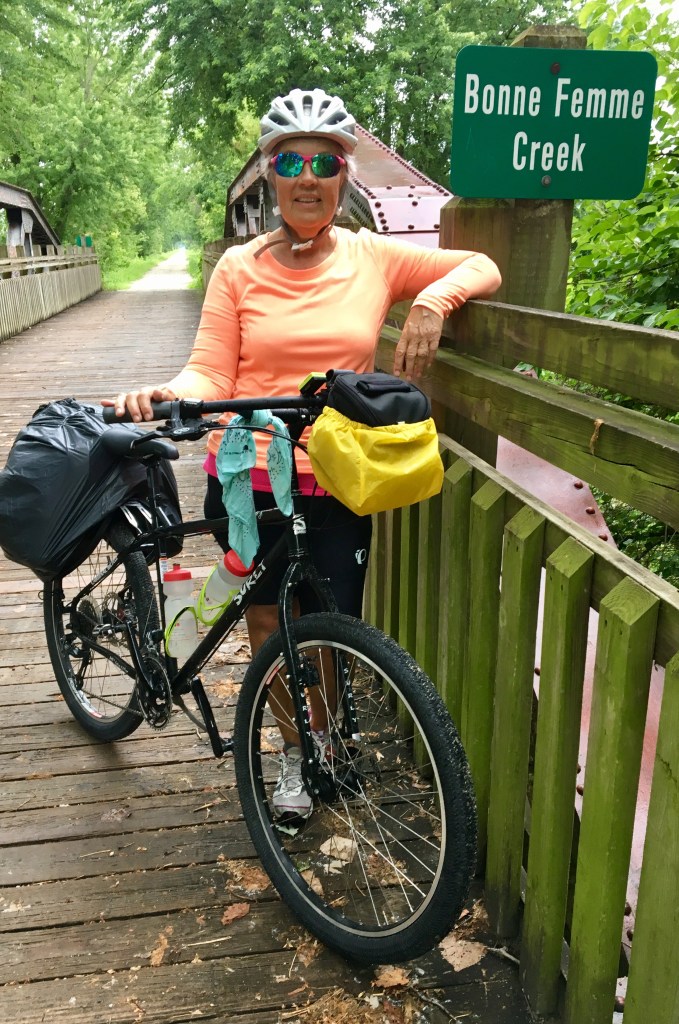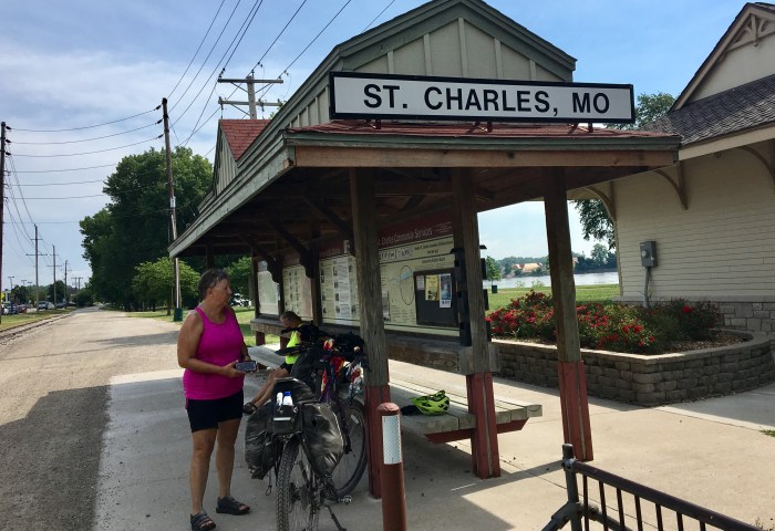 I took a long rest in Hartsburg and met a fellow blogger, Doug, who lives near Jefferson City. We had a wonderful visit. His recommendation of Red Wheel Bicycles in Jeff City came in quite handy because Donna was having a terrible day.