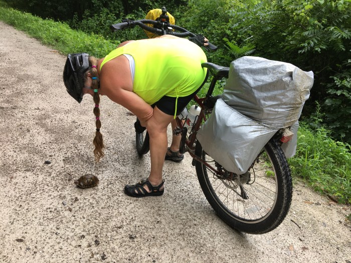 Donna is quite the wildlife spotter: owls, deer, mystery rodent with 12 babies, frogs, and turtles. All of which I’m oblivious to, so she stopped to point out the third turtle of the day.