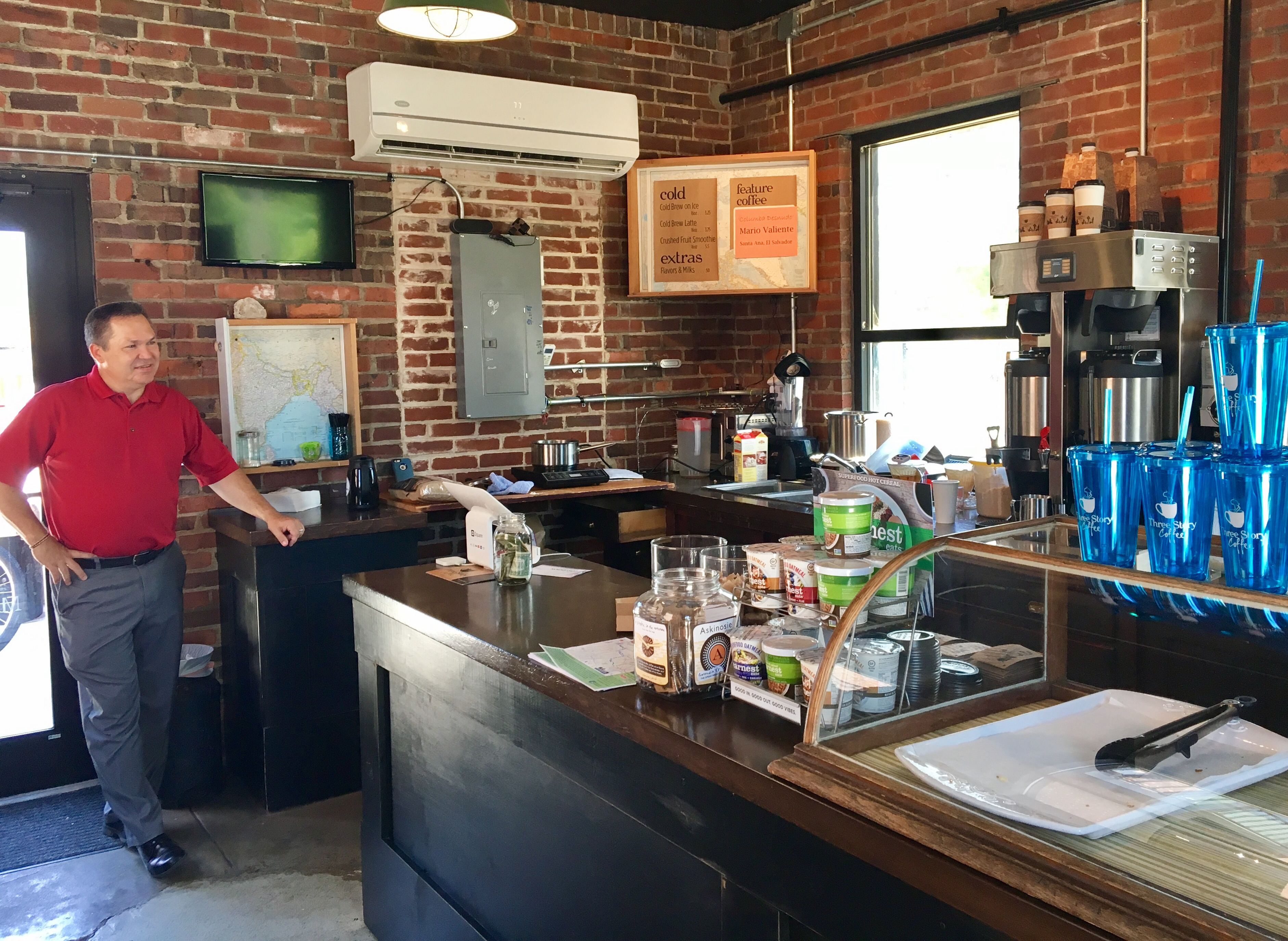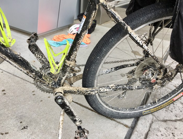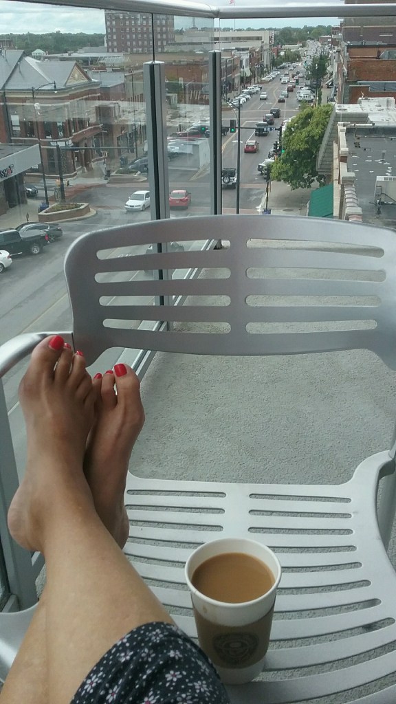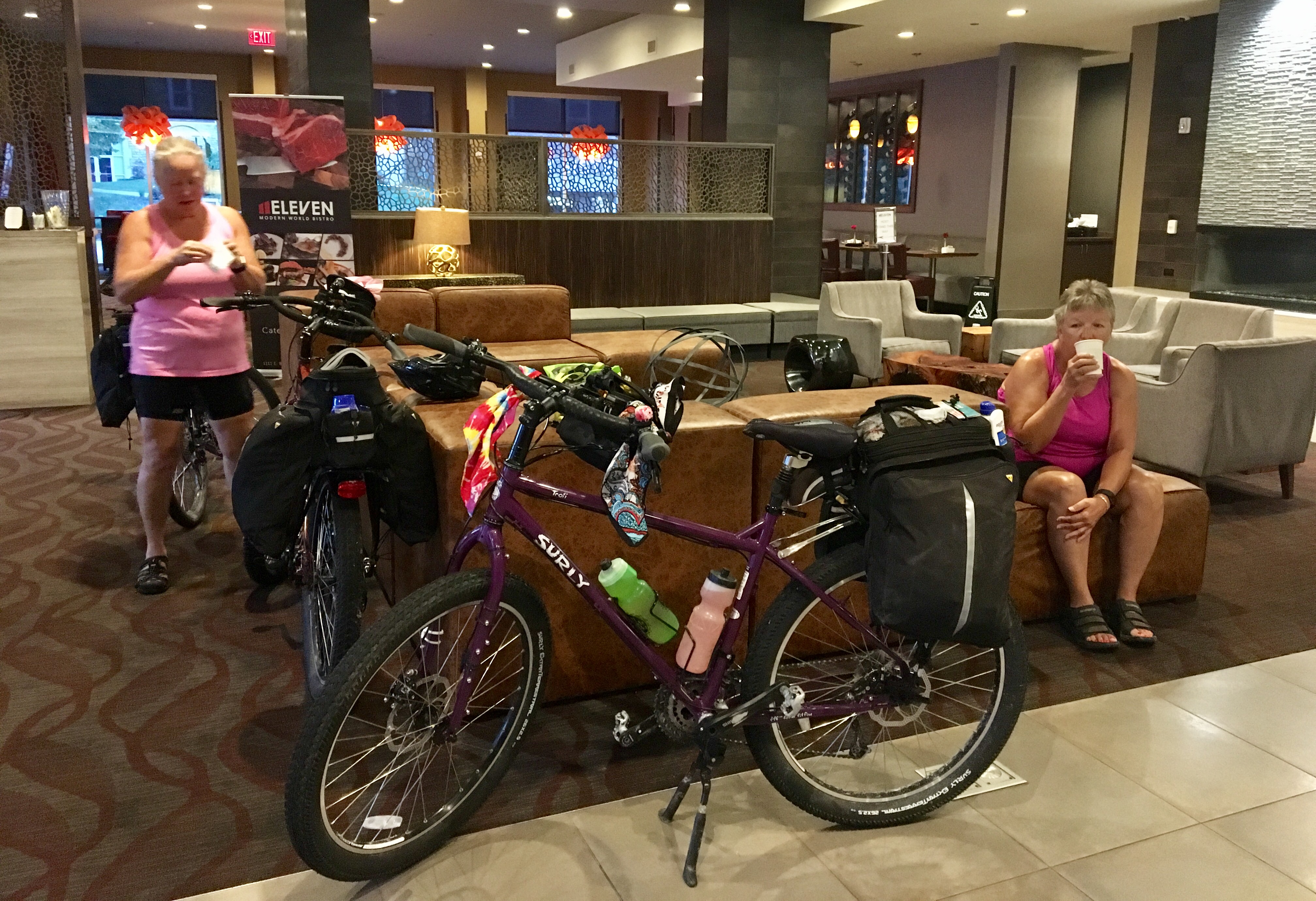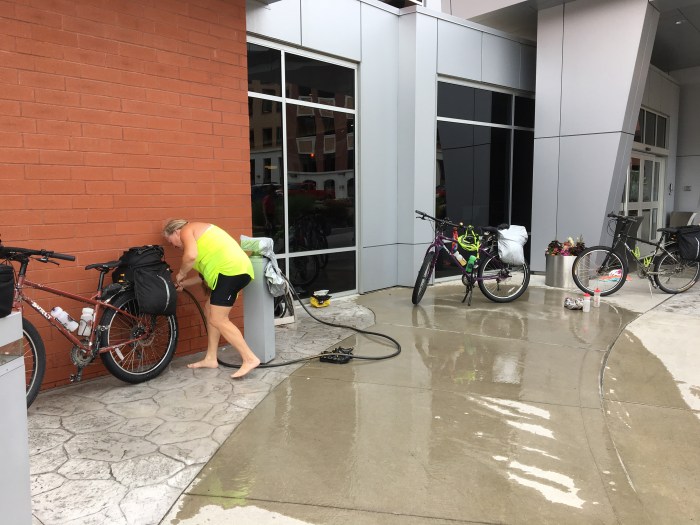 I found Red Wheel Bicycle easily and was quite happy to see Three Story Coffee next door. The man ahead of me ordered a drink and a scone. Before I could stop myself, I said, “I hope that’s not the last one.” It was. I literally whined that I hadn’t eaten all day (Donna was carrying my breakfast sandwich). He let me have it and immediately became a Trail Angel.